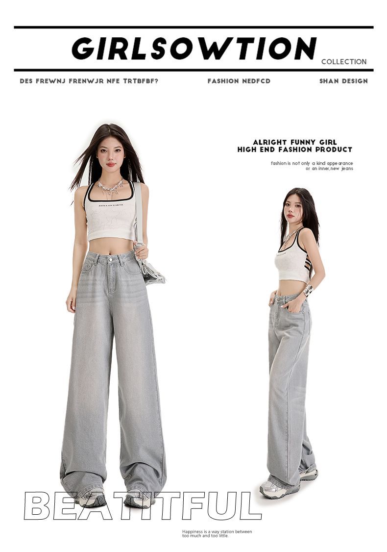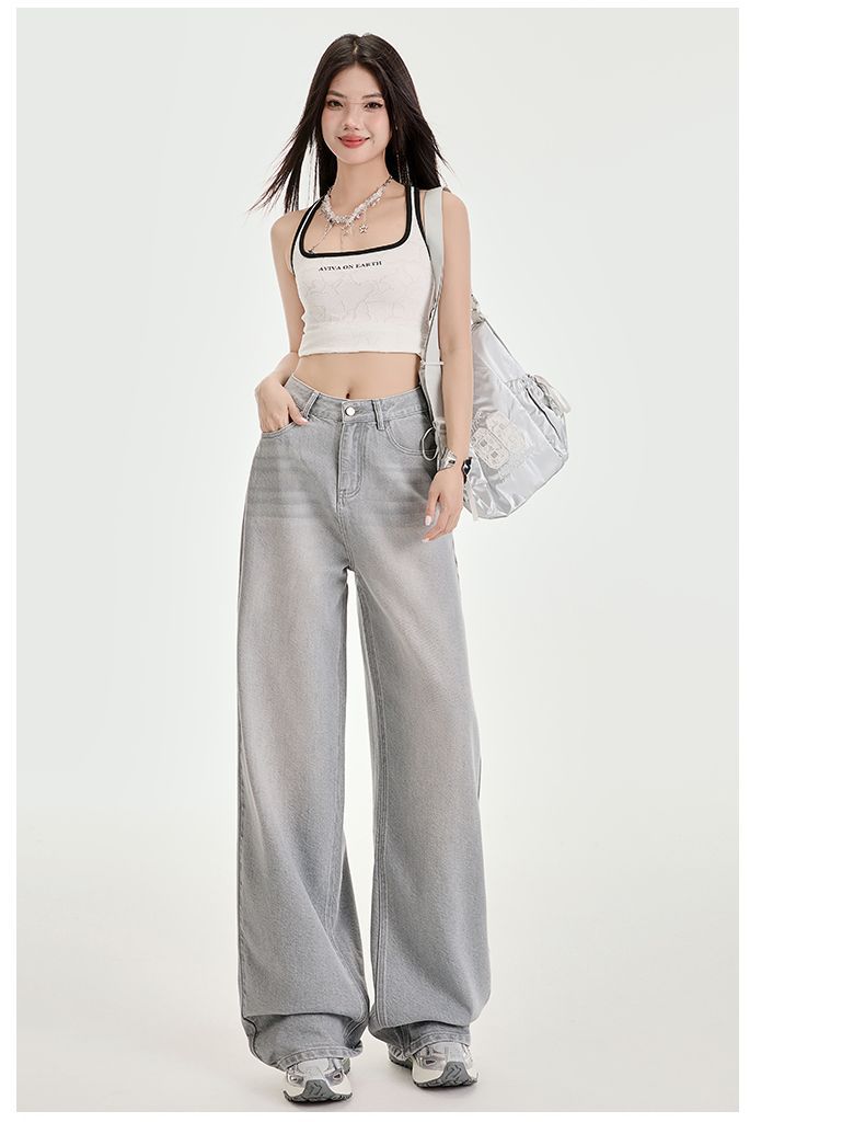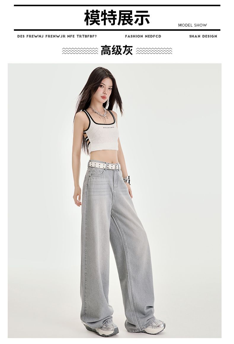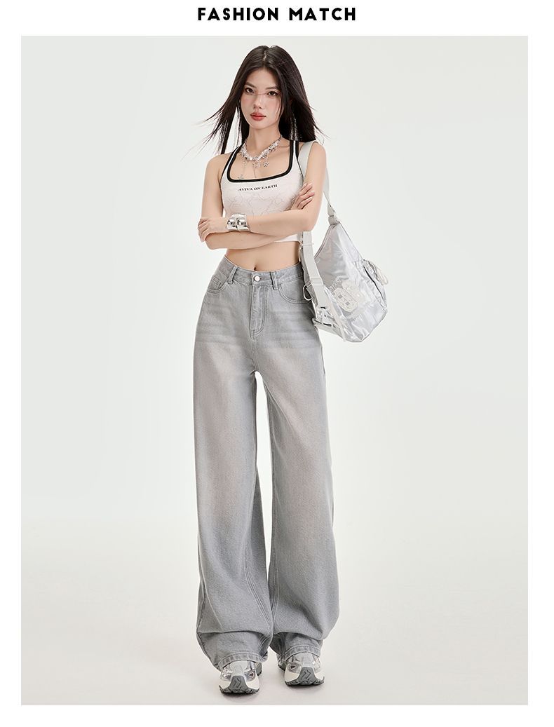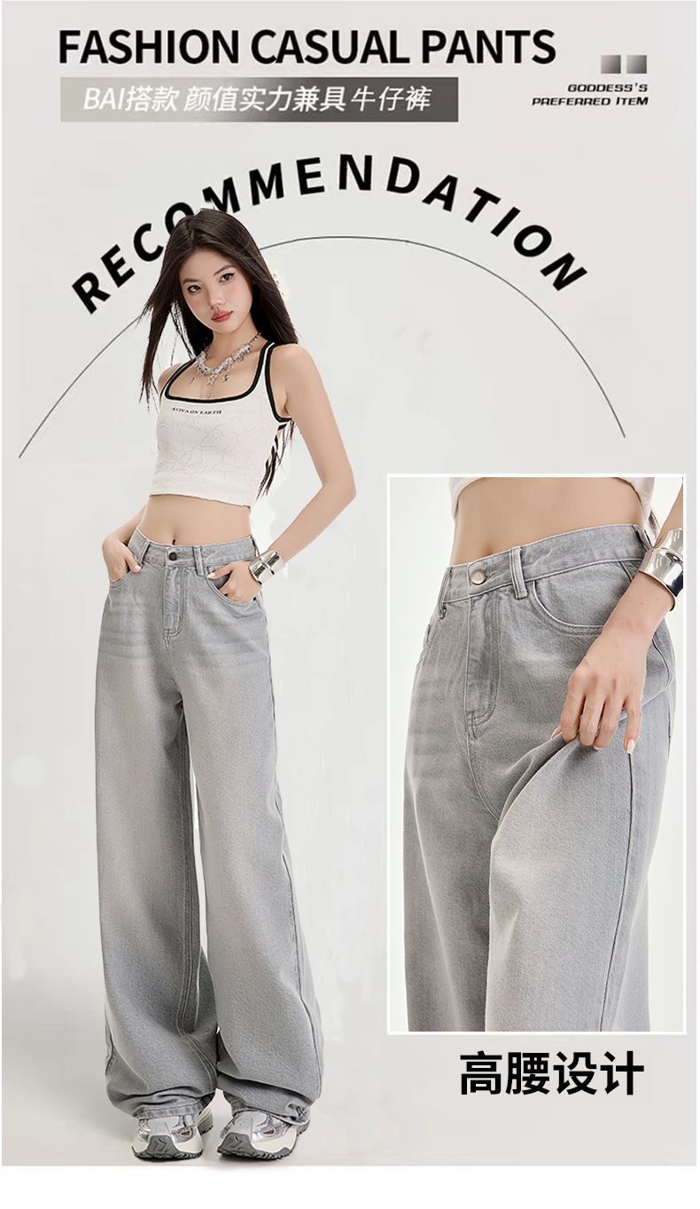 봄과 여름 2025 새로운 고급 그레이, Tencel Lyocell 높은 허리 넓은 다리 청바지 여성 JEANS WOMEN스토어 가기