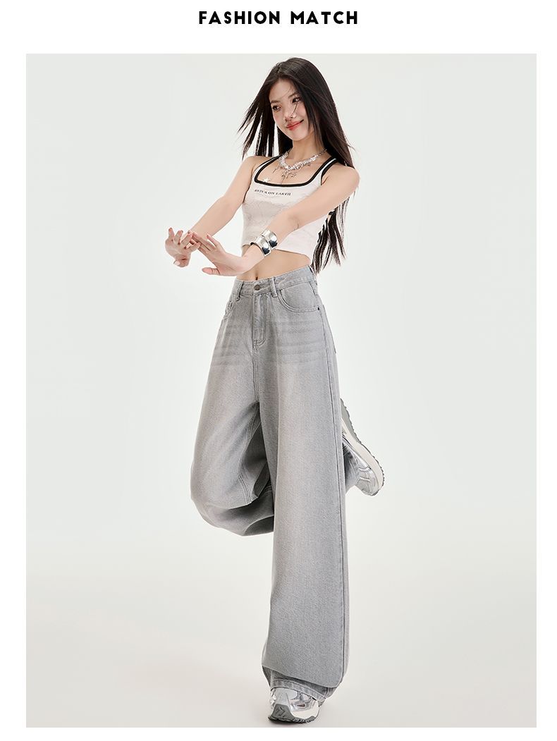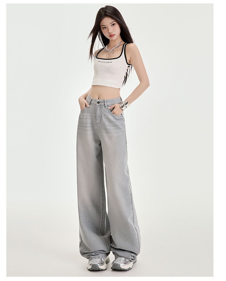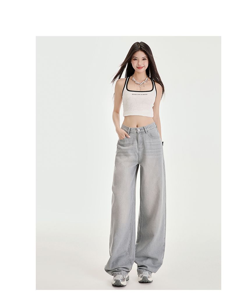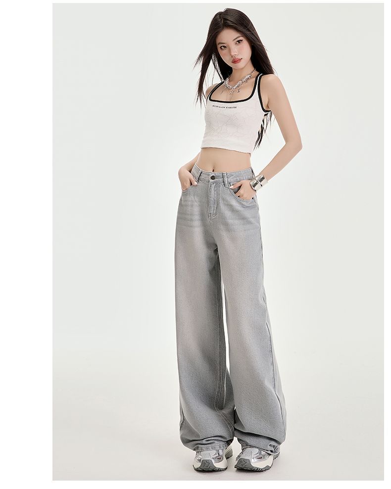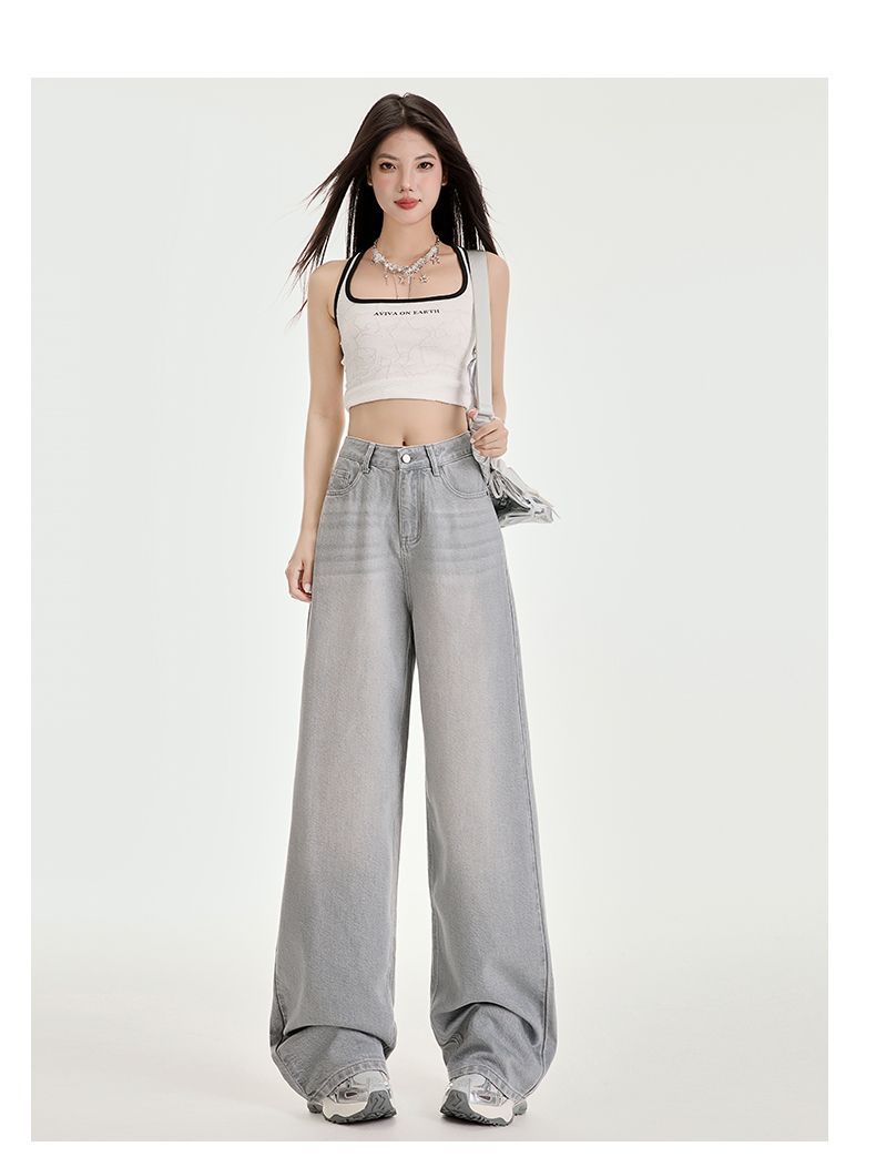 봄과 여름 2025 새로운 고급 그레이, Tencel Lyocell 높은 허리 넓은 다리 청바지 여성 JEANS WOMEN스토어 가기