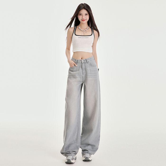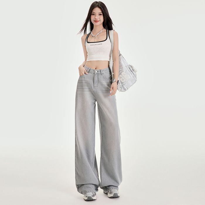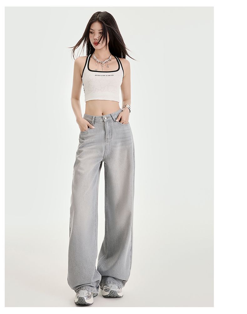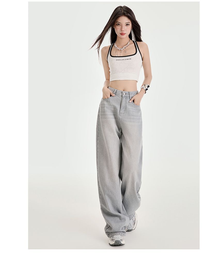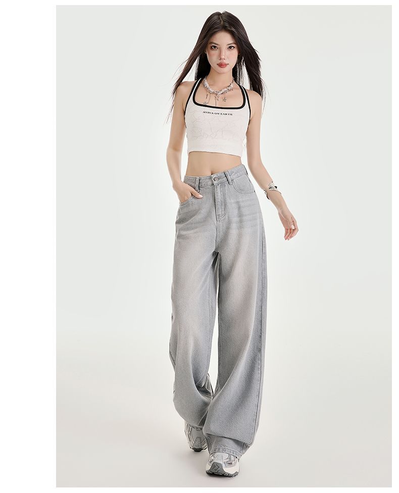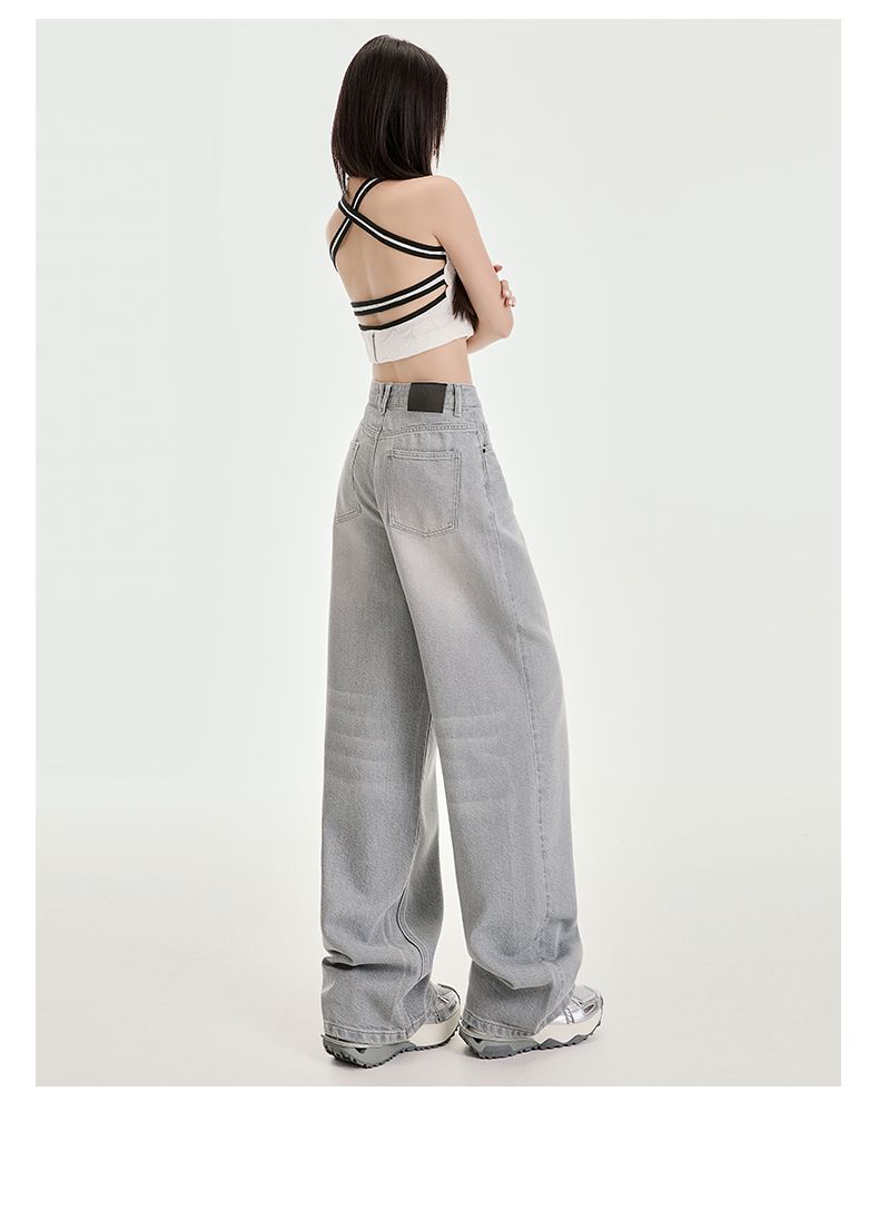 봄과 여름 2025 새로운 고급 그레이, Tencel Lyocell 높은 허리 넓은 다리 청바지 여성 JEANS WOMEN스토어 가기