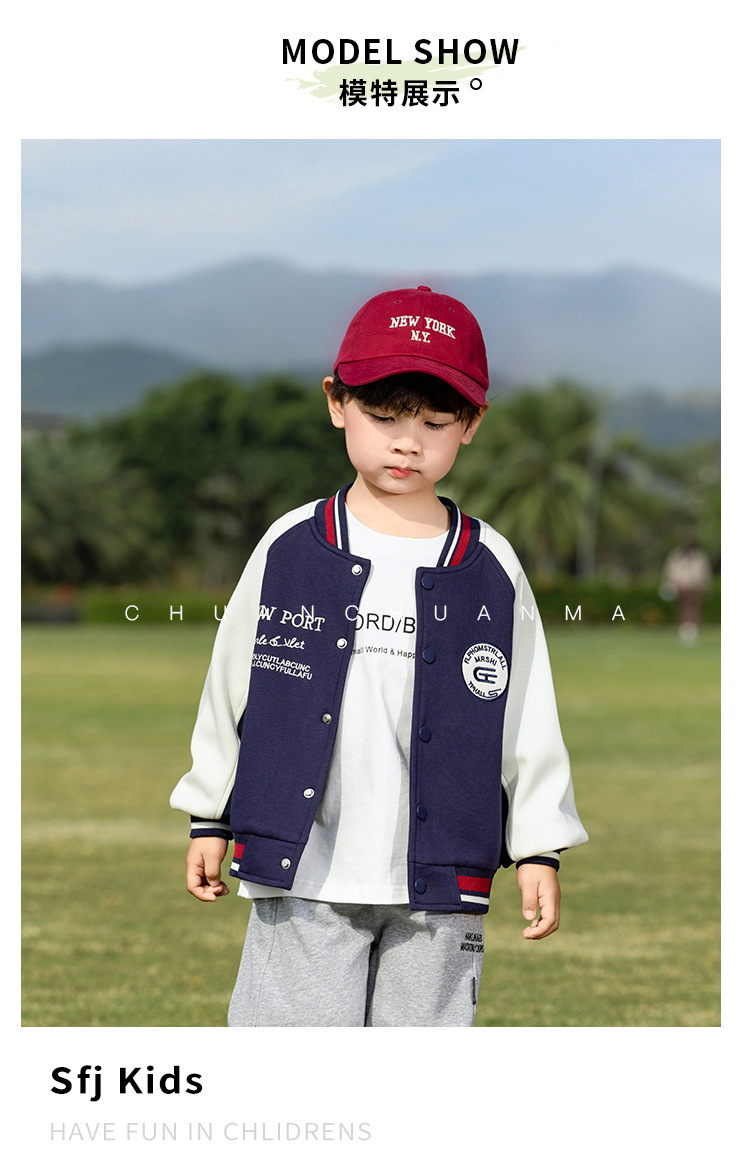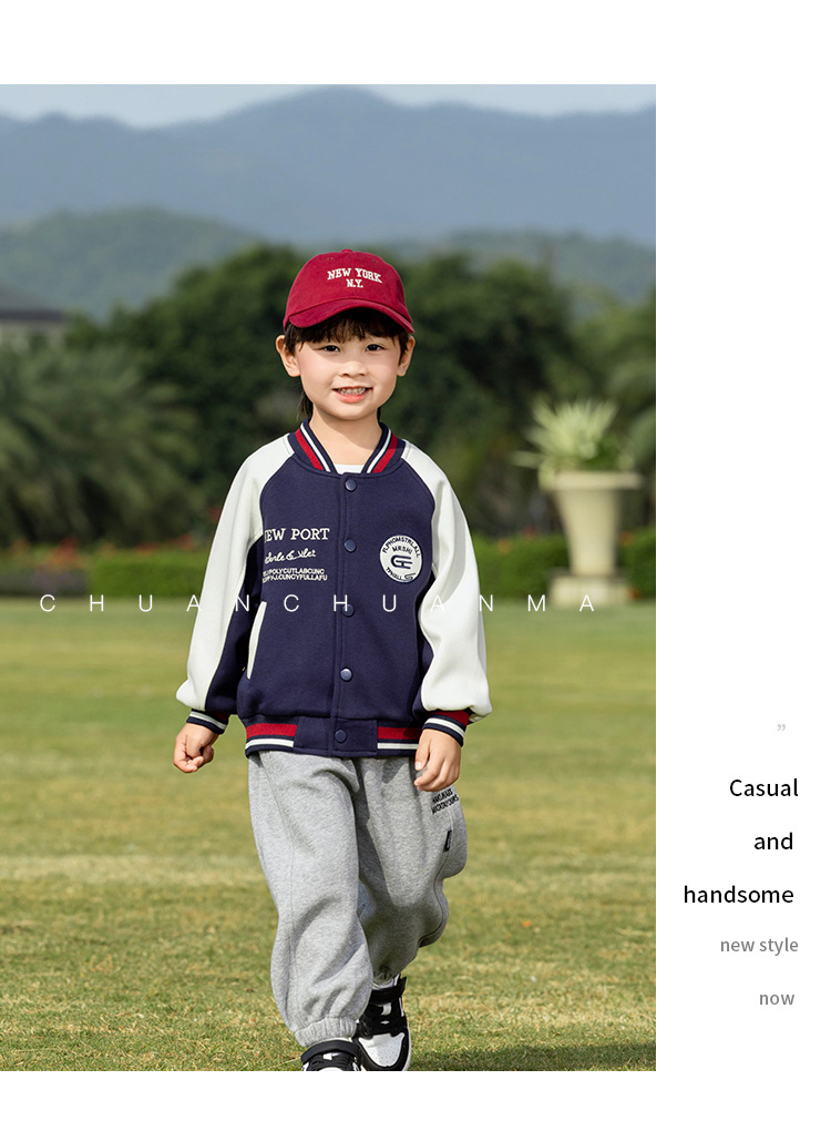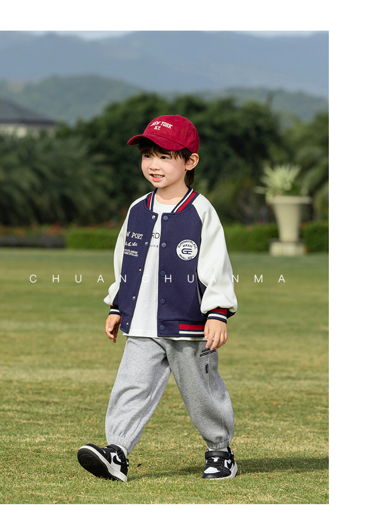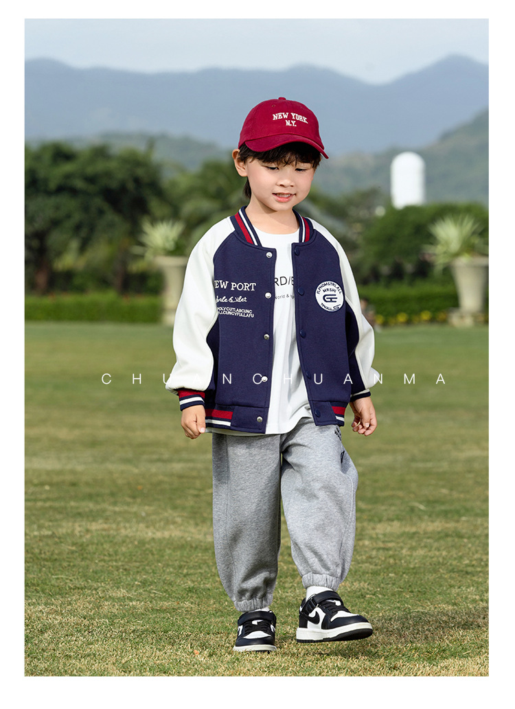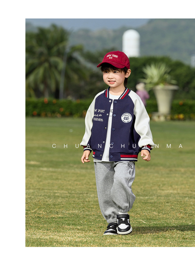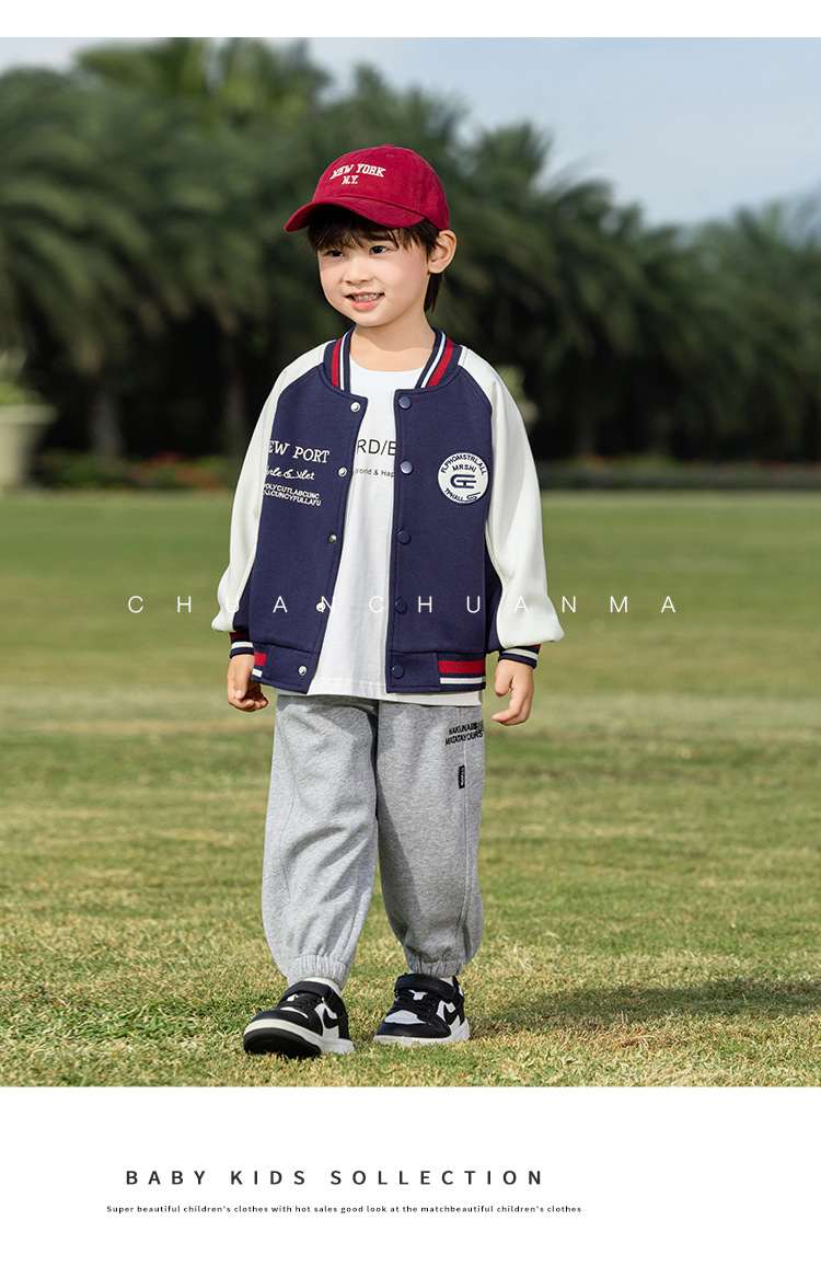 윈드밸리 2025 봄새 아동복 한국식 콘트라스트 컬러 스티칭 야구 세트 소년 핸스섬 레터 재킷스토어 가기