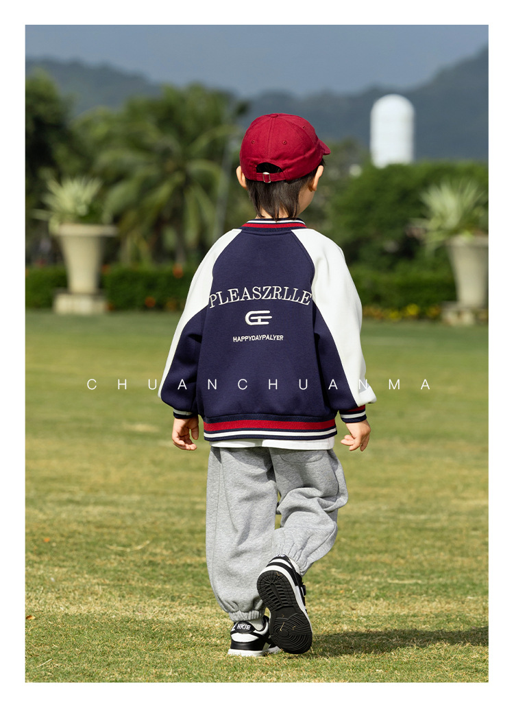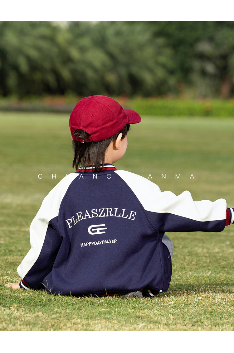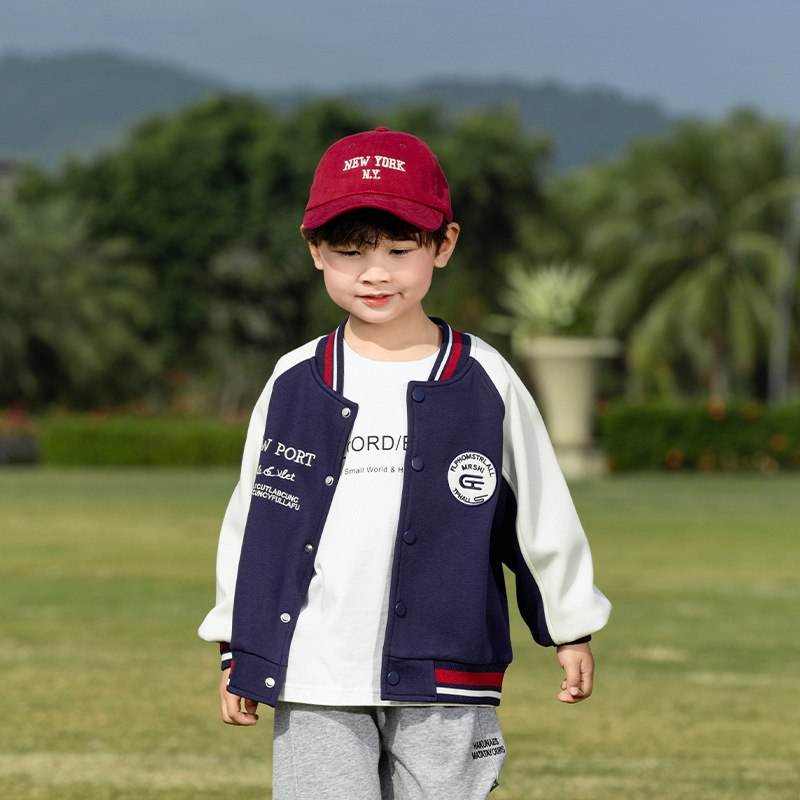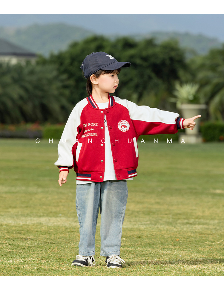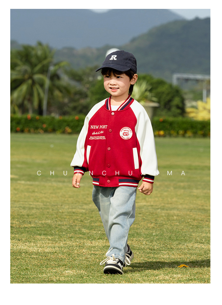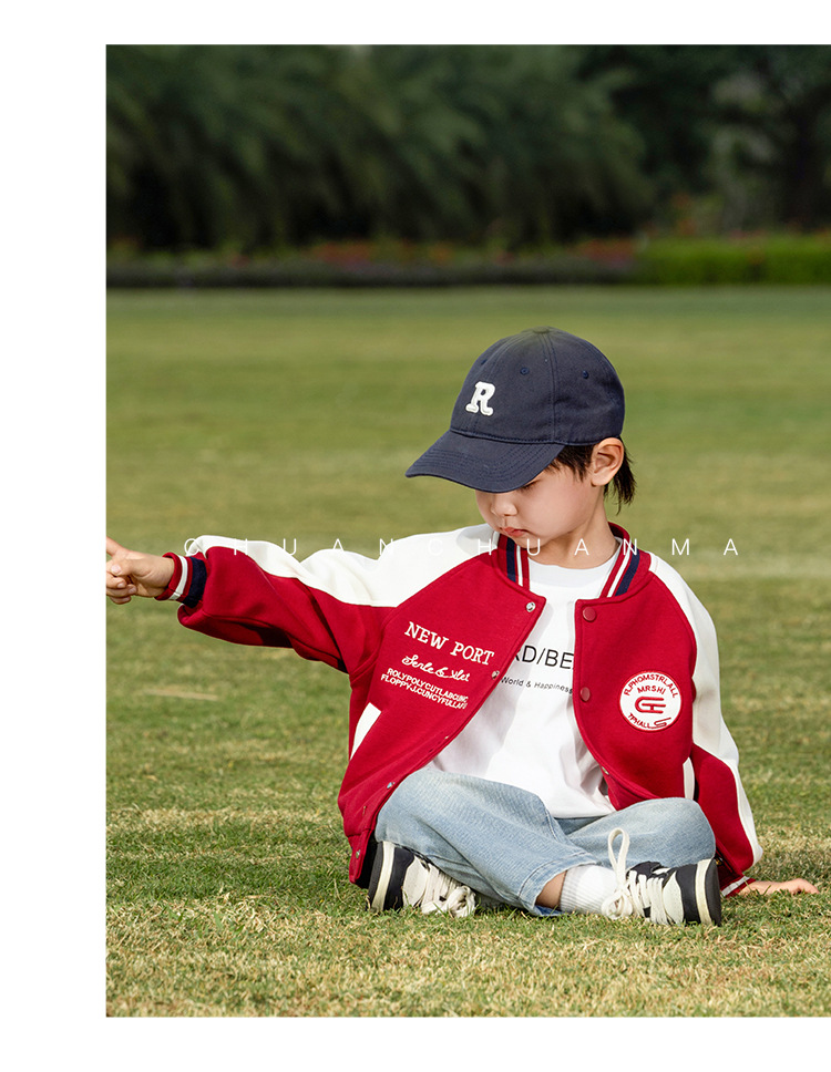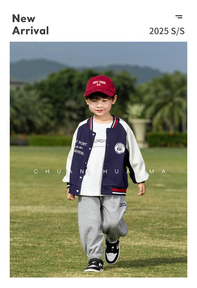 윈드밸리 2025 봄새 아동복 한국식 콘트라스트 컬러 스티칭 야구 세트 소년 핸스섬 레터 재킷스토어 가기
