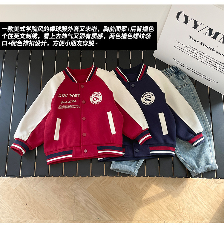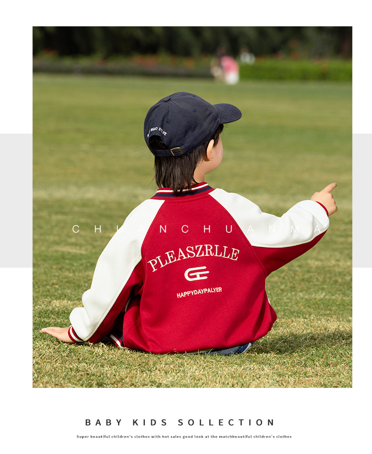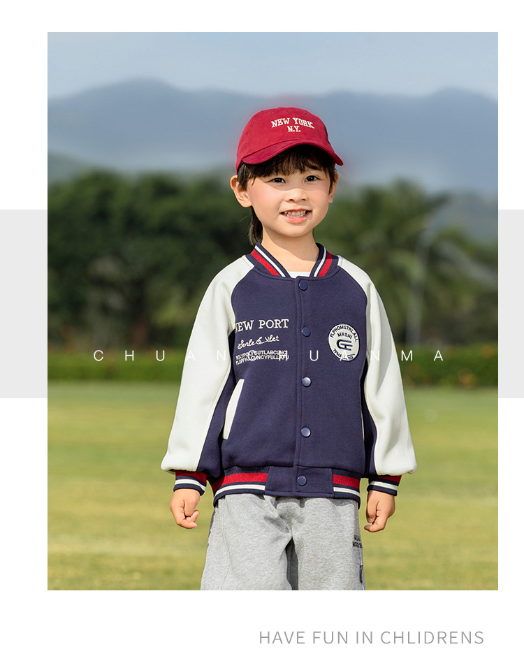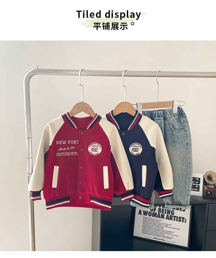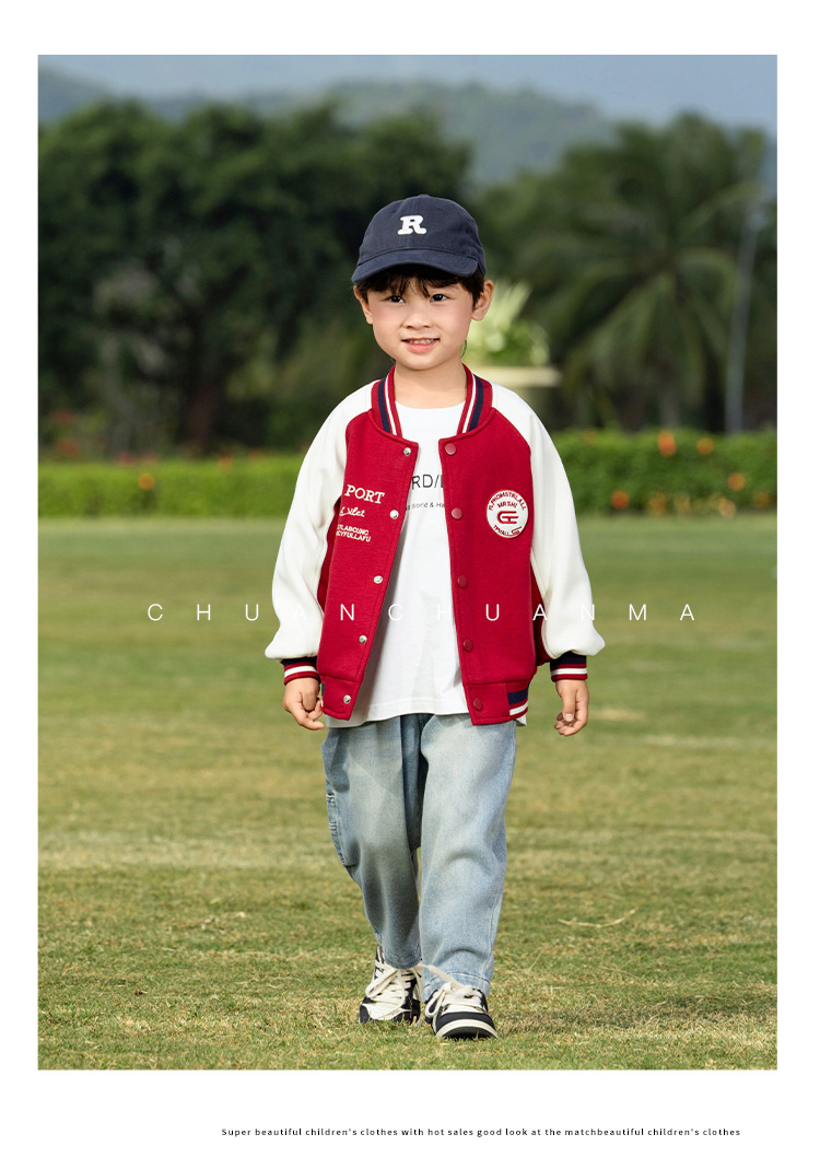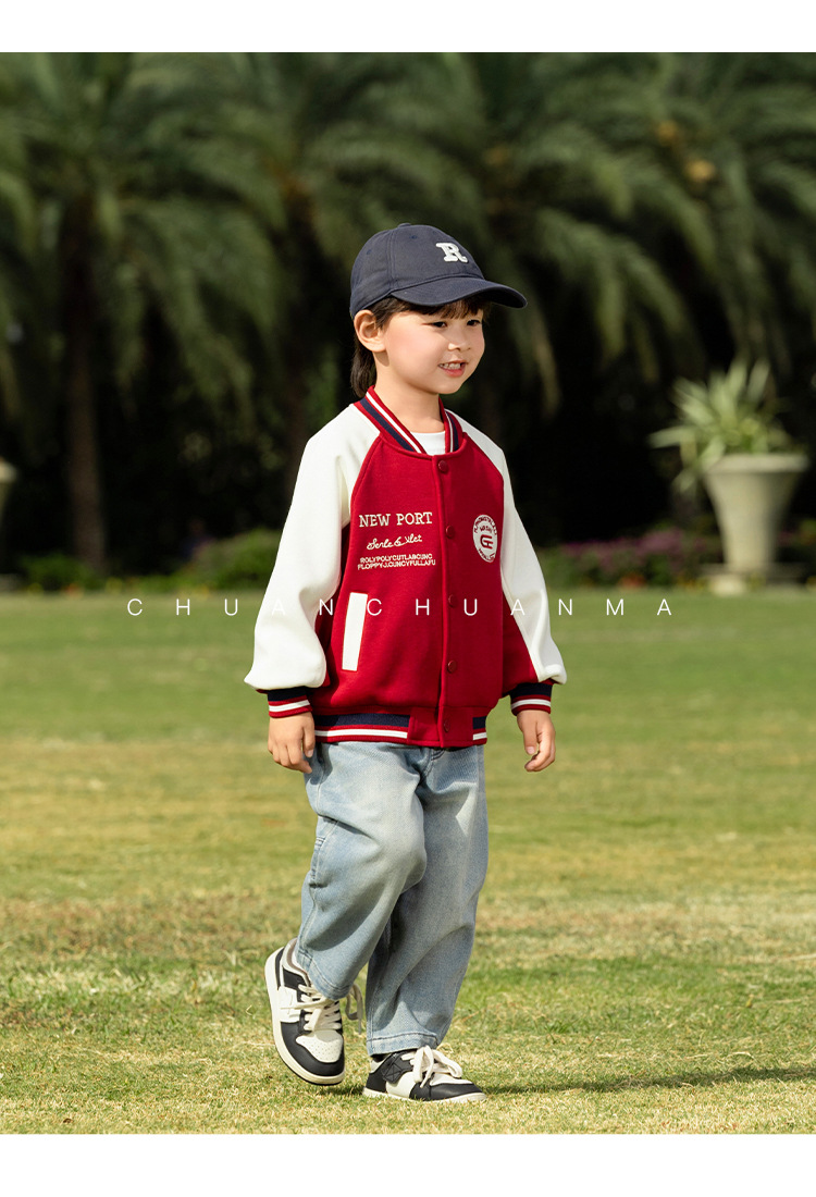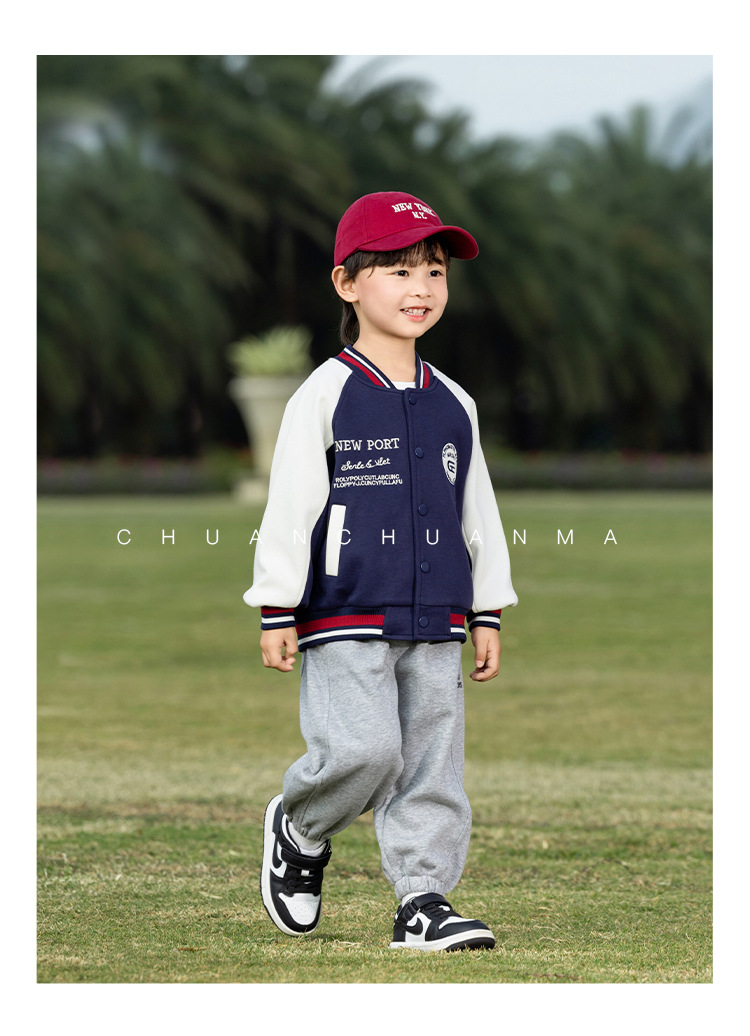 윈드밸리 2025 봄새 아동복 한국식 콘트라스트 컬러 스티칭 야구 세트 소년 핸스섬 레터 재킷스토어 가기