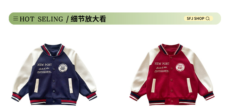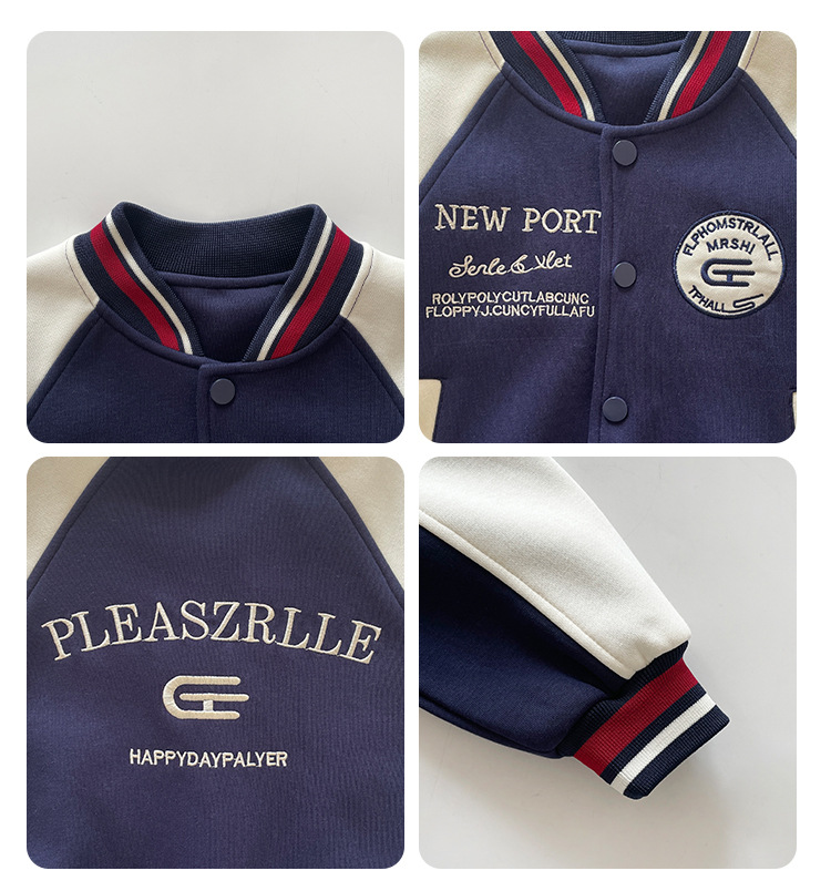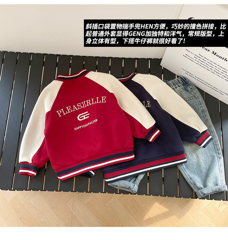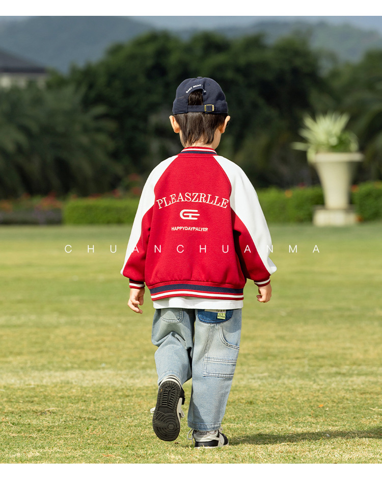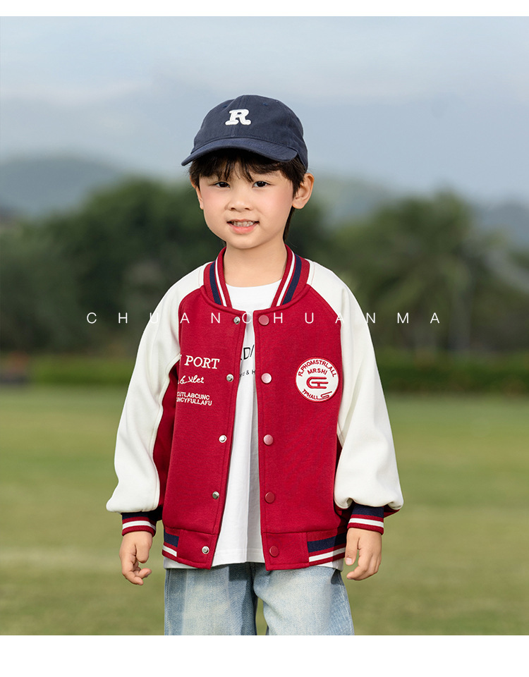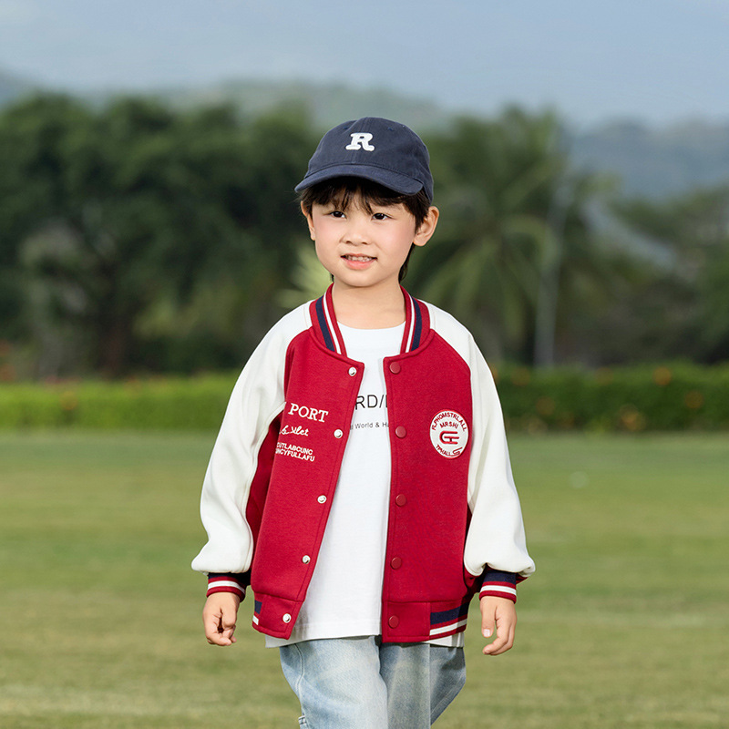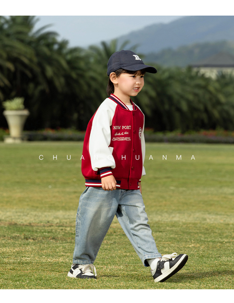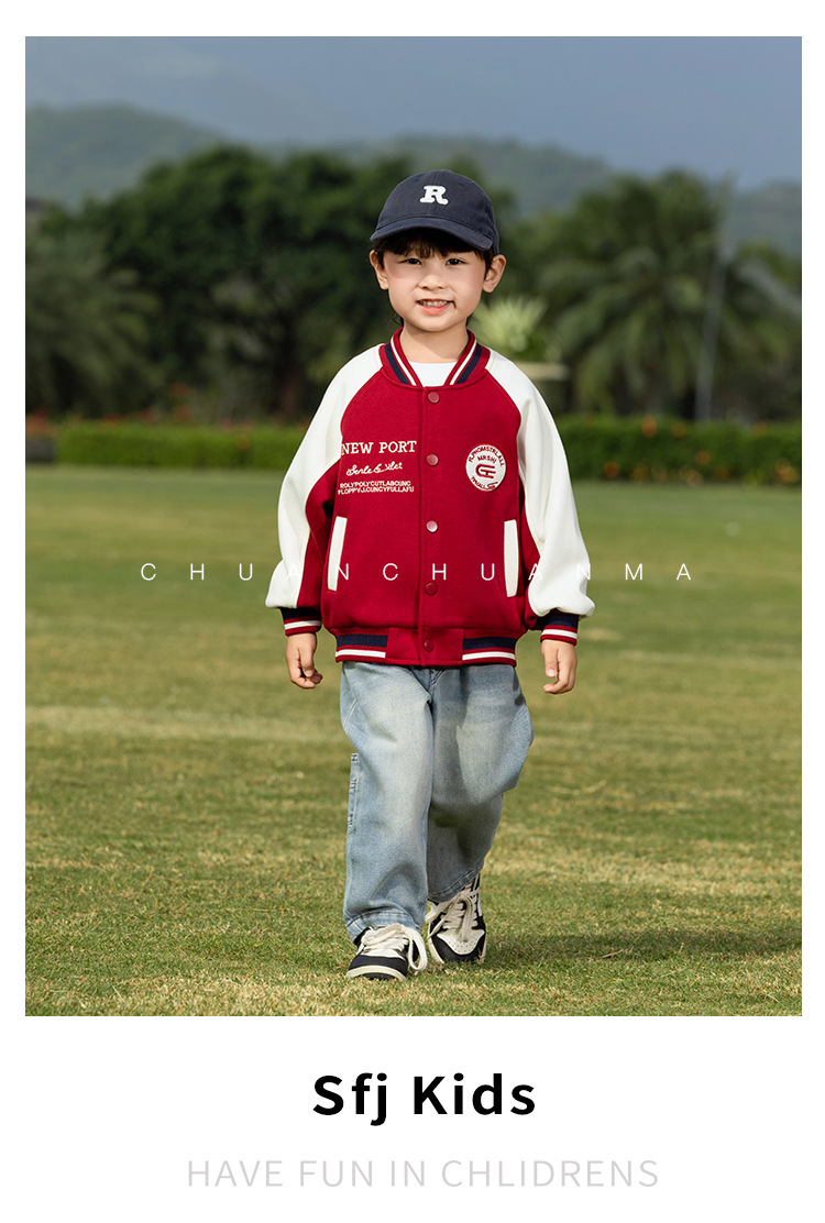 윈드밸리 2025 봄새 아동복 한국식 콘트라스트 컬러 스티칭 야구 세트 소년 핸스섬 레터 재킷스토어 가기