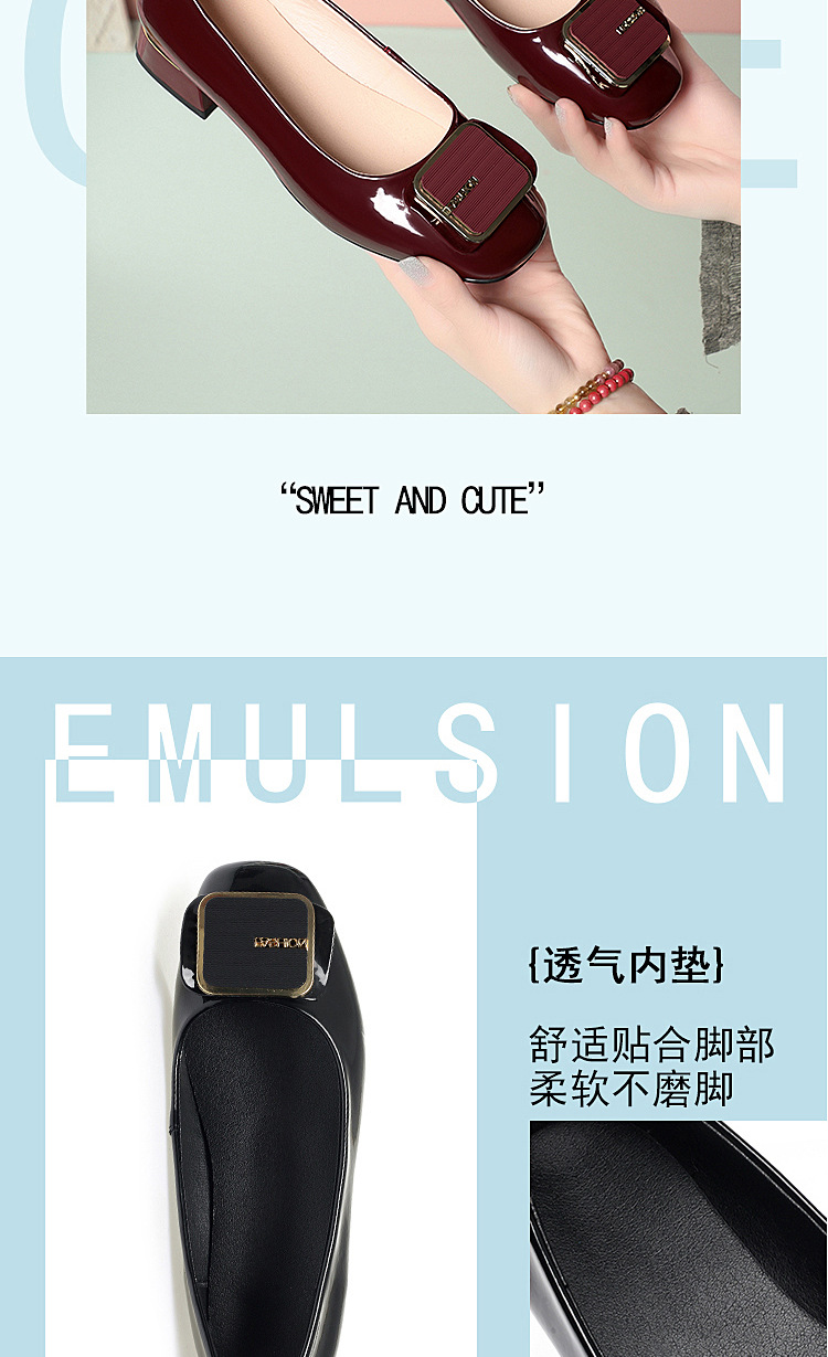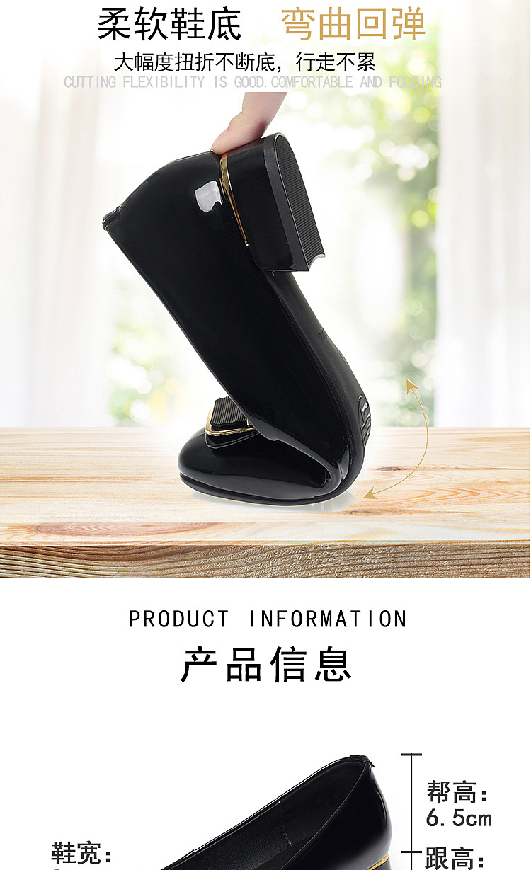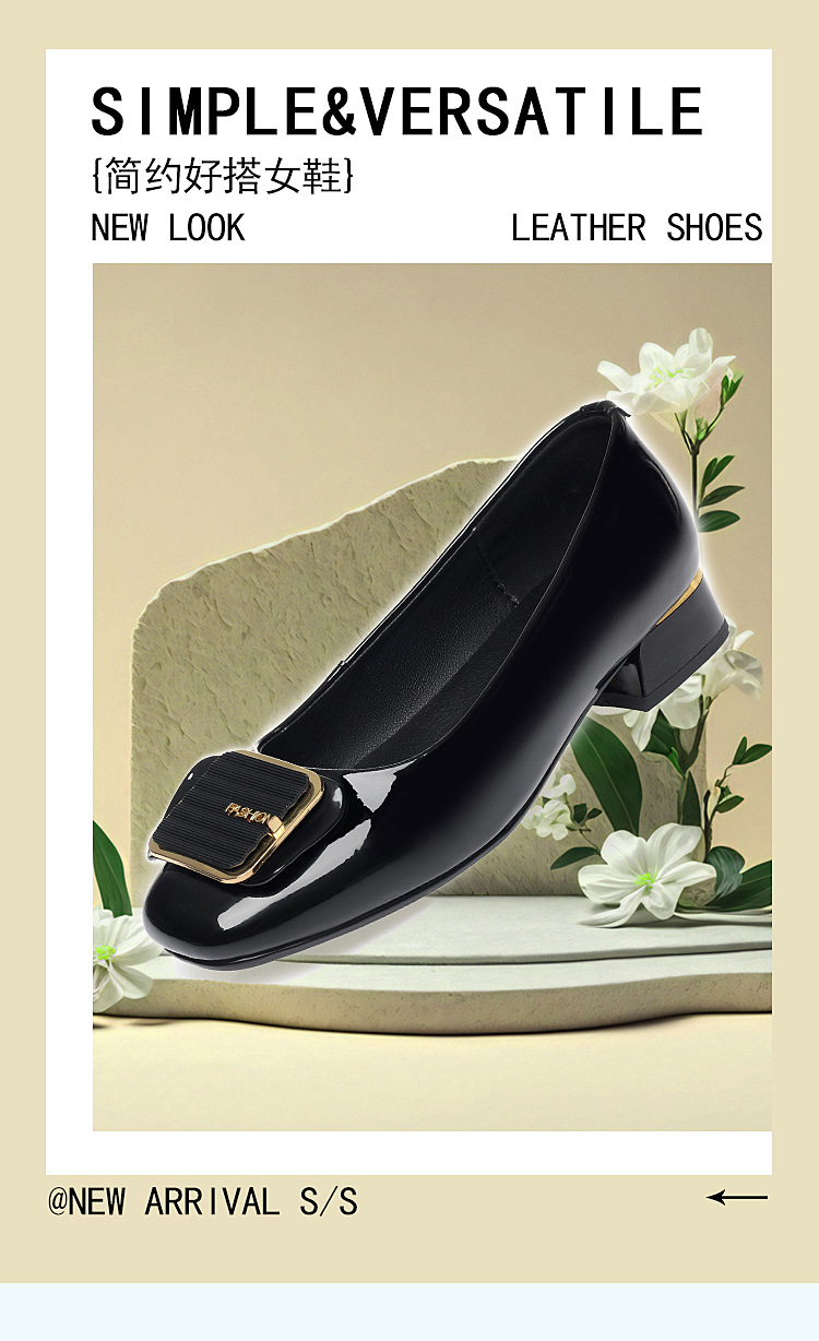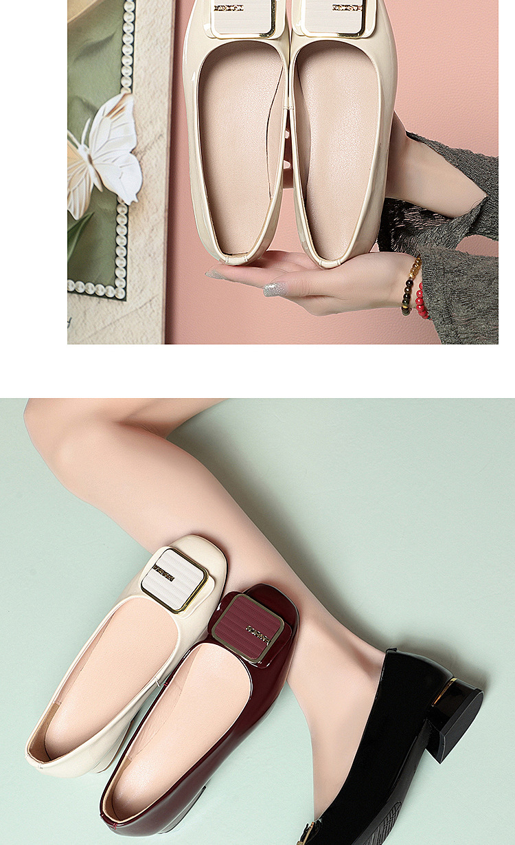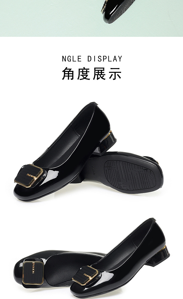 봄과 가을 정품 가죽 특허 가죽 싱글 레이어 신발 여성용 얕은 두꺼운 힐 웨딩 신발 밝은 가죽 낮은 발 뒤꿈치 신발 광장 발가락 새로운 여성 신발스토어 가기