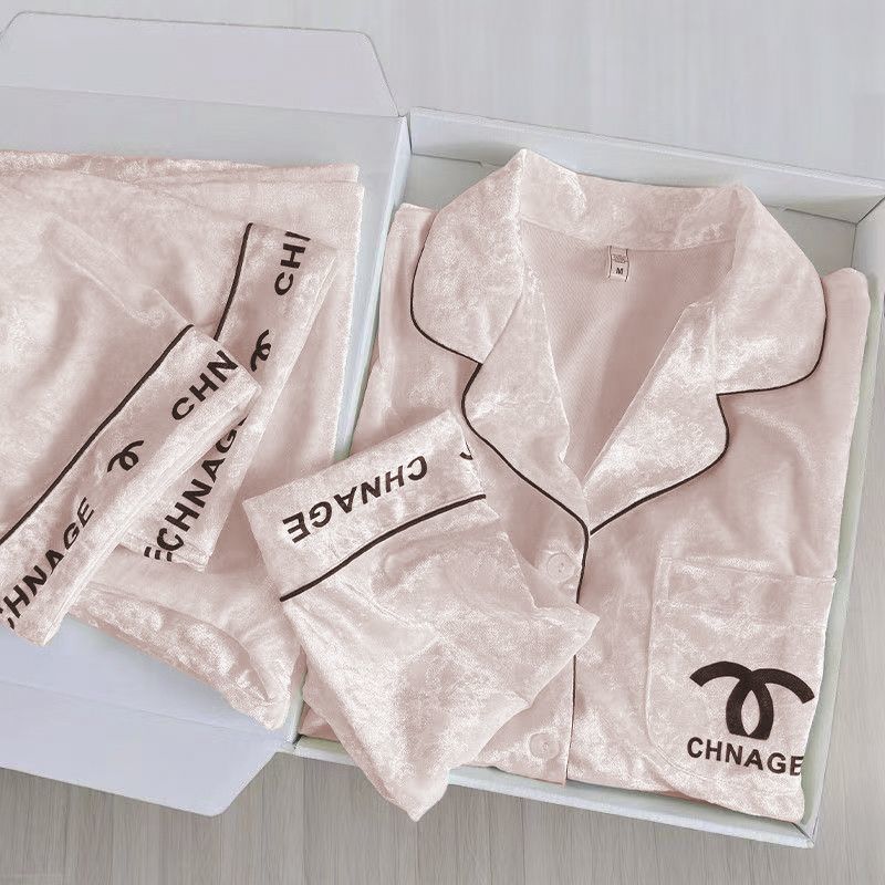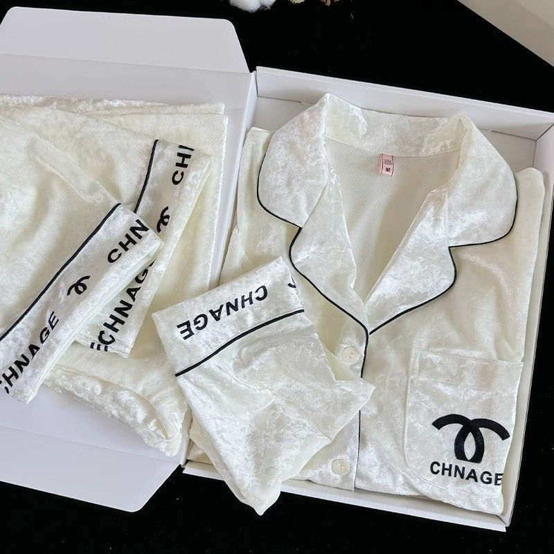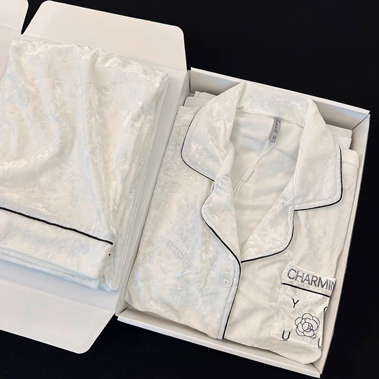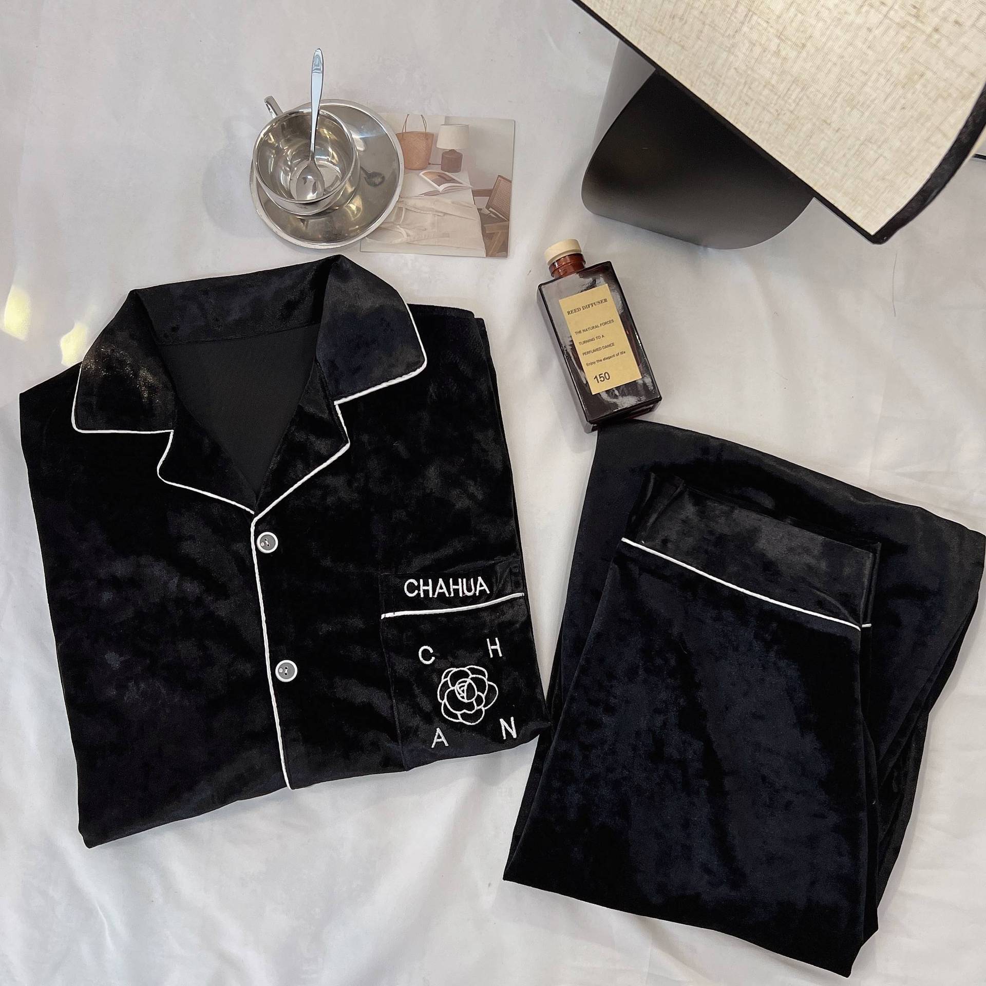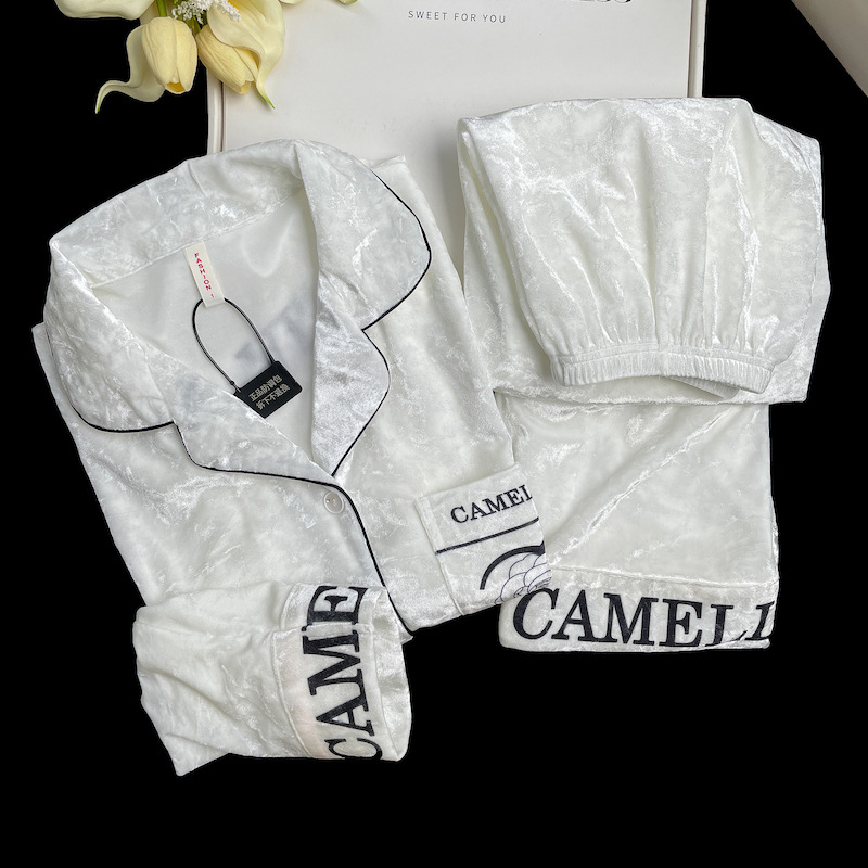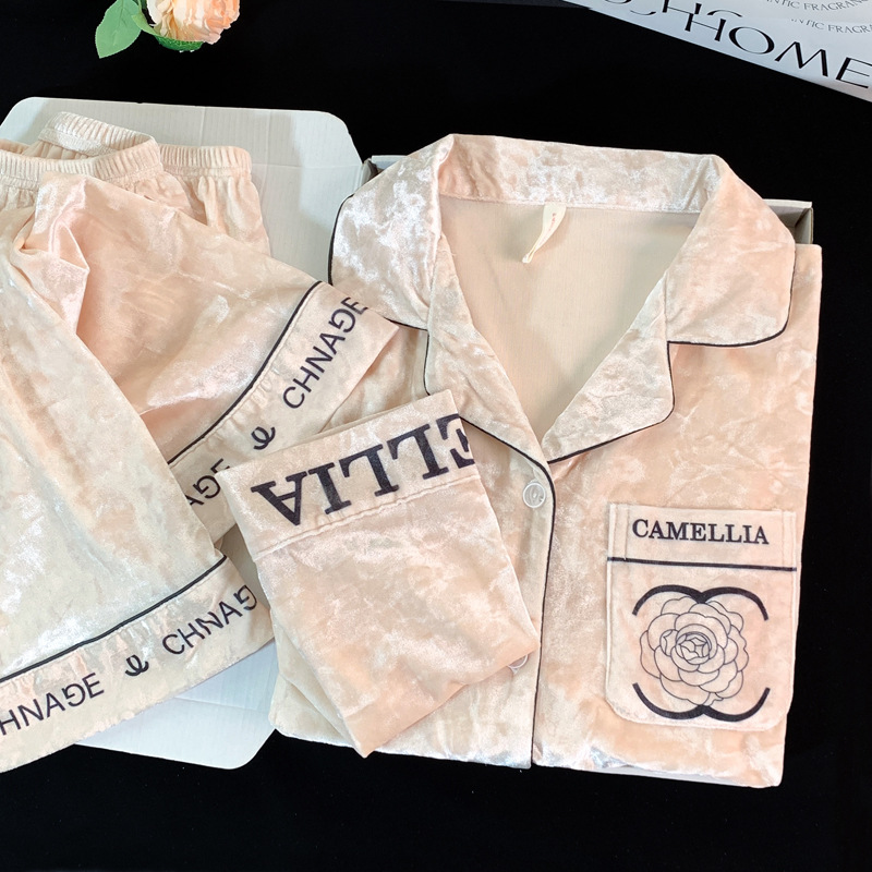 골든 벨벳 잠옷 여성 가을과 겨울 긴팔 빛 고급 고급 고급 고급 흰색 편지 2024 새로운 인터넷 연예인 홈 의류 세트스토어 가기