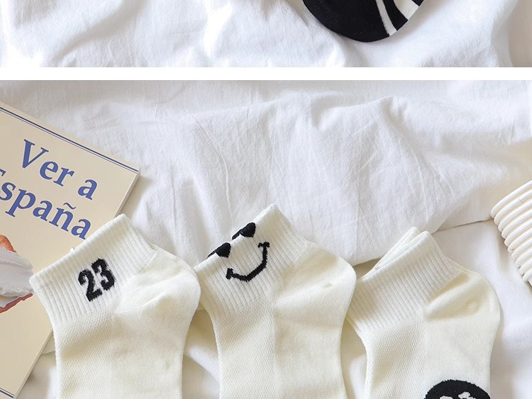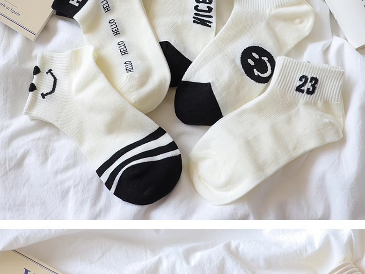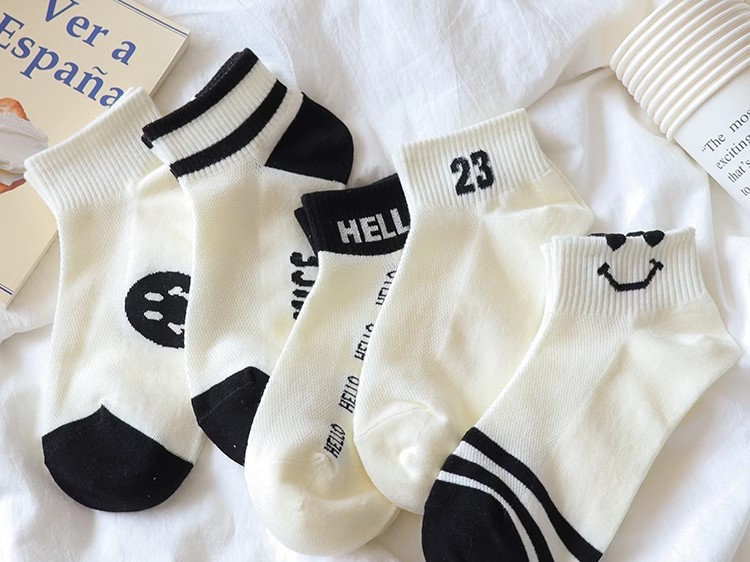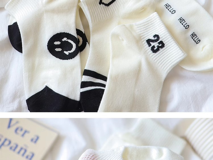 공장 흑백 줄무늬 양말 어린이 귀여운 스마일 짧은 양말 봄과 여름 메쉬는 짧은 편지 면화를 떨어지지 않습니다.