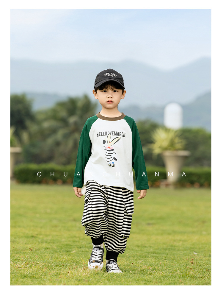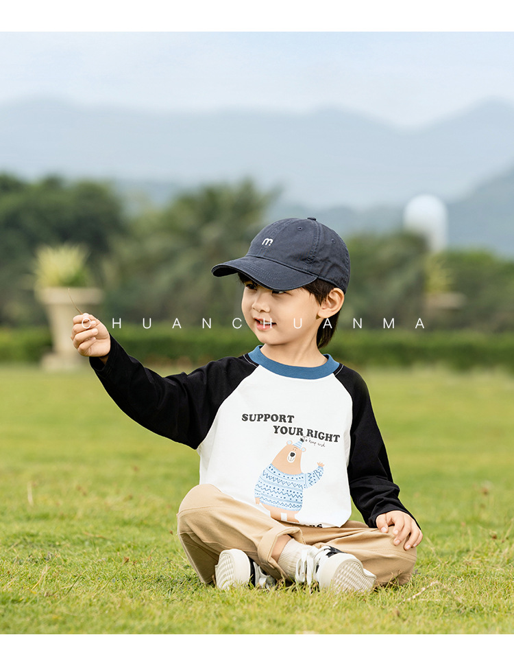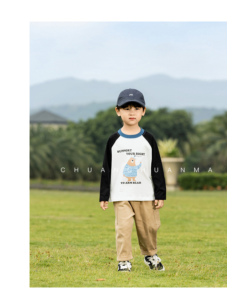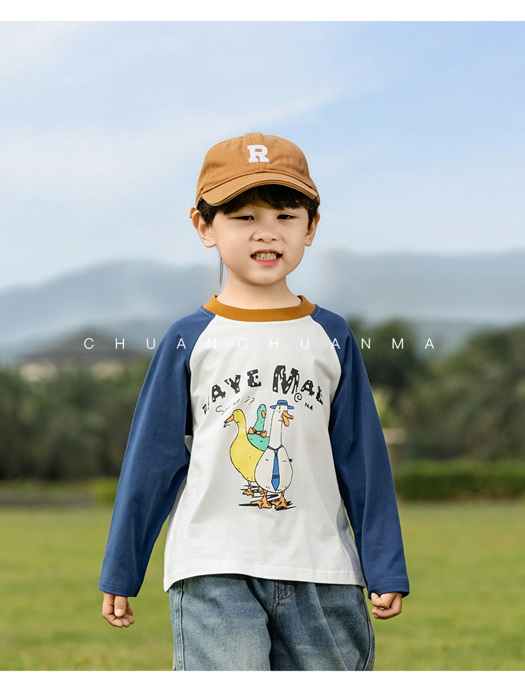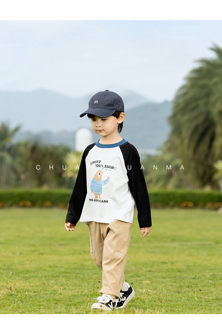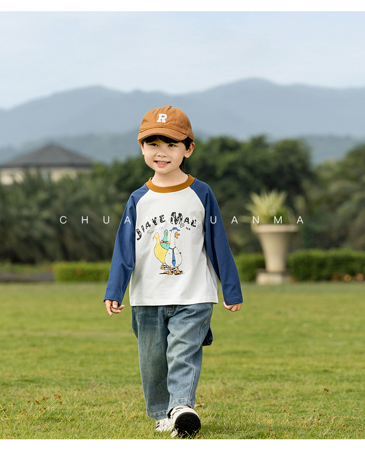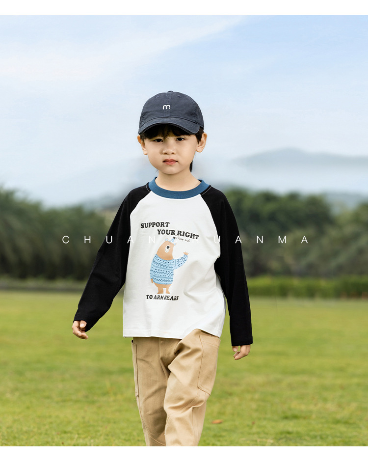 샤나오 2025 봄새 아동복 한국식 귀여운 보토밍 소년 · 소녀 올매치 콘트라스트 만화 티셔츠
