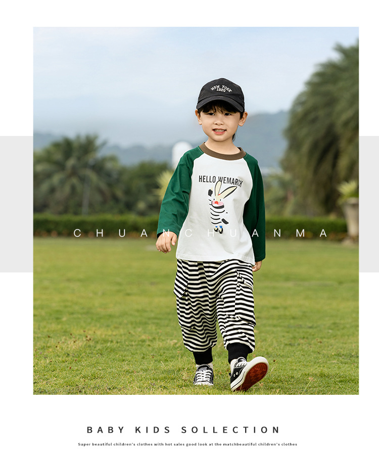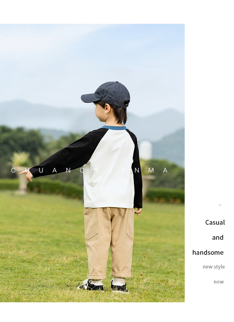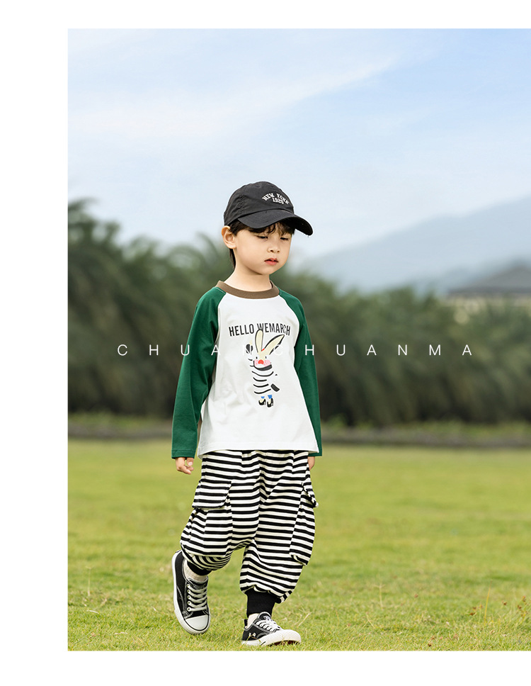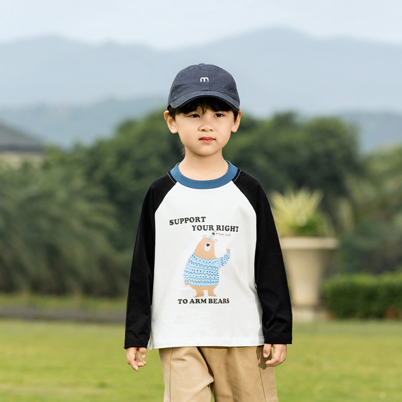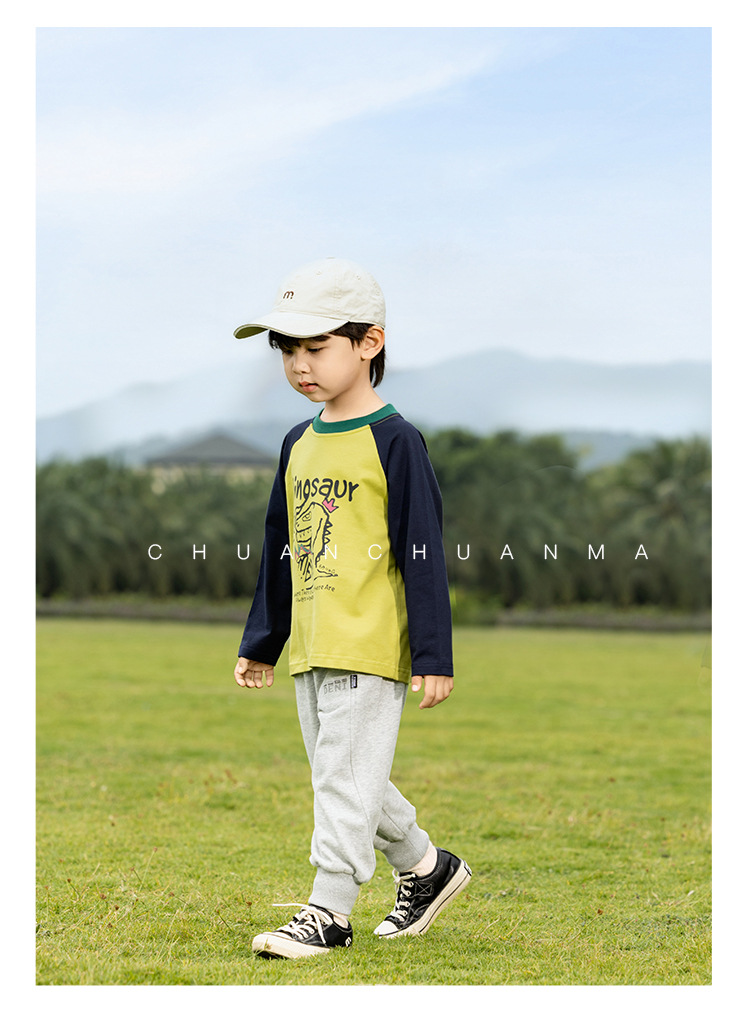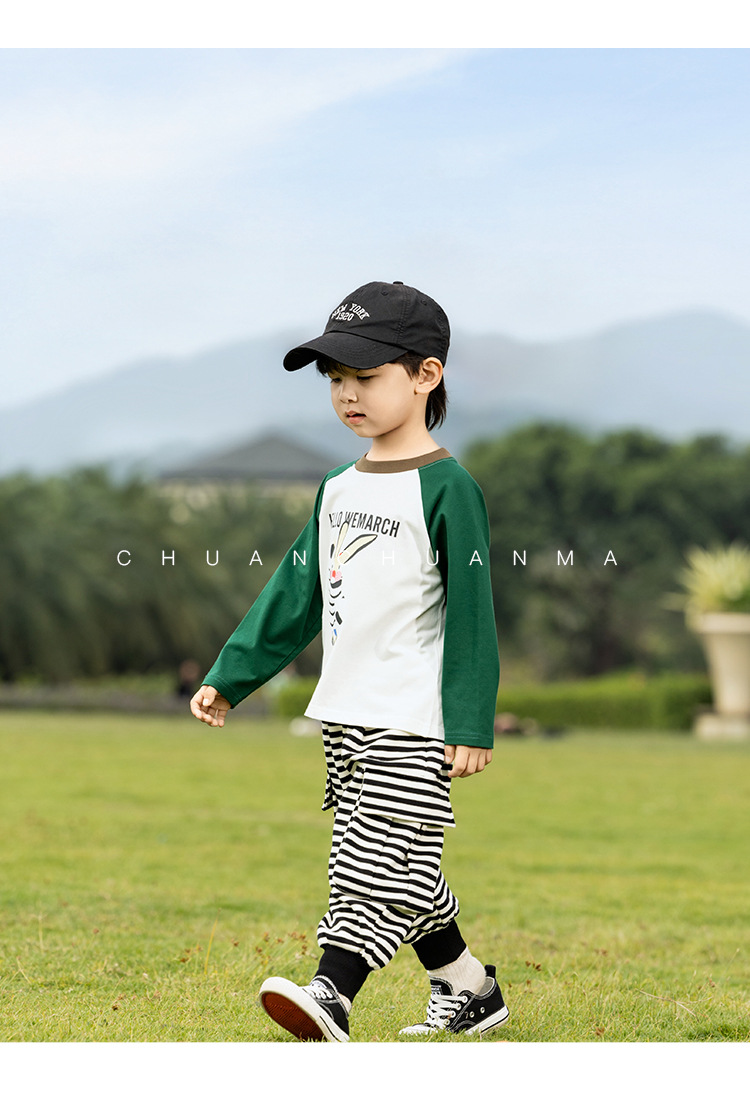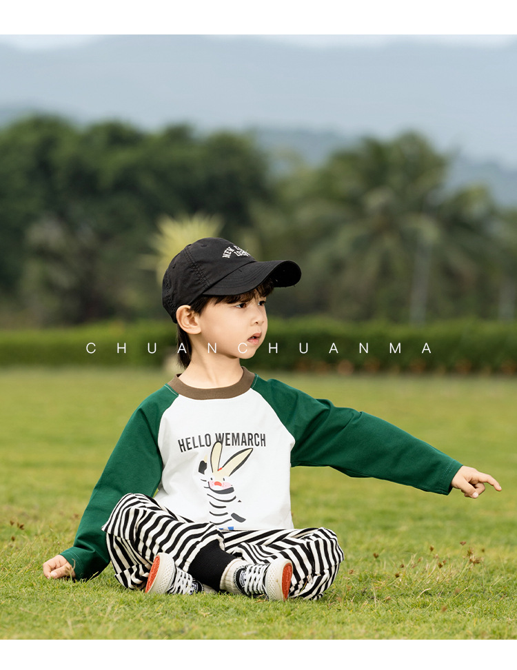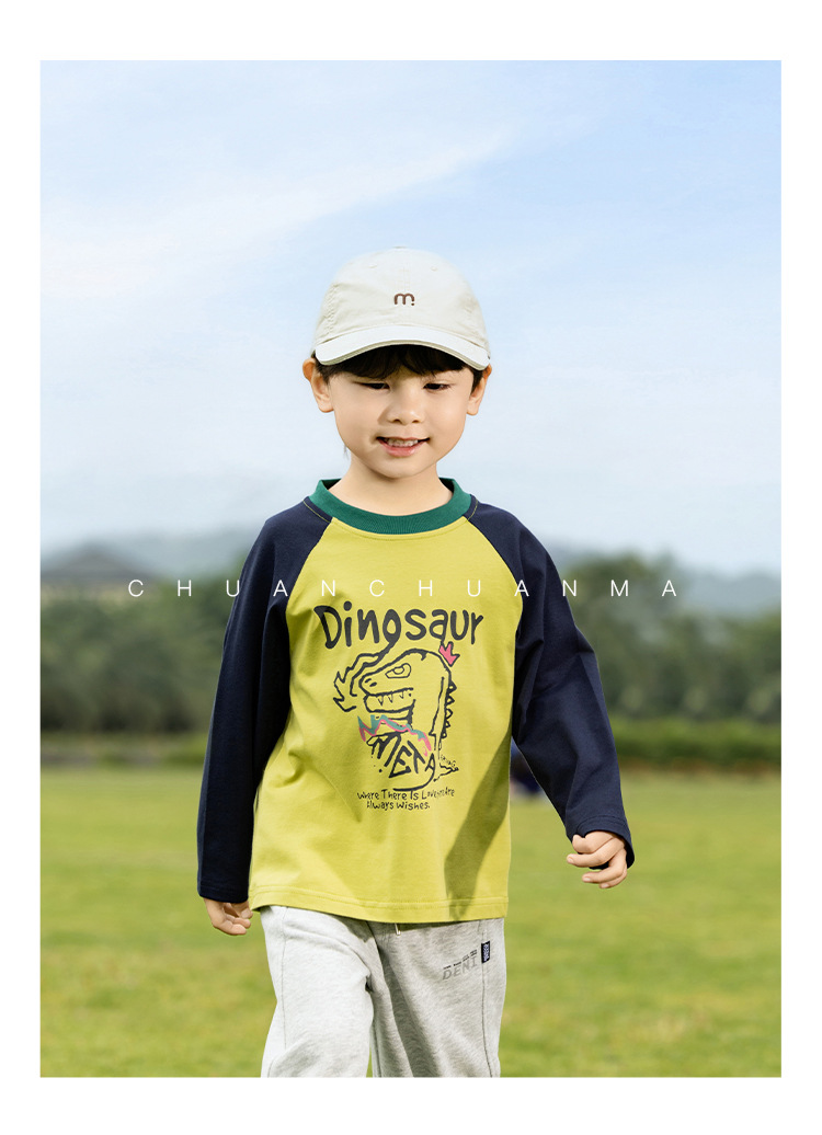 샤나오 2025 봄새 아동복 한국식 귀여운 보토밍 소년 · 소녀 올매치 콘트라스트 만화 티셔츠