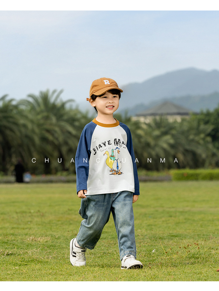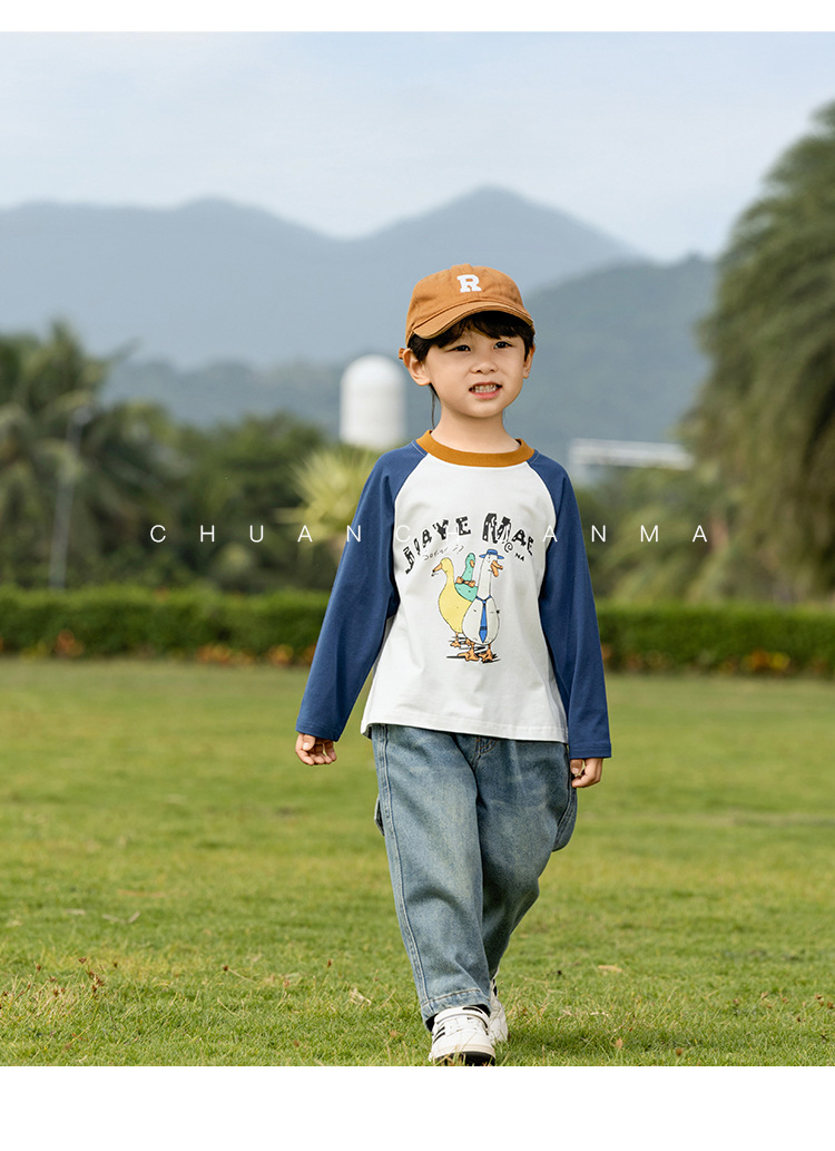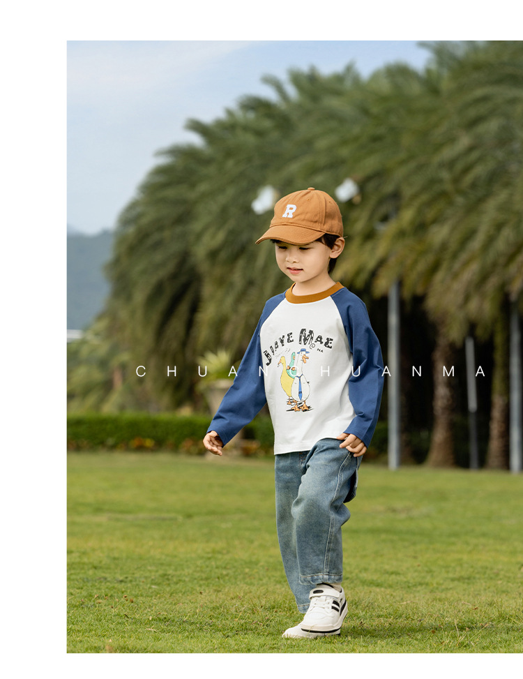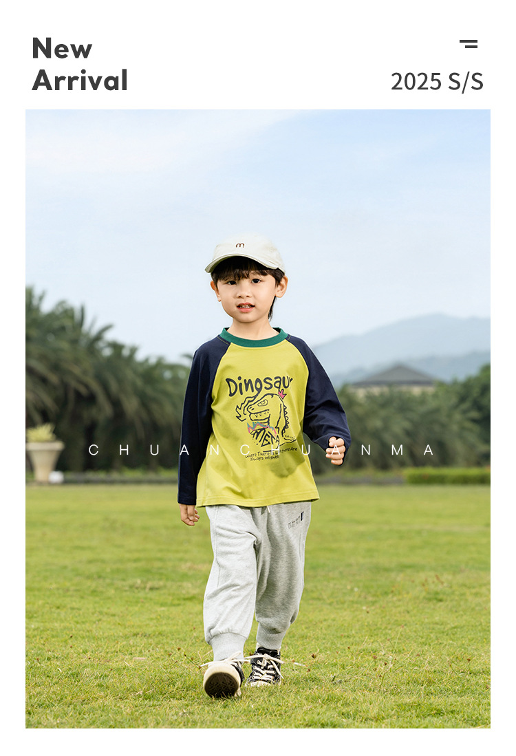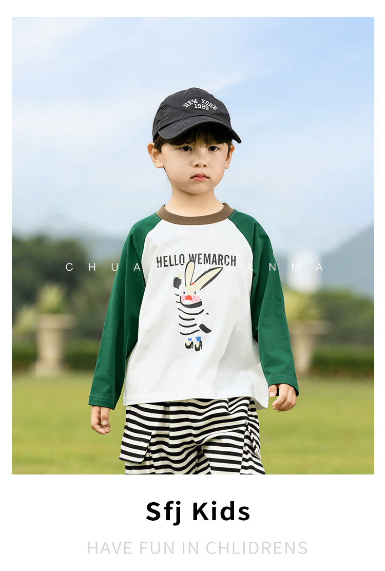 샤나오 2025 봄새 아동복 한국식 귀여운 보토밍 소년 · 소녀 올매치 콘트라스트 만화 티셔츠스토어 가기