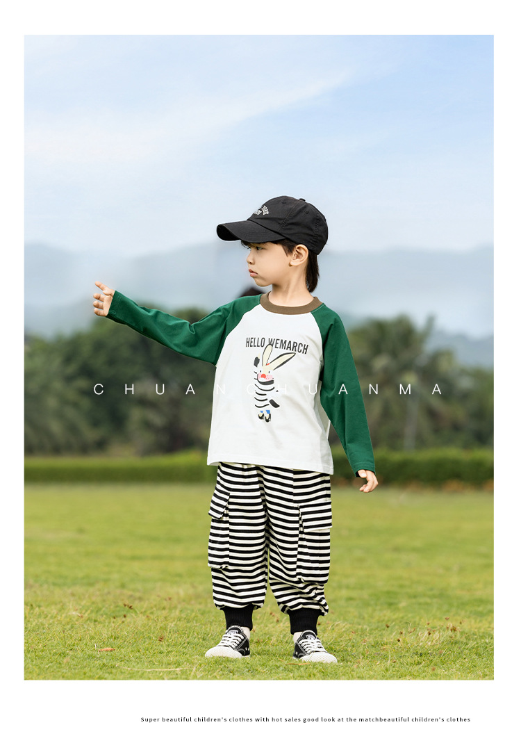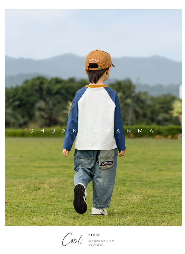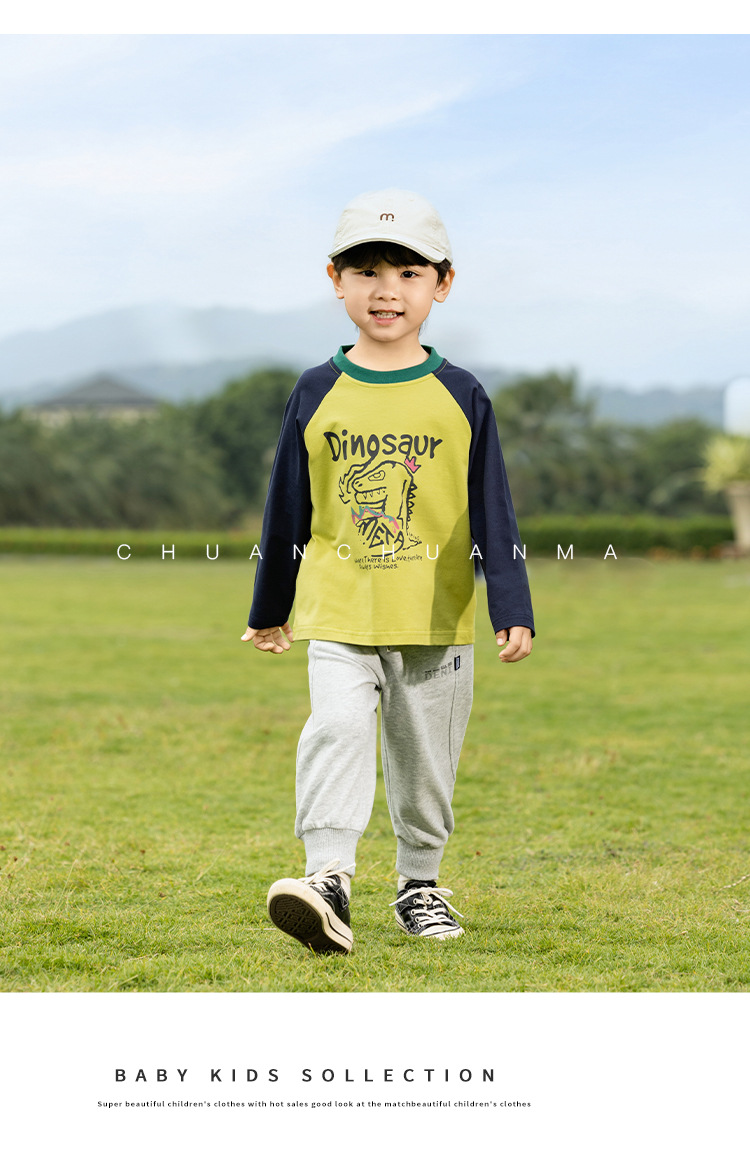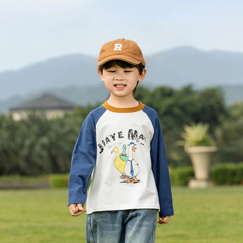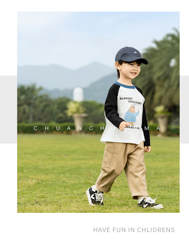 샤나오 2025 봄새 아동복 한국식 귀여운 보토밍 소년 · 소녀 올매치 콘트라스트 만화 티셔츠스토어 가기
