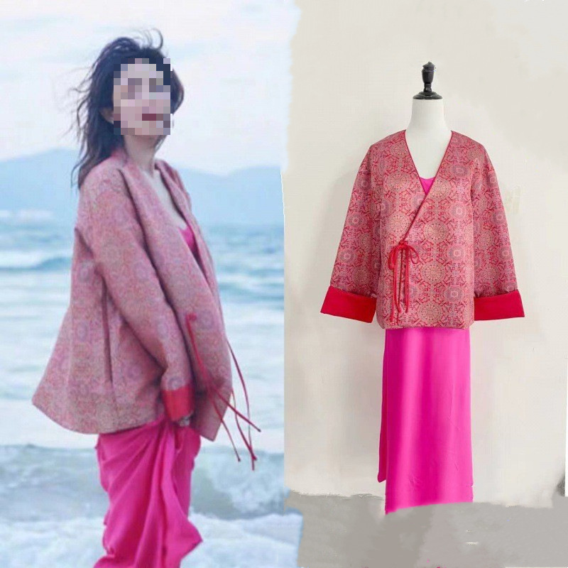 2025 재고 신년 양미의 레드 뉴 중국 스타일 자카드 웨스턴 스타일 셔츠 여성 톱 송 진 코트