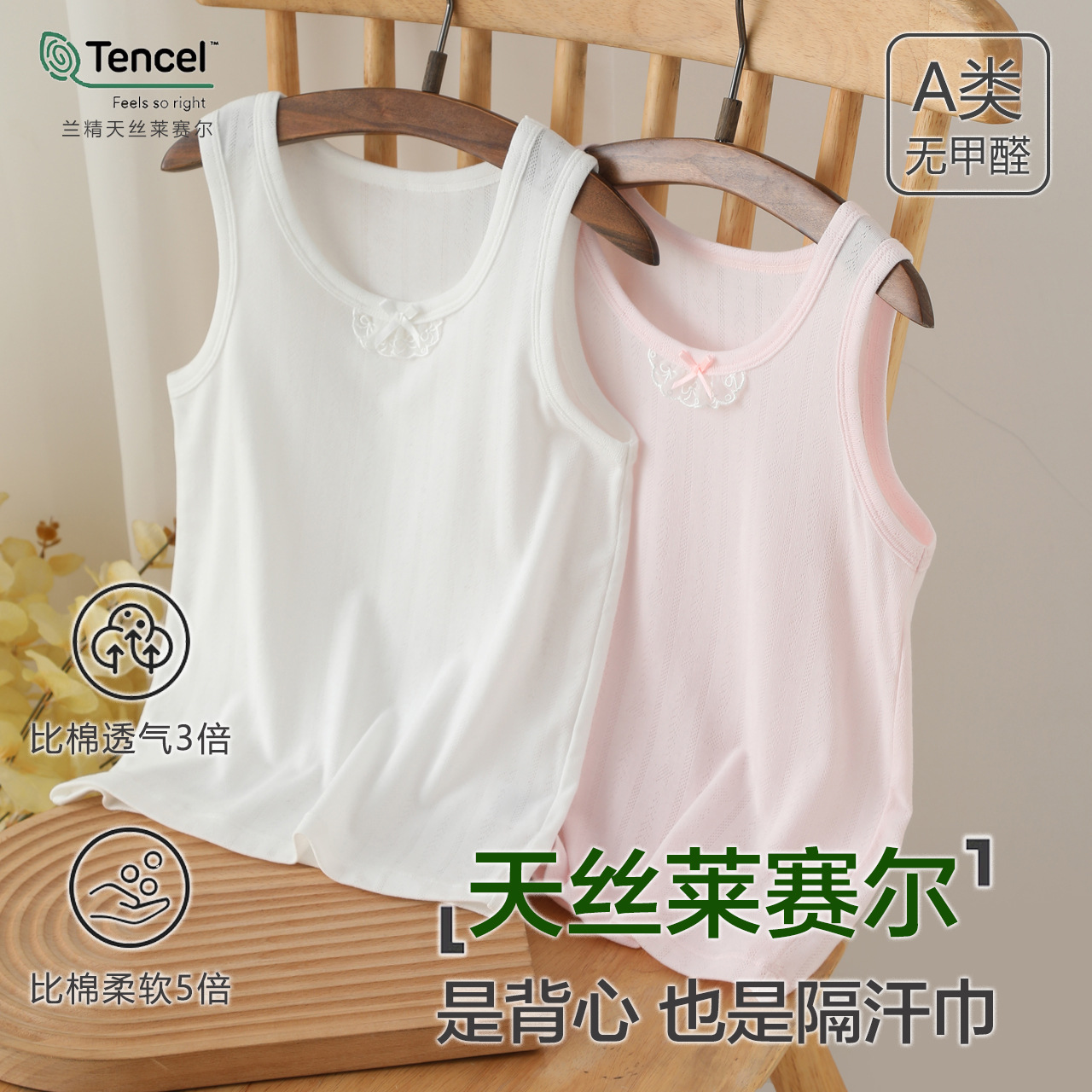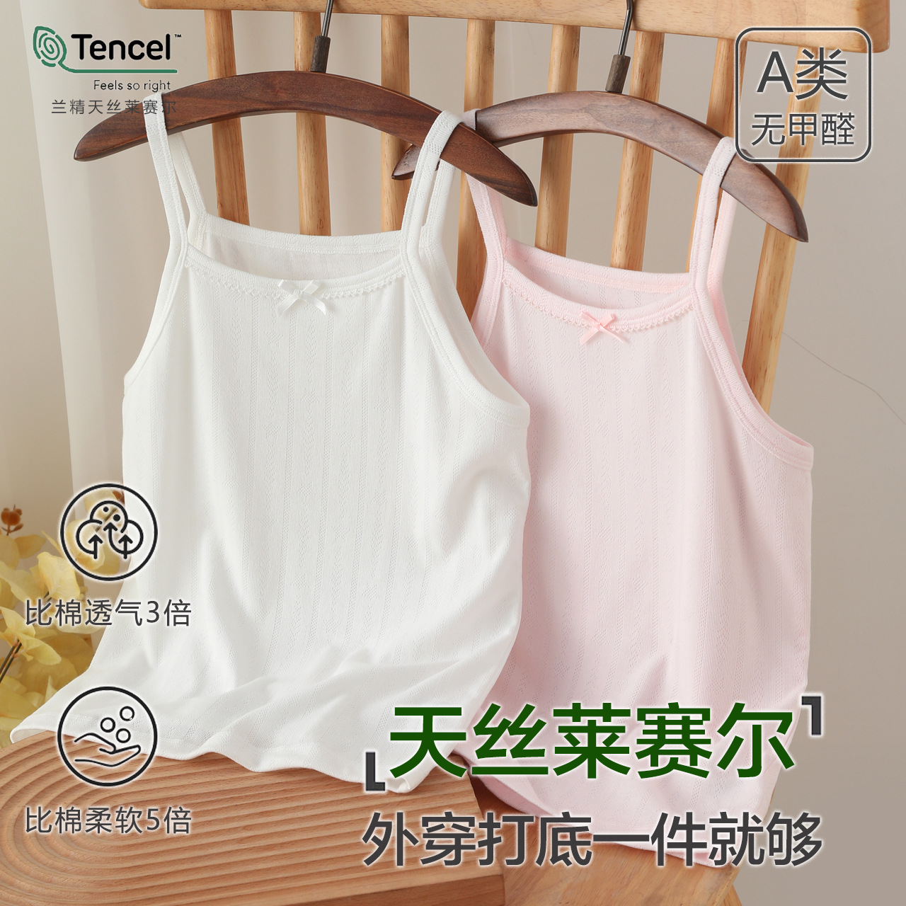 어린이 슬링 여름 얇은 Lyocell Girls Vest Outer Wear Base 민소매 최고 중 및 대형 어린이 내부 클래스 A
