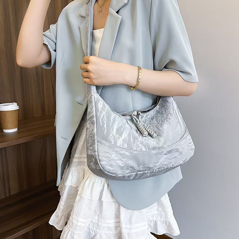 2025 봄 새로운 여성 가방 유행 대용량 높은 수준의 프로스트 휴식 게으른 스타일 어깨 가방 토트 백스토어 가기