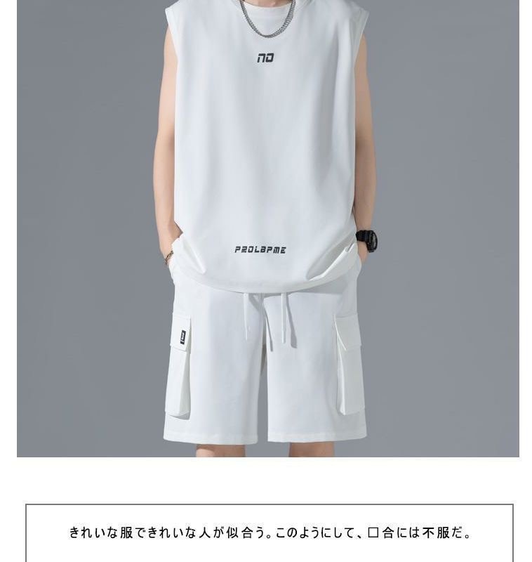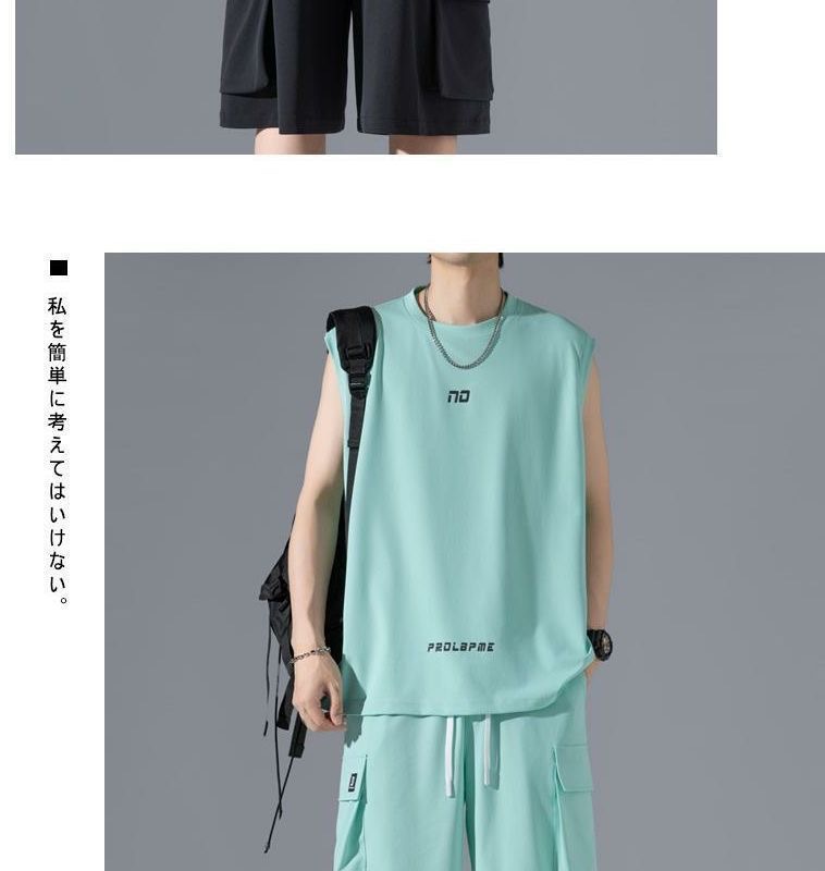 국경을 넘는 여름 세트 소년들은 잘 생긴 아이스 실크 조끼 반바지 캐주얼 스포츠 농구 남자 의류 세트를 착용합니다.스토어 가기