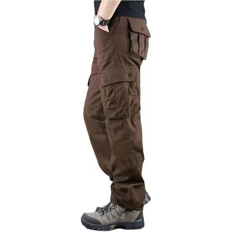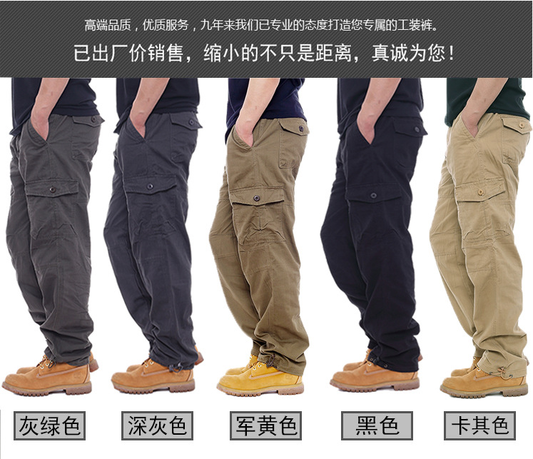 2025 대외 무역 싱글 바지 남성 캐주얼 바지 탄성 허리 대형 바지 멀티 포켓 느슨한 바지 건설 현장 바지