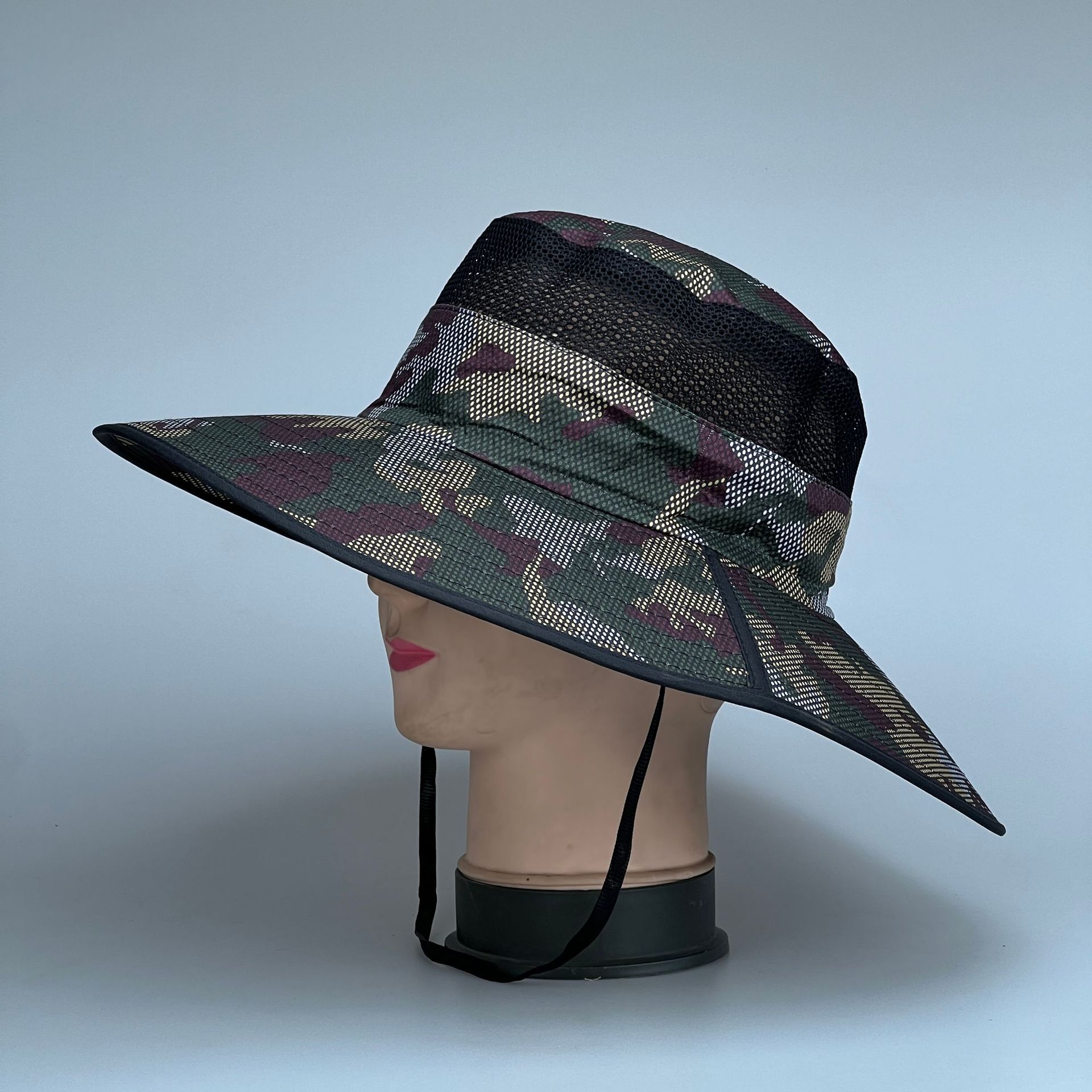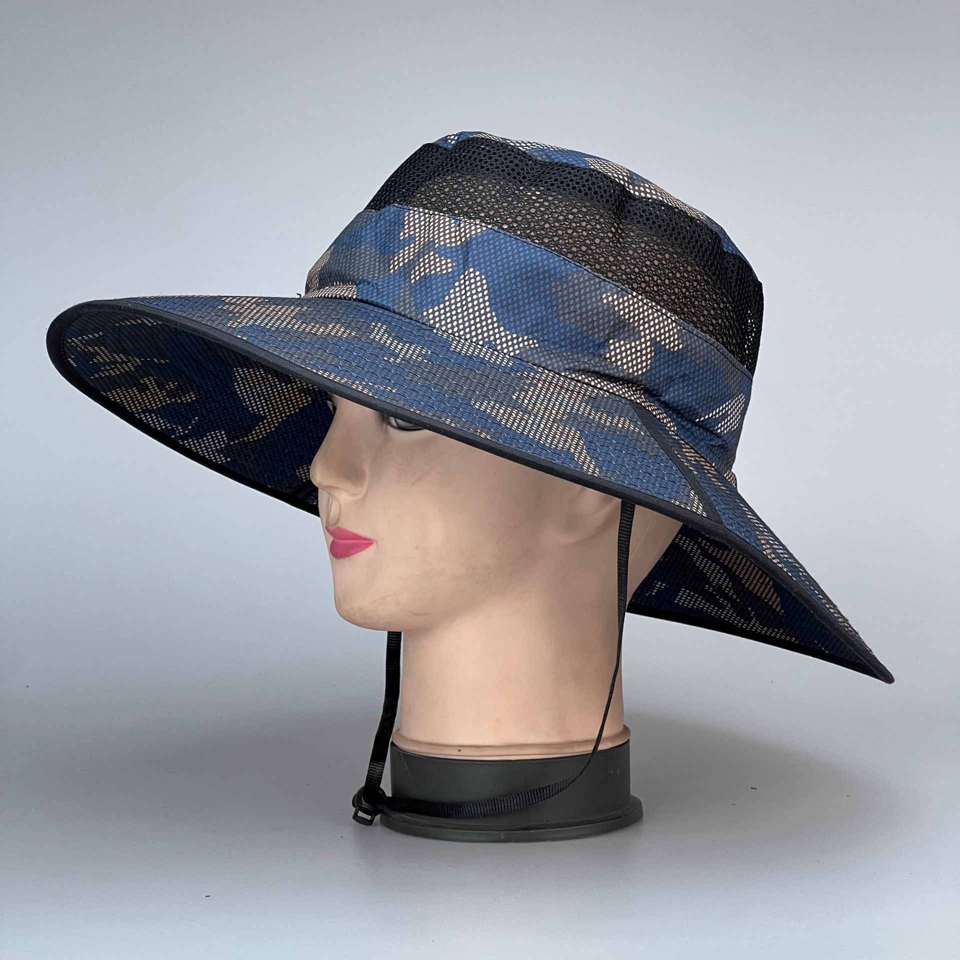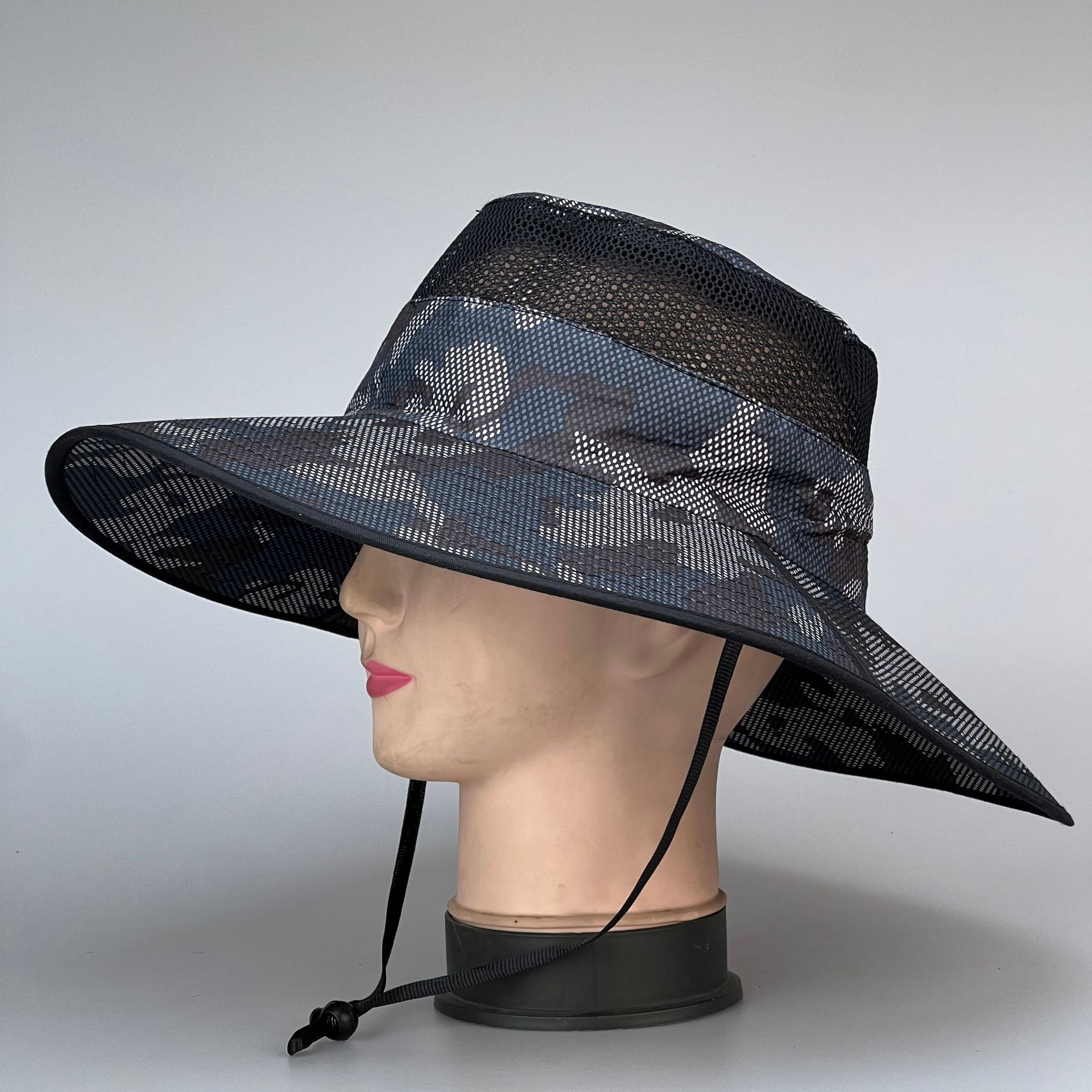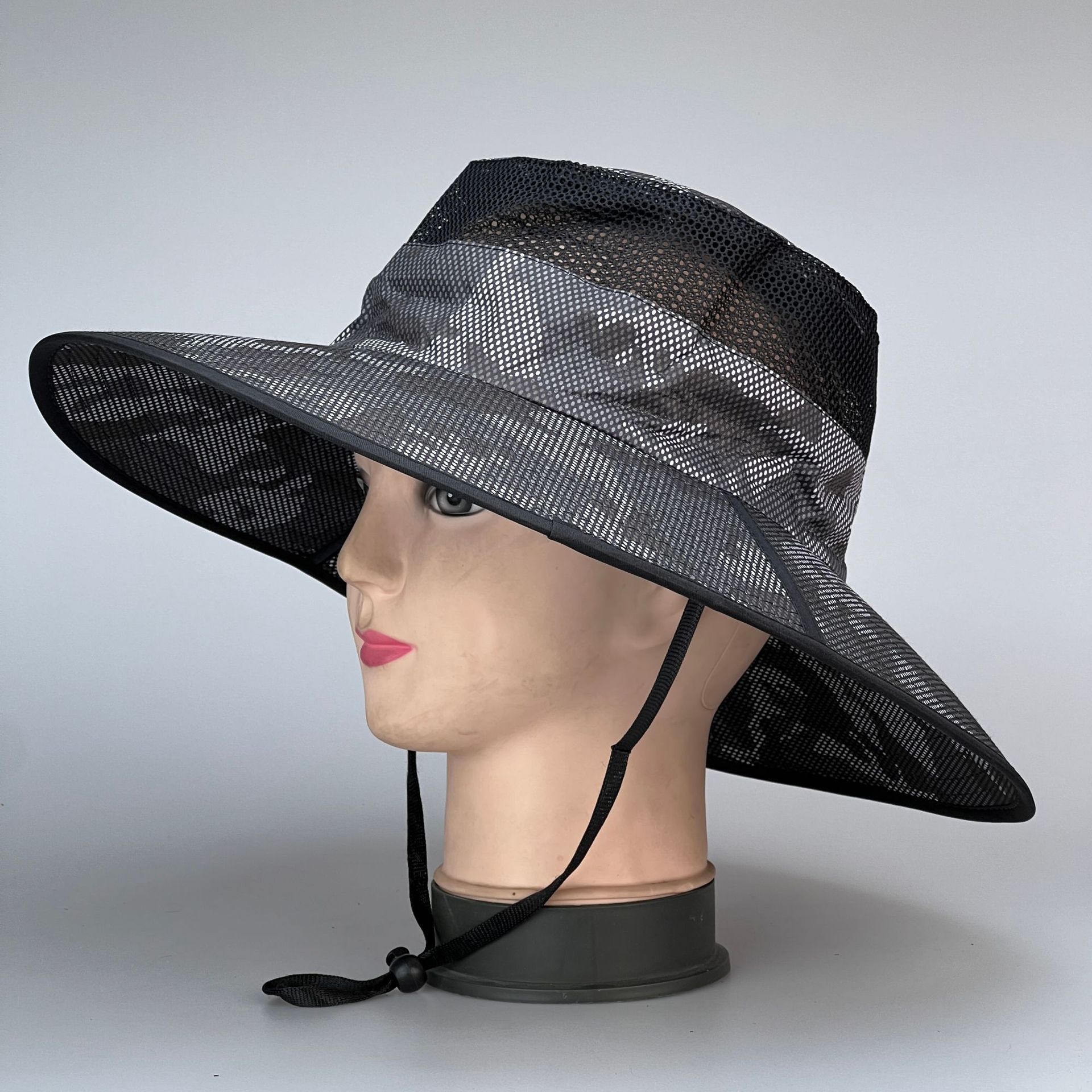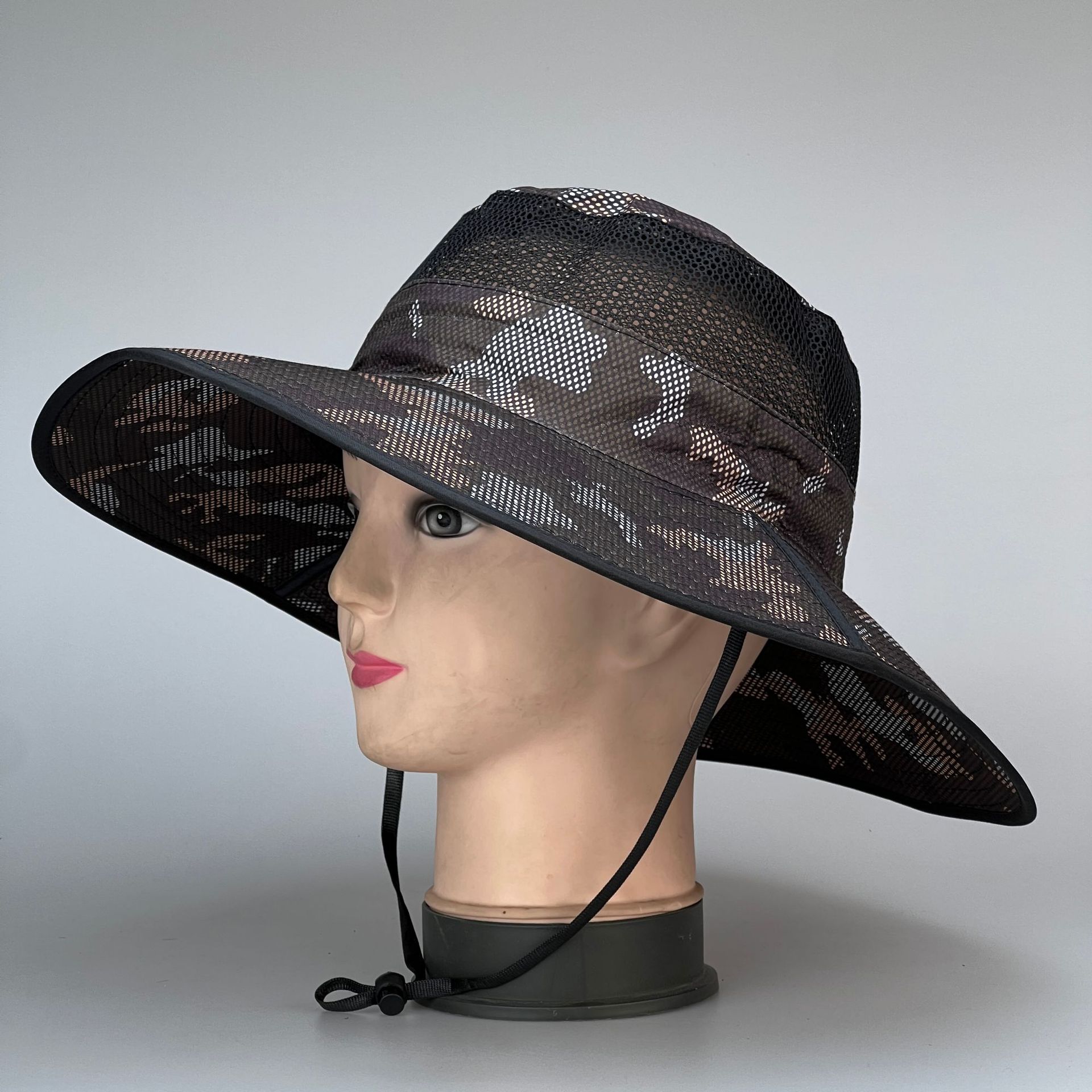 큰 테두리 태양 모자 다크 그리드 위장 태양 모자 스냅 버튼 큰 테두리 카우보이 모자 야외 하이킹 모자 낚시 모자 그물 모자