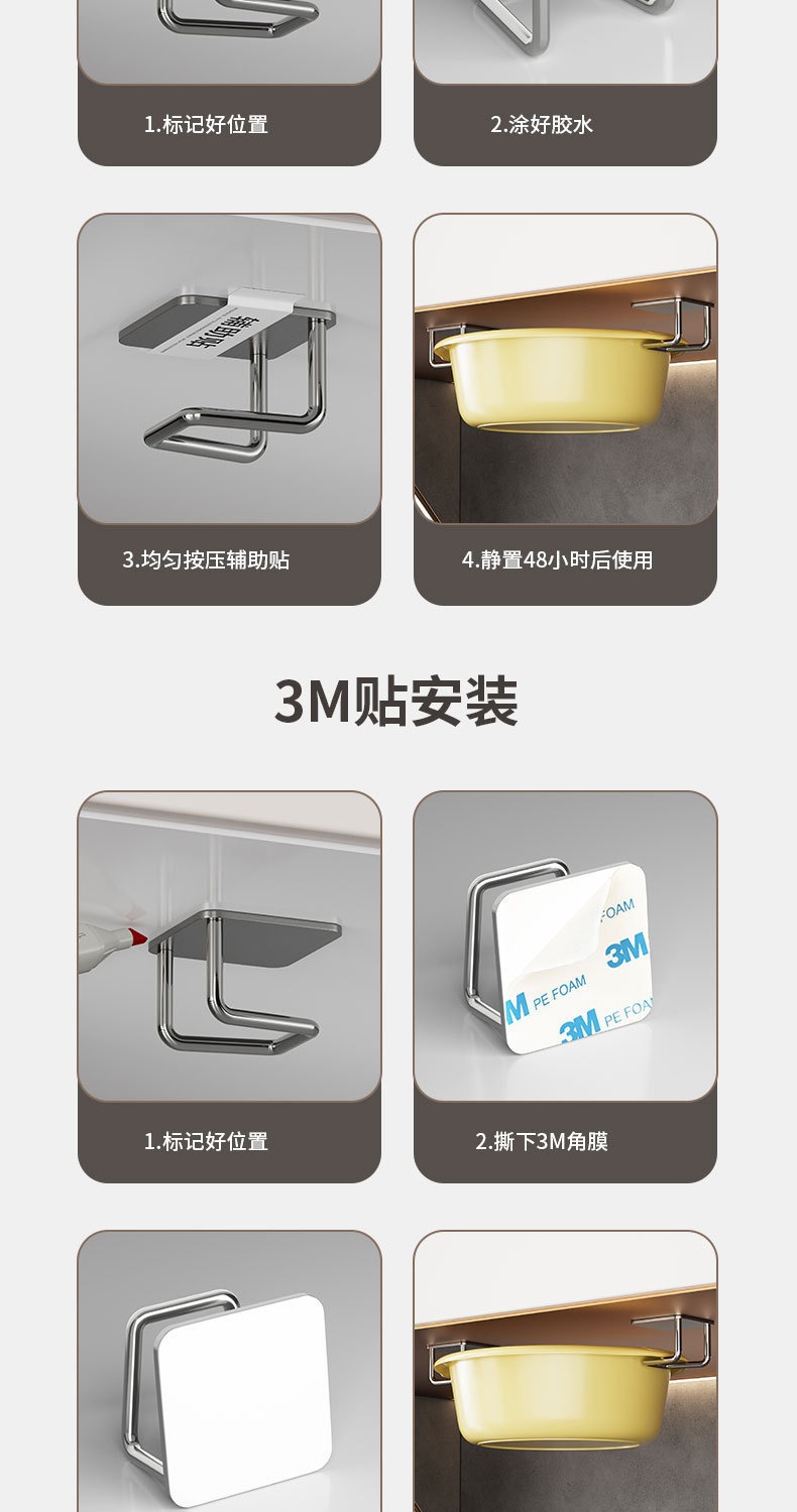 접착 성 자체 접착 성 펀치없는 화장실 세면기 보관 선반 주방 스폰지 랙 스테인레스 스틸 스토리지 랙스토어 가기