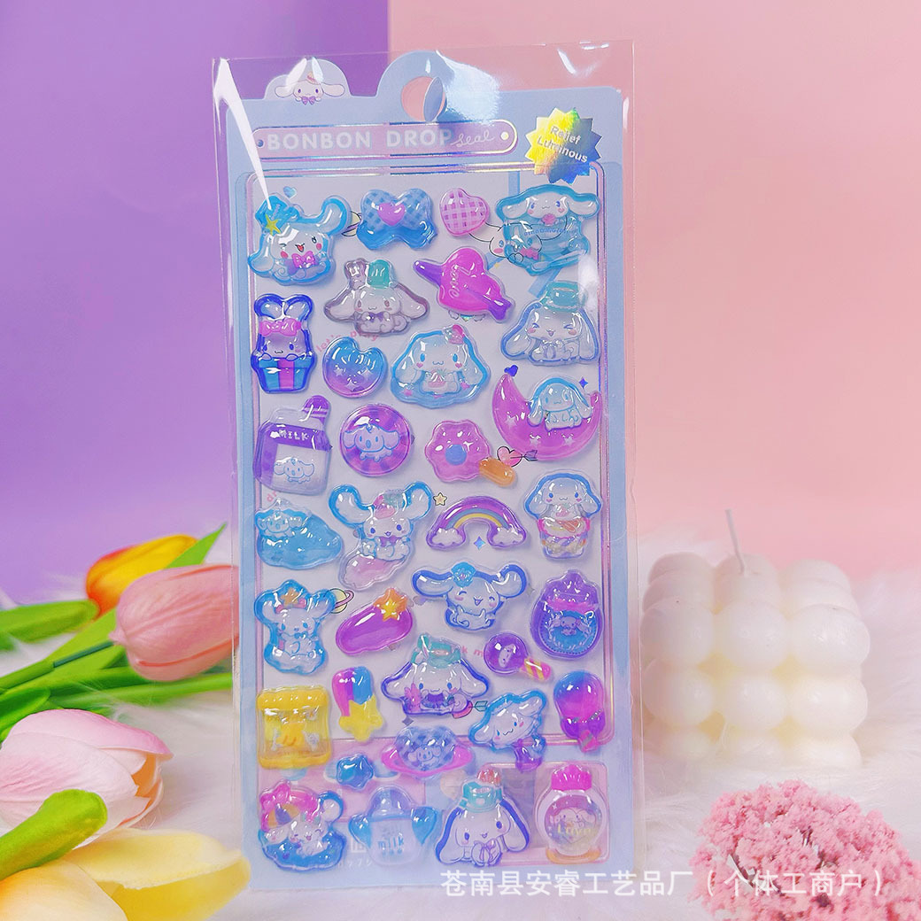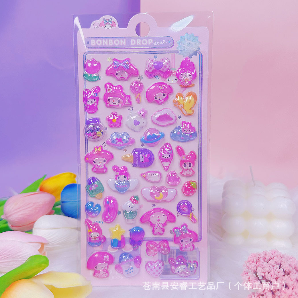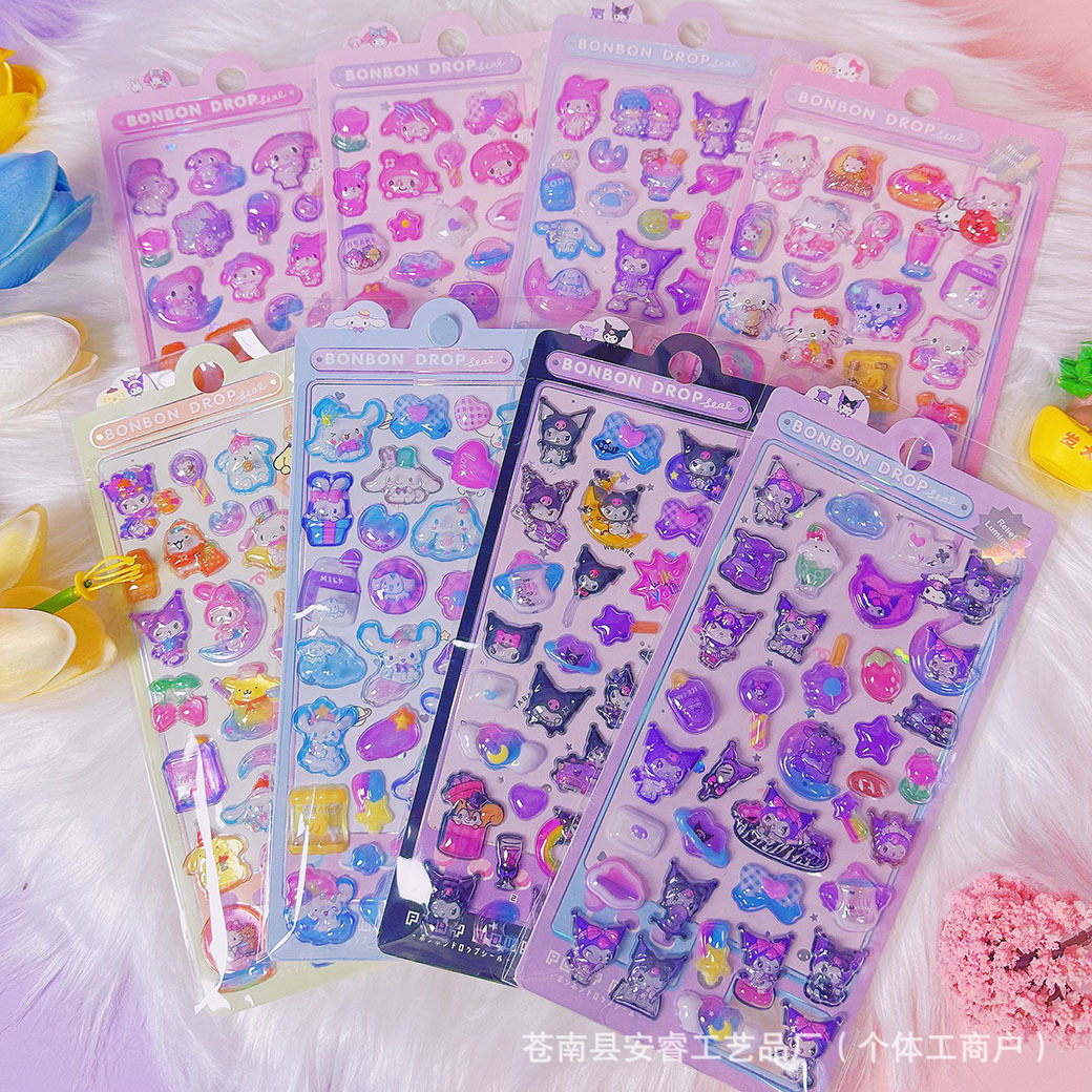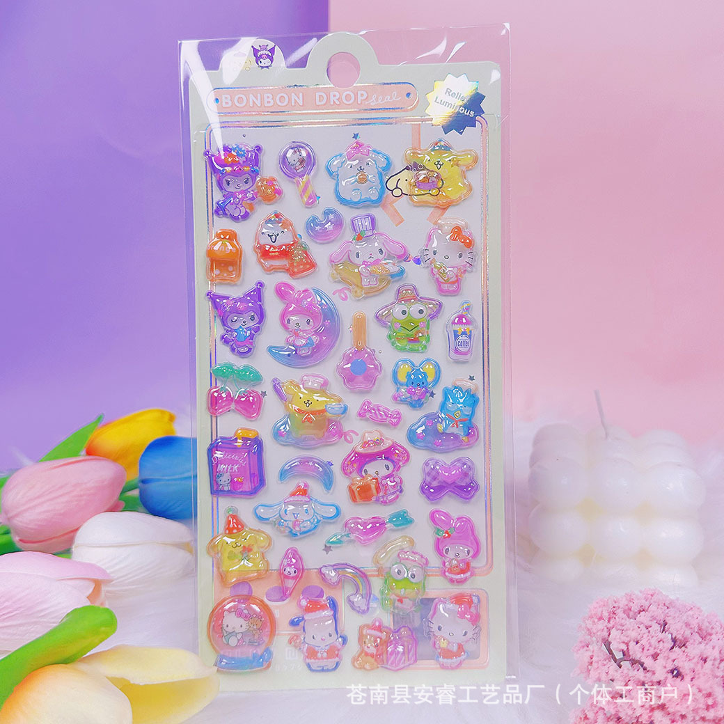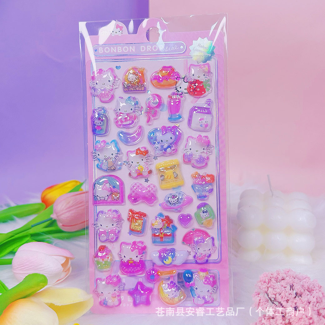 새로운 양각 만화 Sanrio Kulomi Merotti 3D 입체 양각 빛나는 스티커 어린이 귀여운 재미스토어 가기