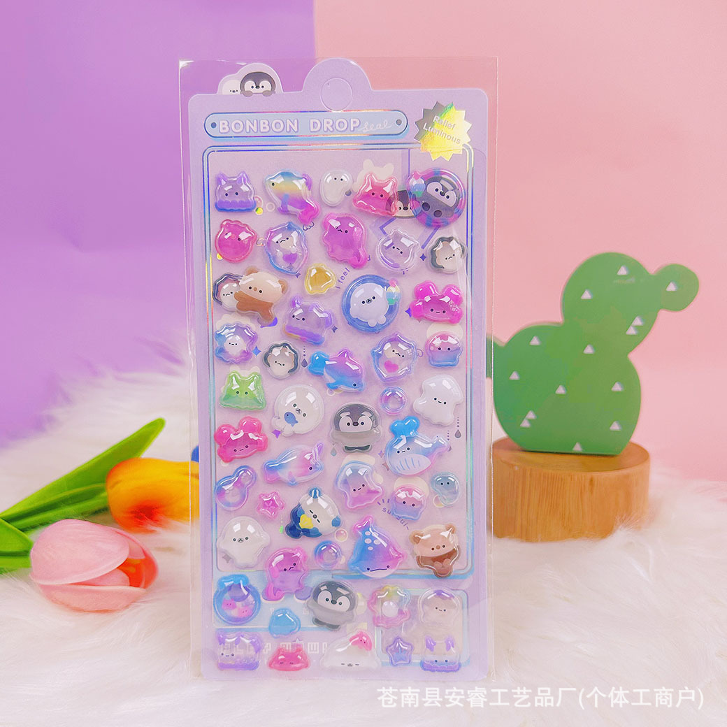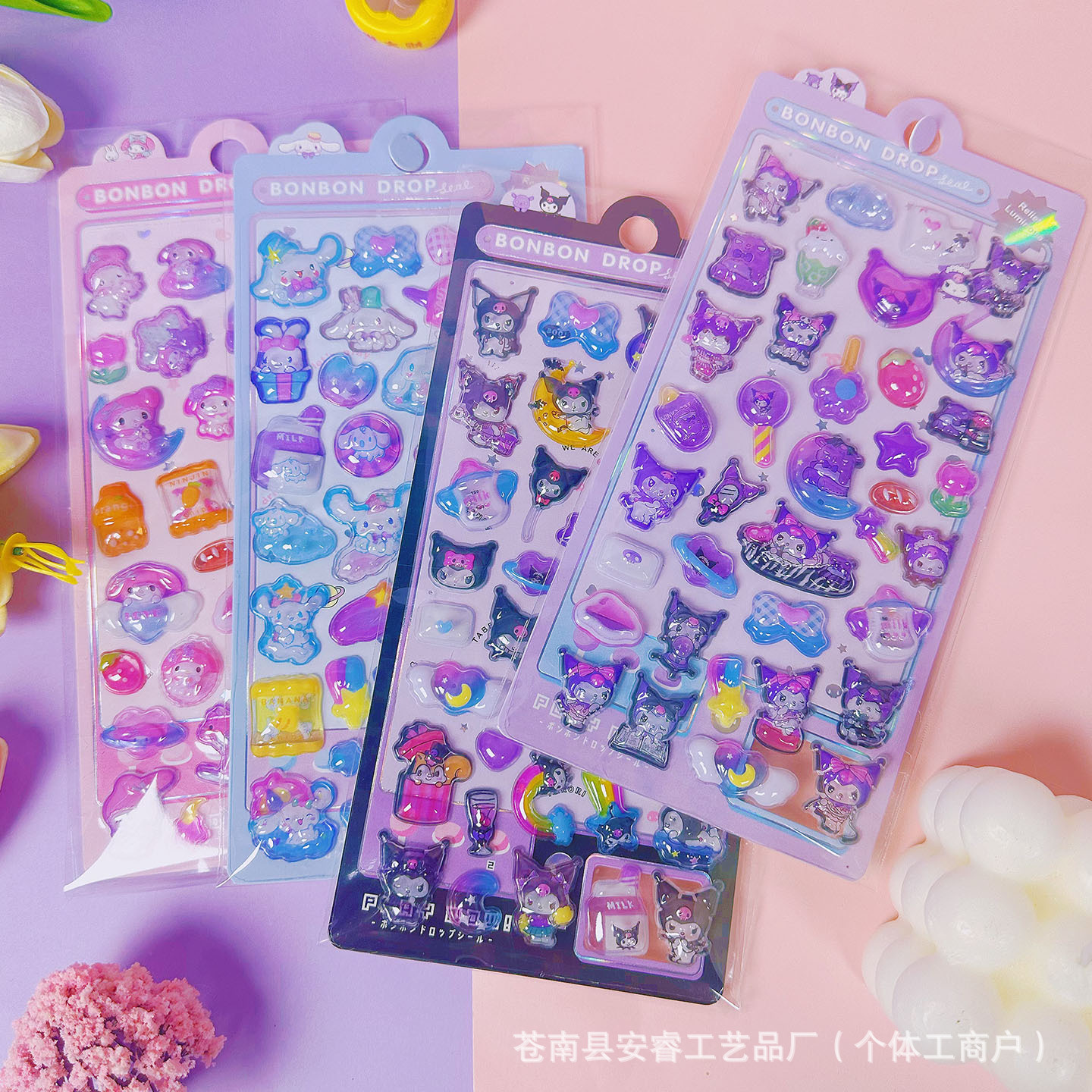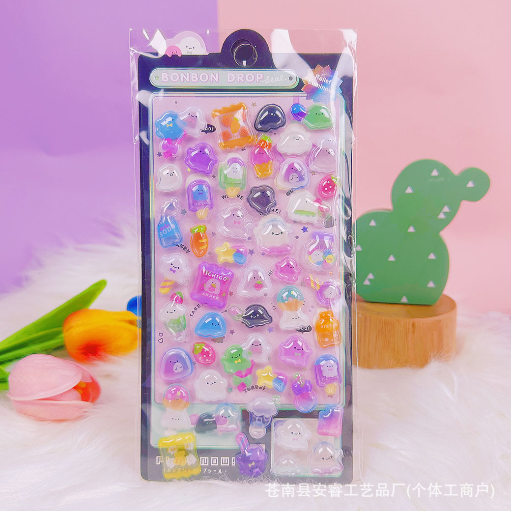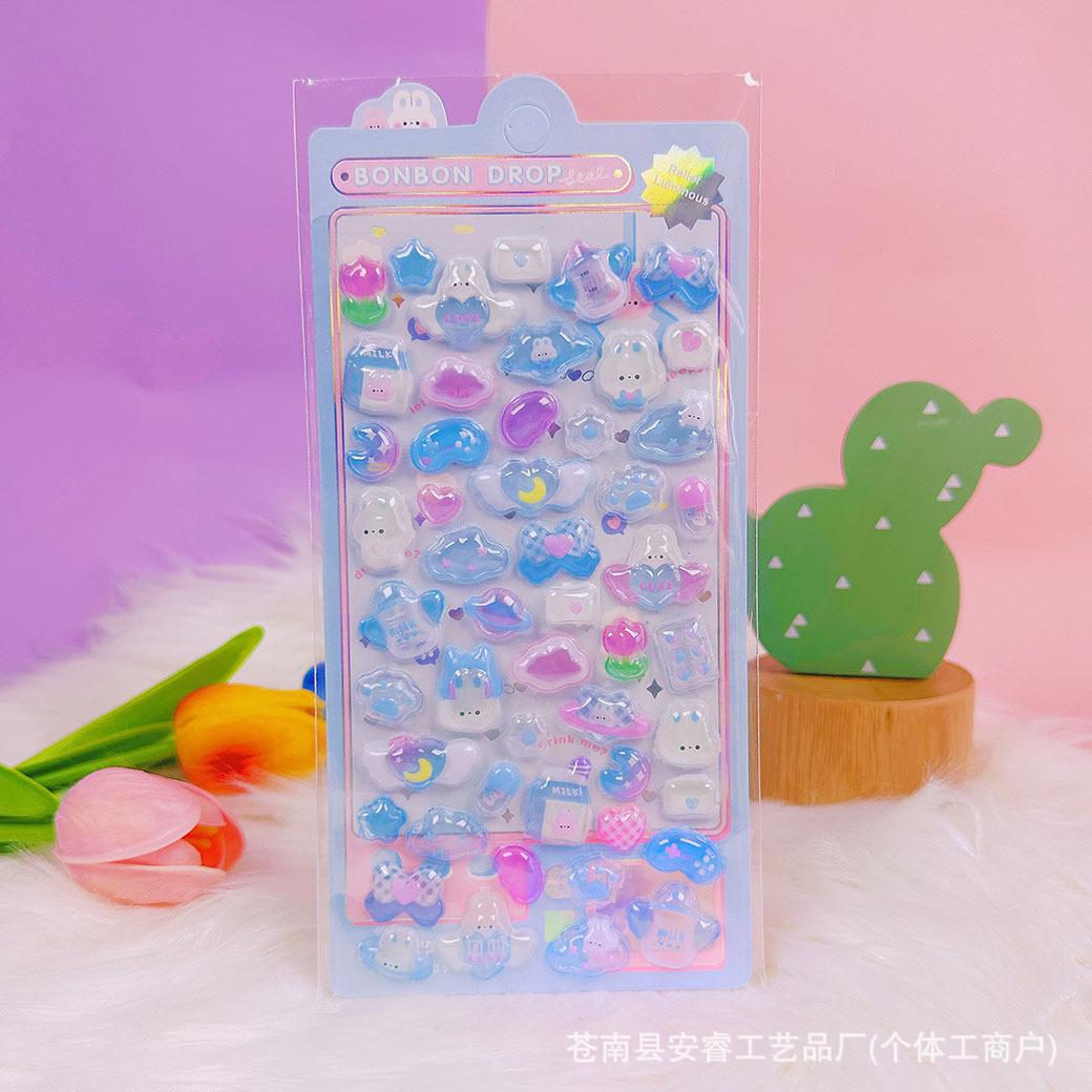 새로운 양각 만화 Sanrio Kulomi Merotti 3D 입체 양각 빛나는 스티커 어린이 귀여운 재미스토어 가기