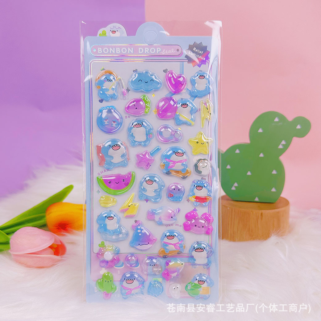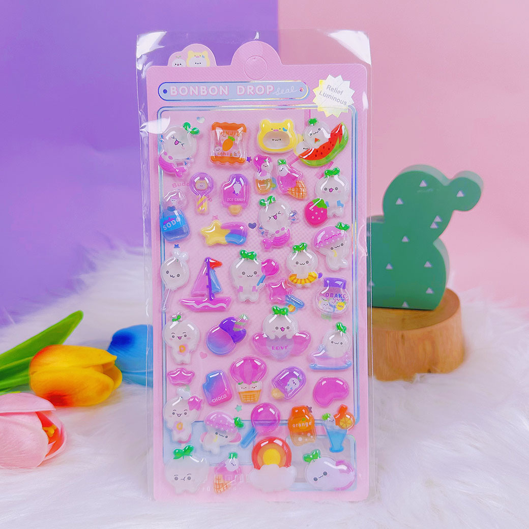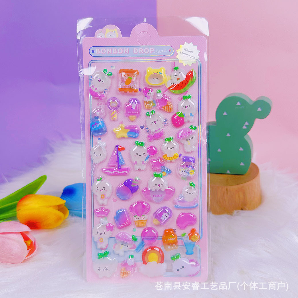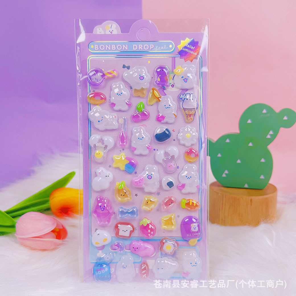 새로운 양각 만화 Sanrio Kulomi Merotti 3D 입체 양각 빛나는 스티커 어린이 귀여운 재미