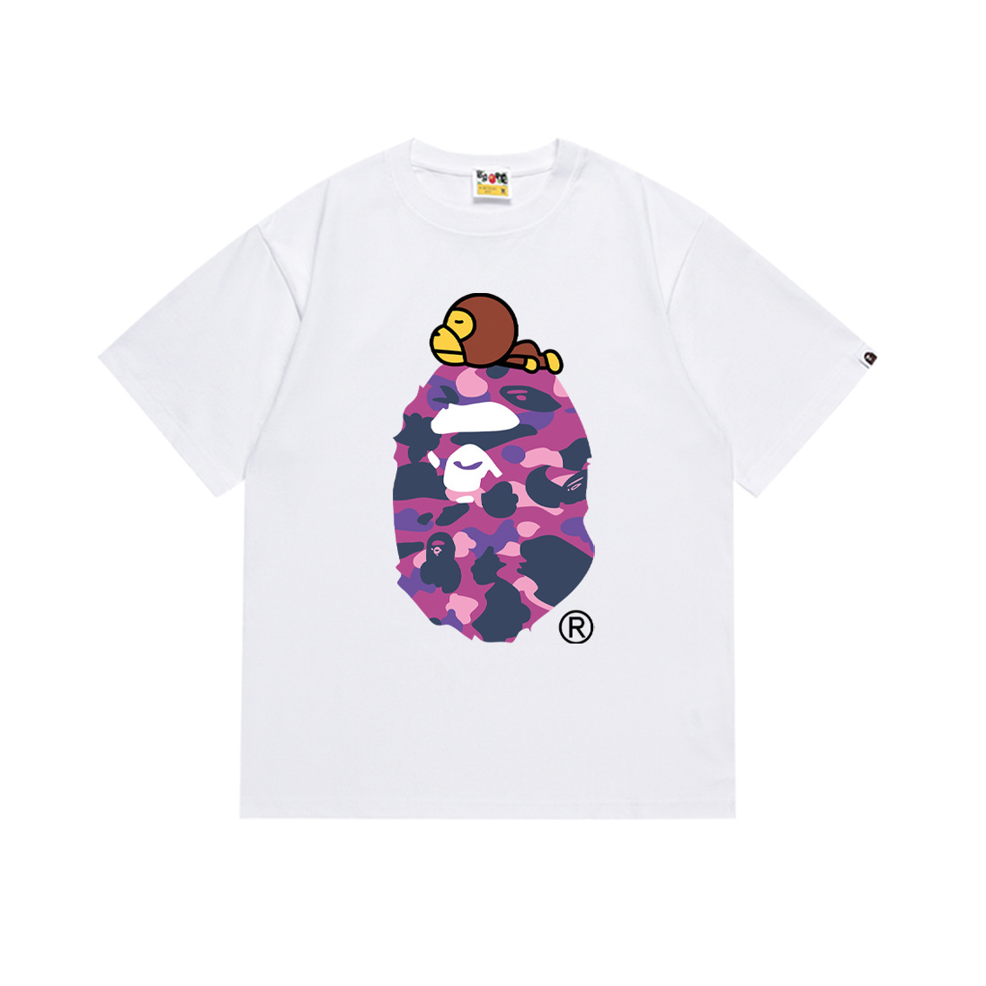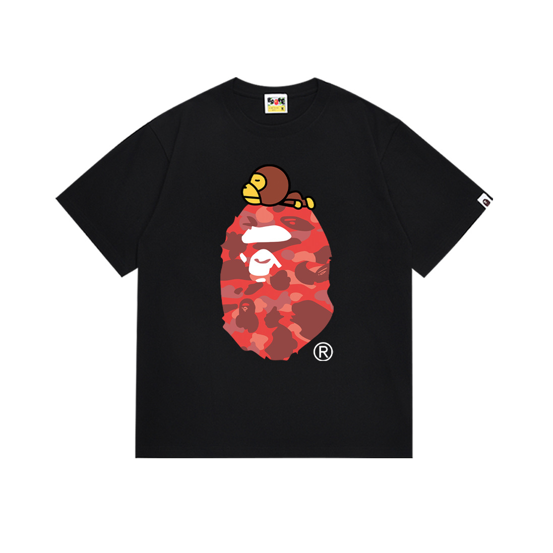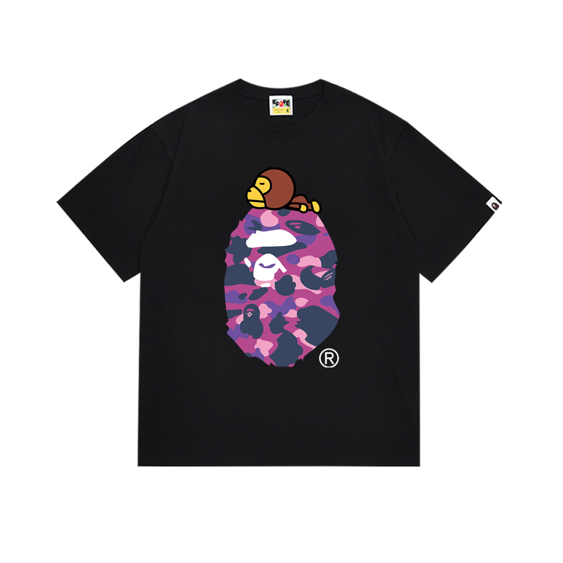 BAPE Tirt 2024SS 여름 원숭이 머리 작은 원숭이 위장 남성과 여성의 짧은 소매 둥근 목 티셔츠 남성