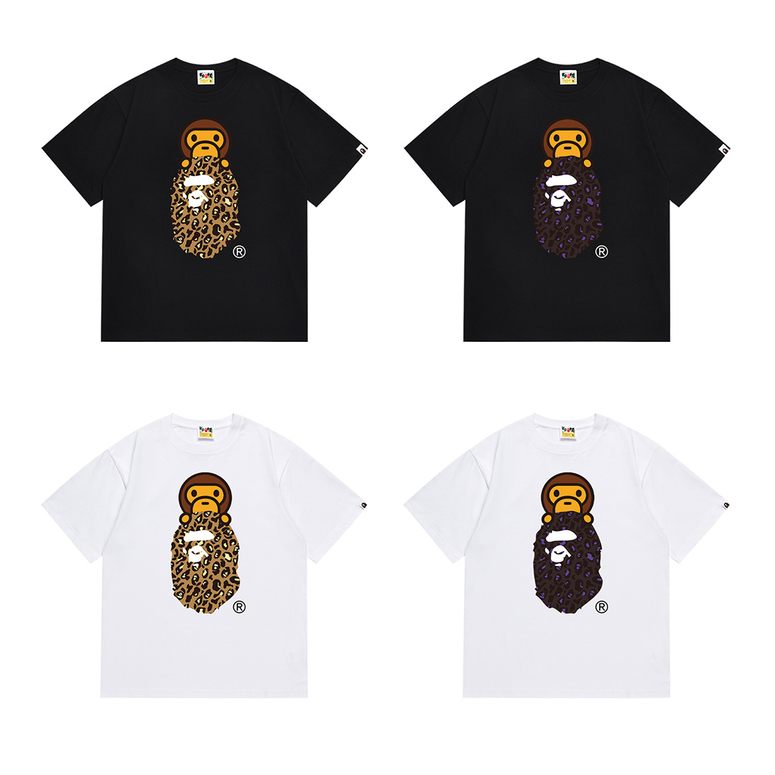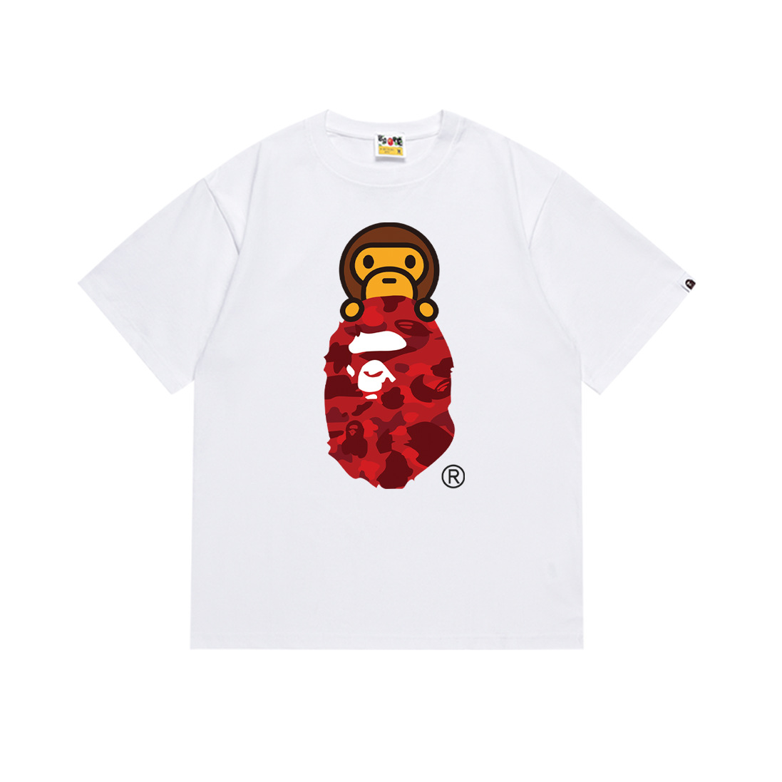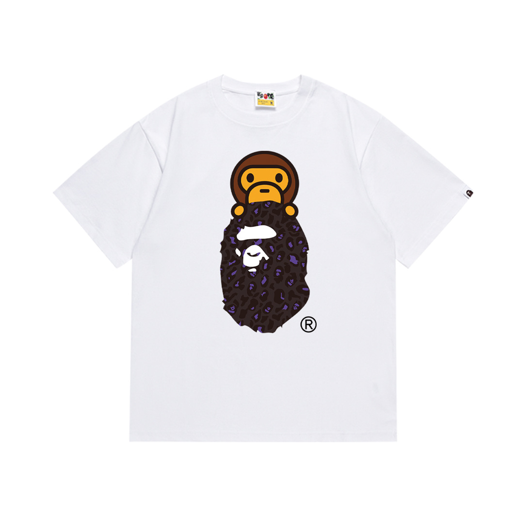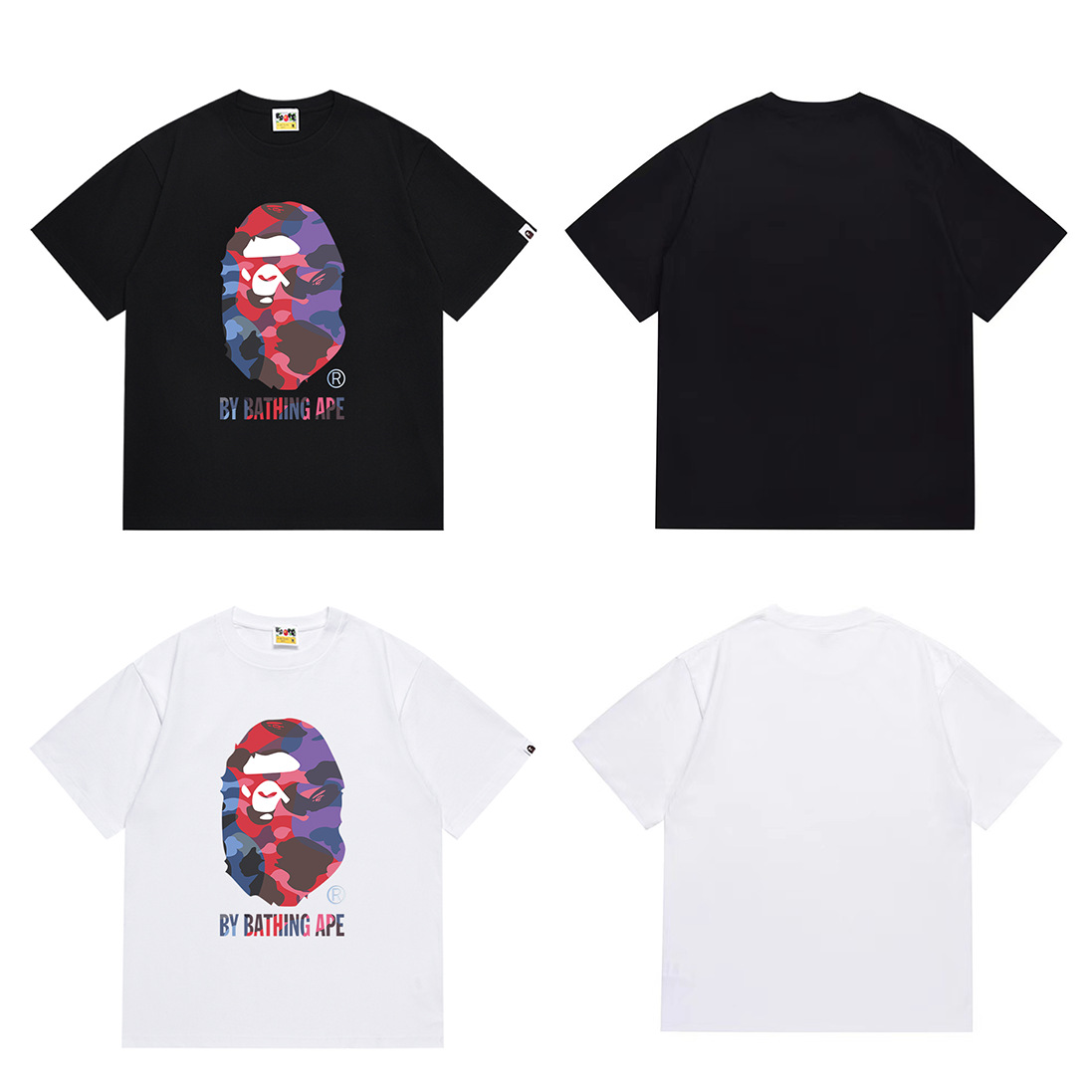BAPE Tirt 2024SS 여름 원숭이 머리 작은 원숭이 위장 남성과 여성의 짧은 소매 둥근 목 티셔츠 남성