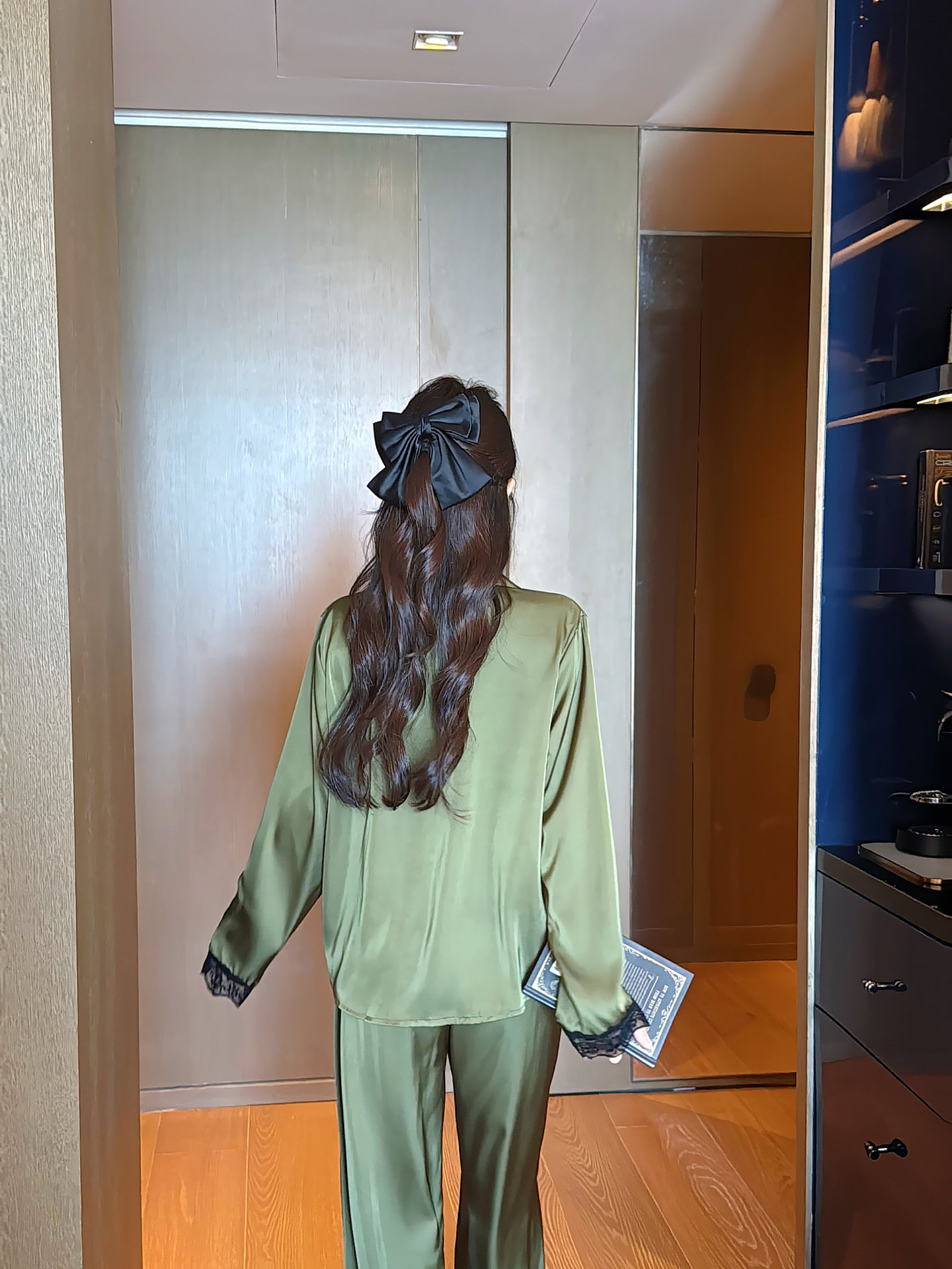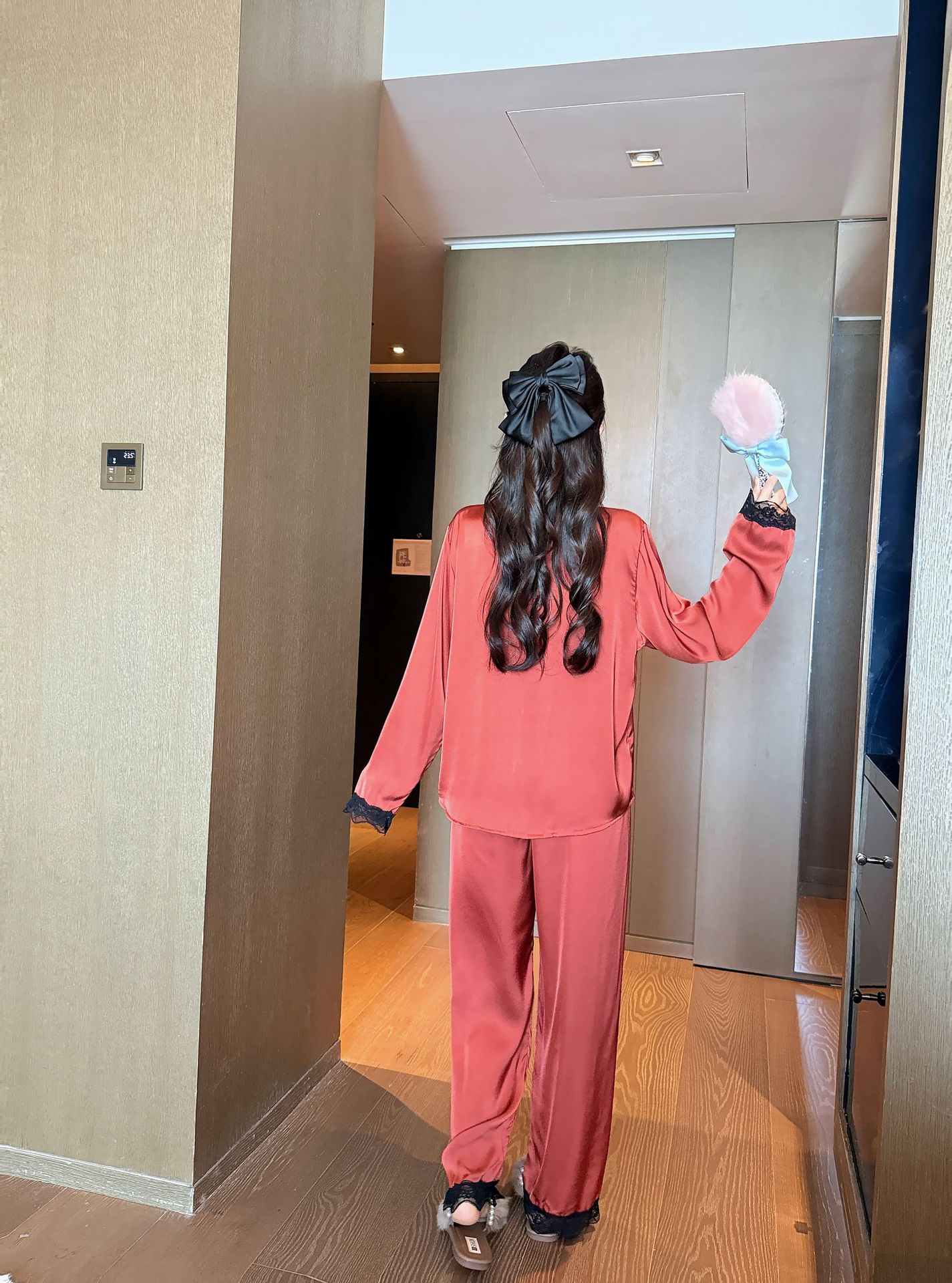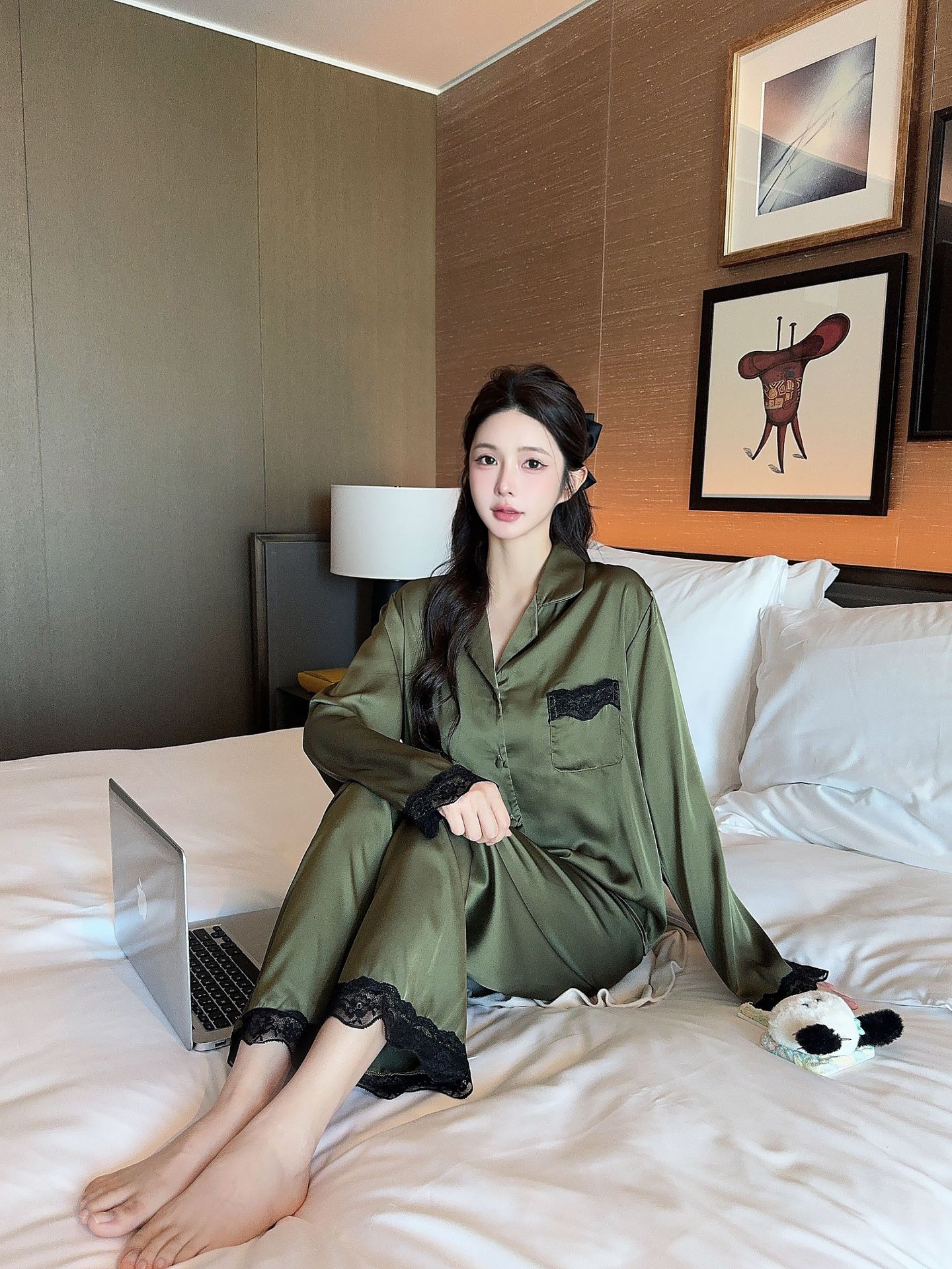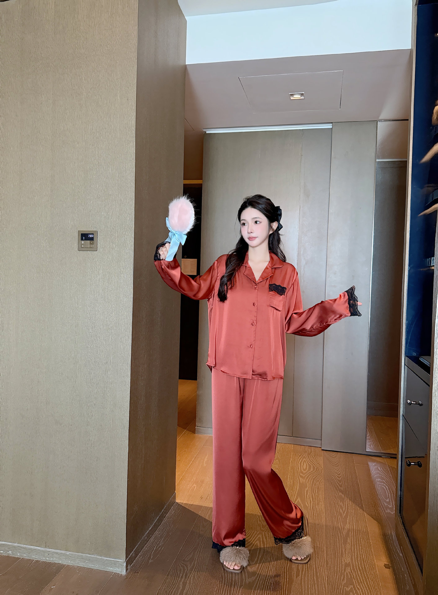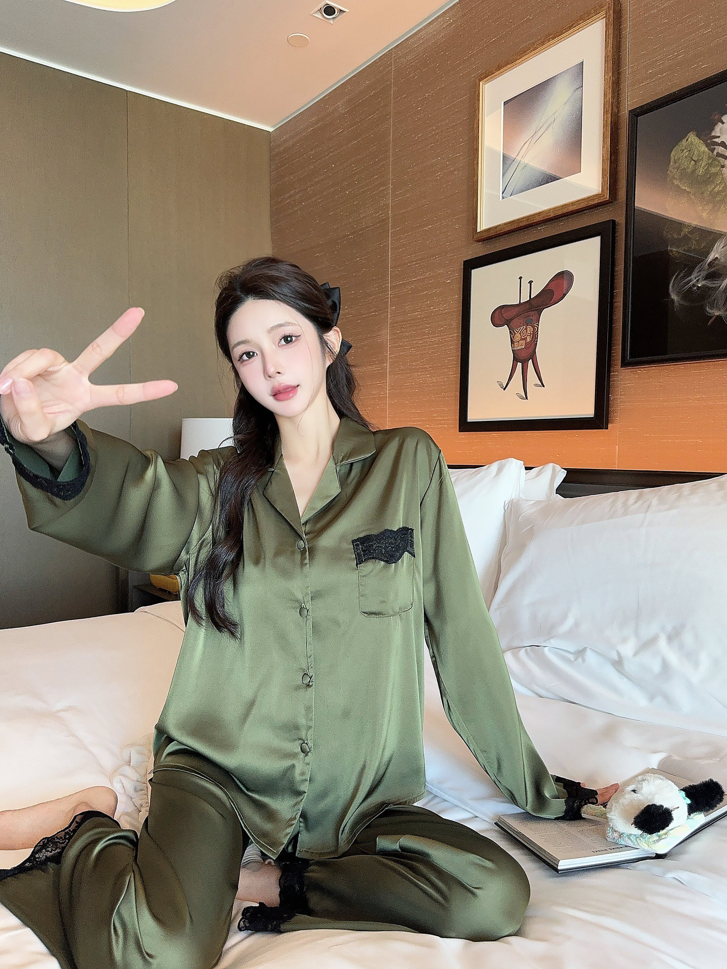 [라즈베리 잼] 아이스실크 봄 파자마 여성 긴소매 바지 한국식 카디건 레이스 아우터 홈 의류스토어 가기