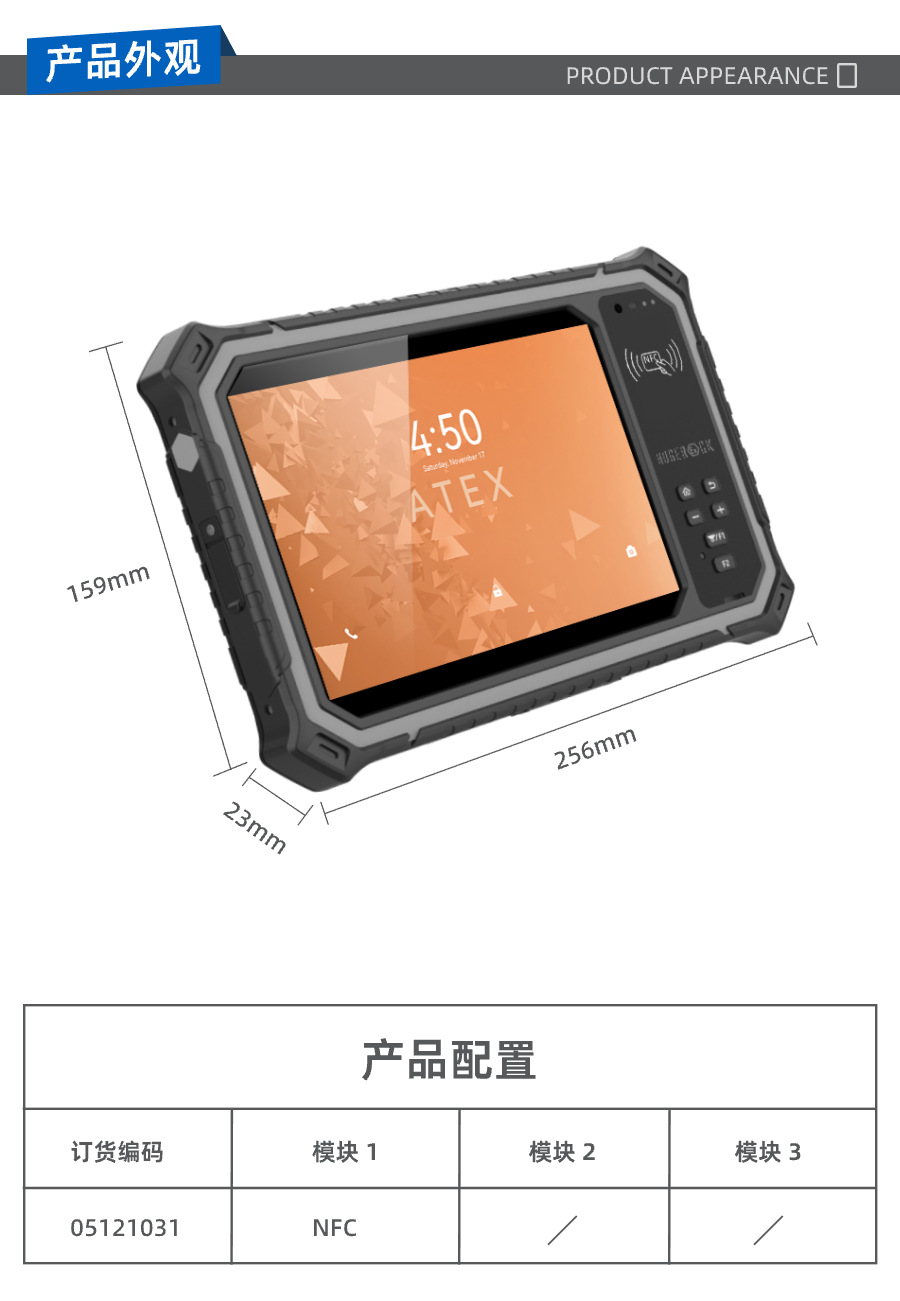HUGEROCK T80EX 석유 및 석유화학 8inch 3중 강화 방폭형 NFC 8코어 태블릿 PC스토어 가기