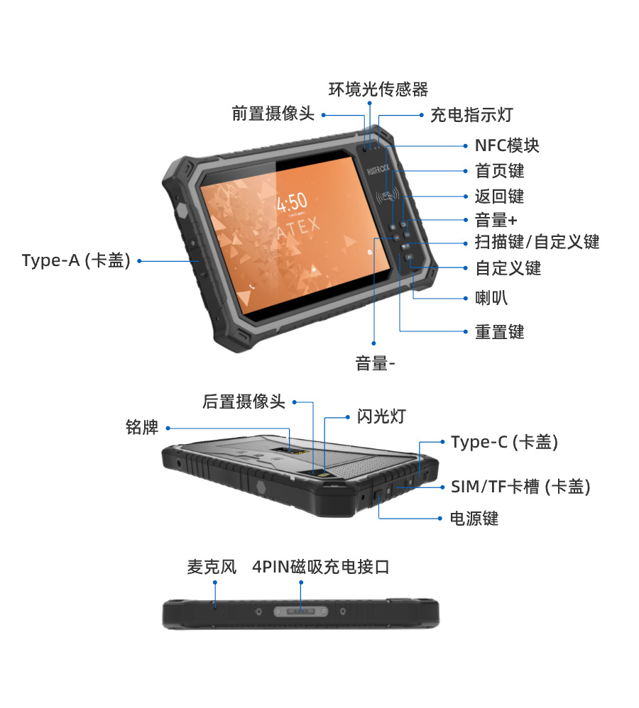 HUGEROCK T80EX 석유 및 석유화학 8inch 3중 강화 방폭형 NFC 8코어 태블릿 PC
