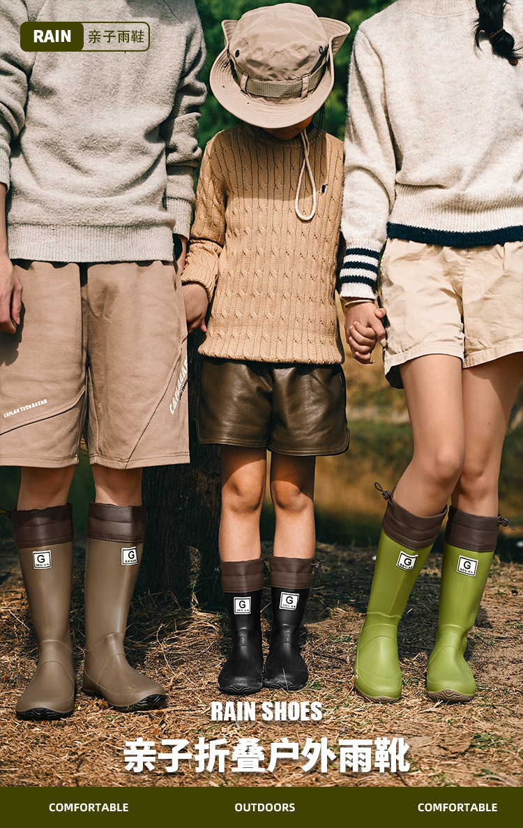 야생 조류 협회 부모-어린이 접이식 장화 남성과 여성을위한 벨트 비 부츠 워터 슈즈 높은 부츠 야외 패션 캠핑 접착제