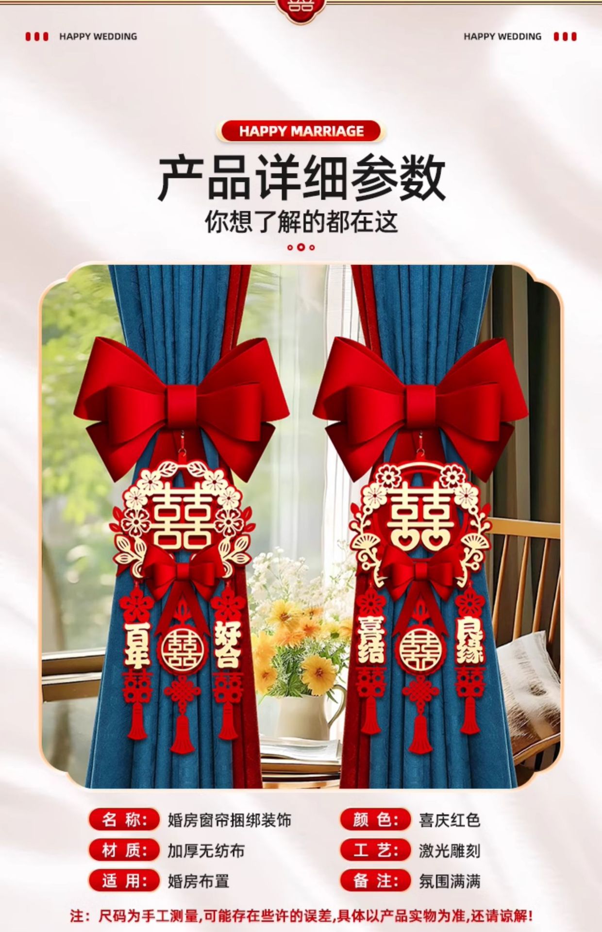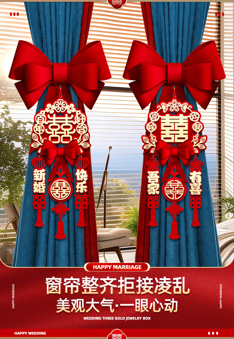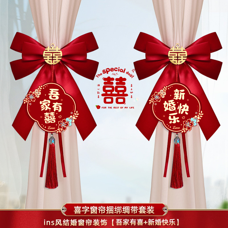 • Xiaohua, 우리 가족은 행복하다 + 행복한 결혼 [ins 커튼 묶음 장식 1쌍]