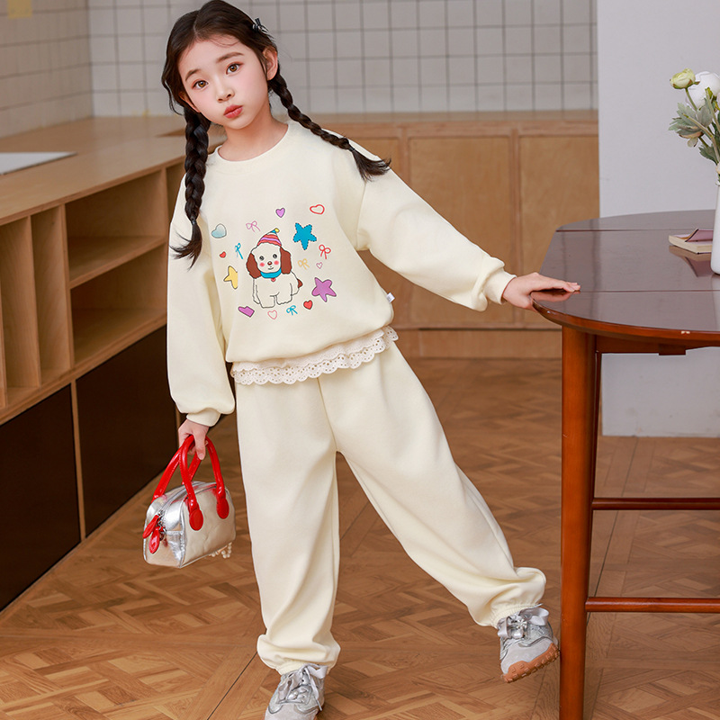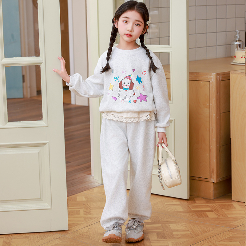 2025 아동용 스웨트셔츠 세트 봄 가을 여아 스포츠웨어 소녀 만화 레이스 아웃도어 투피스 세트 한국 스타일 아동복스토어 가기
