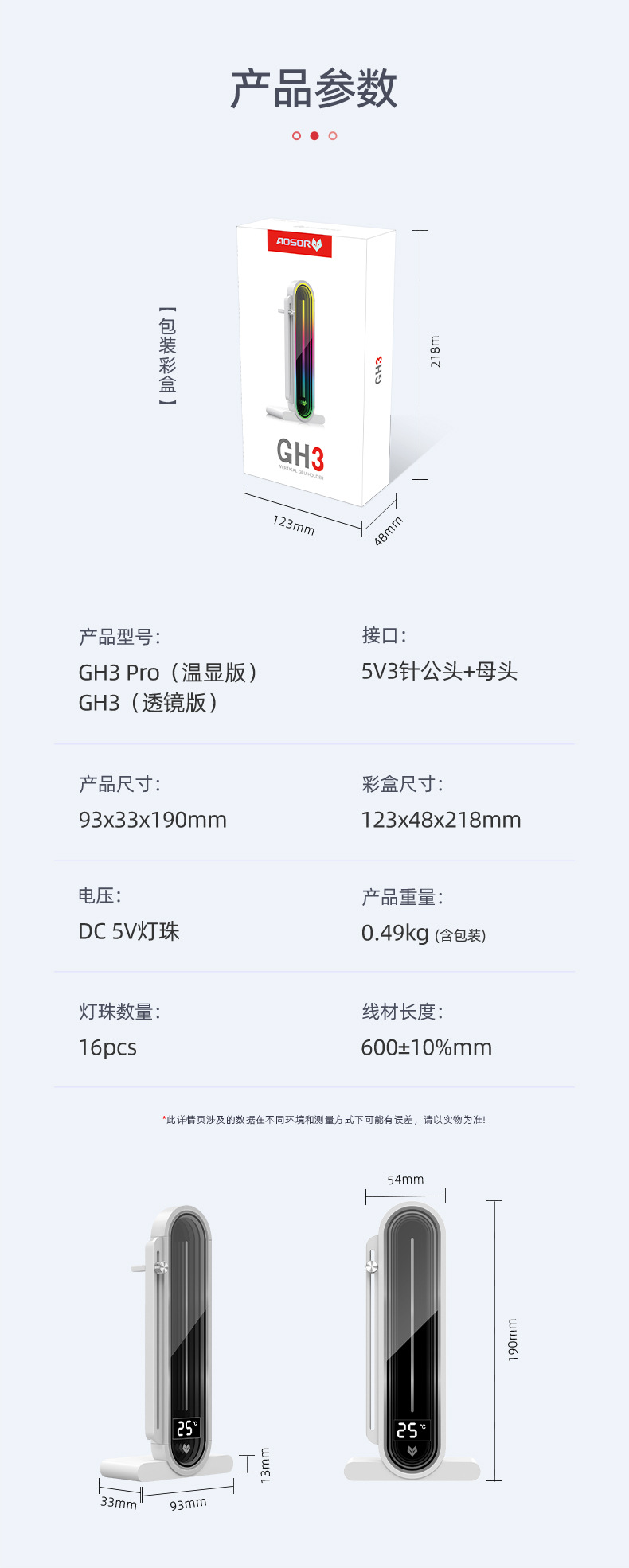 • 디지털 디스플레이 GH3 Pro 브래킷 화이트 [ARGB/온도 디스플레이/대형 스크린 렌즈]