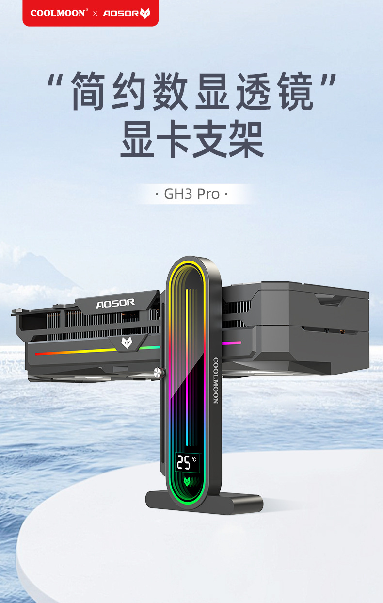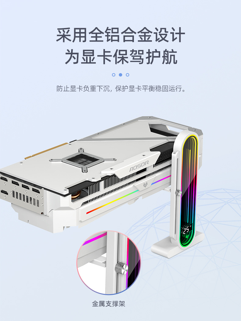 Kuyue 컴퓨터 ARGB 수직 지원 프레임 대형 스크린 렌즈 온도 디스플레이 그래픽 카드 파트너 디지털 디스플레이 그래픽 카드 브래킷스토어 가기