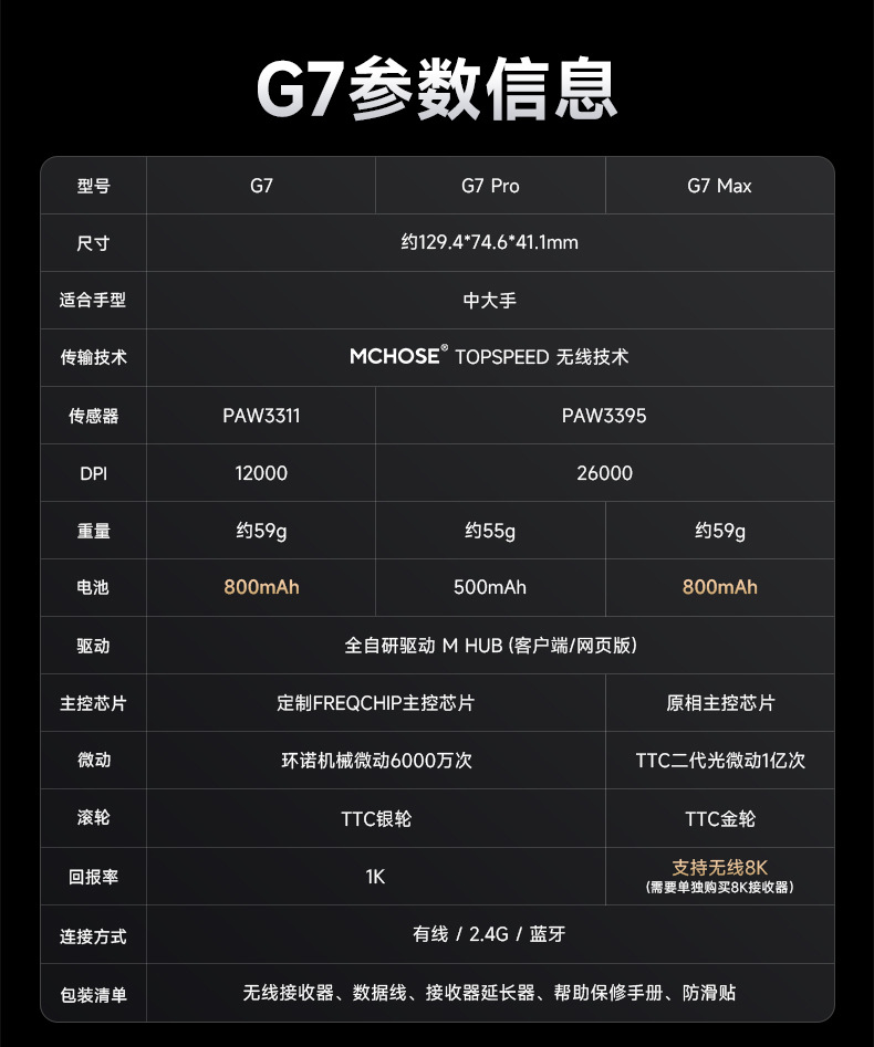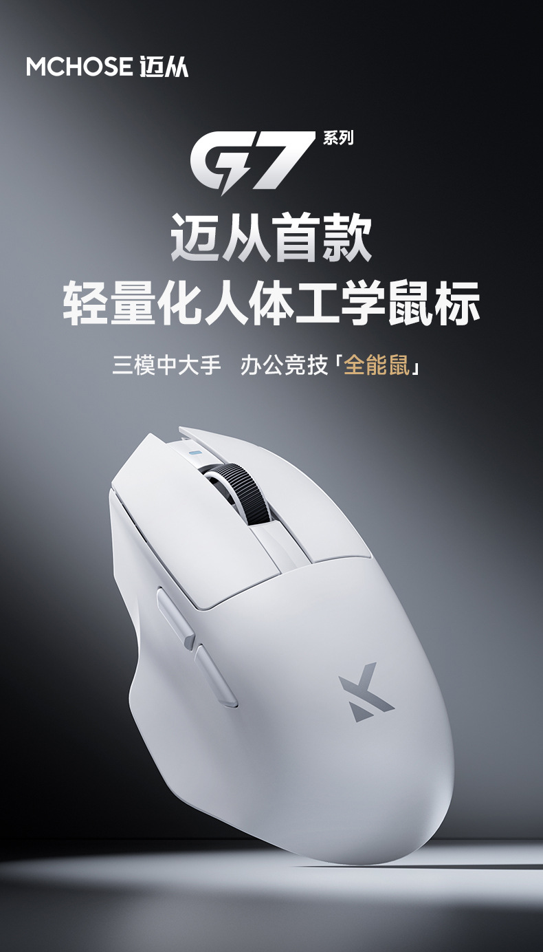 MCHOSE G7 무선 마우스 인체 공학적 디자인 전자 게임 사무실 3 모드 경량 마우스에서 마이스토어 가기