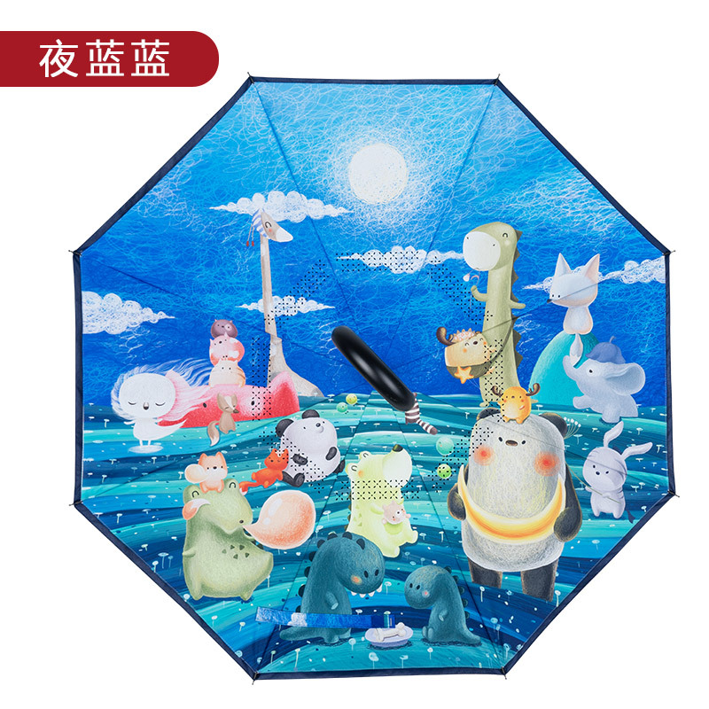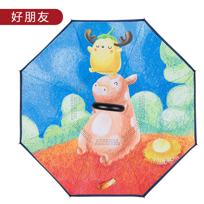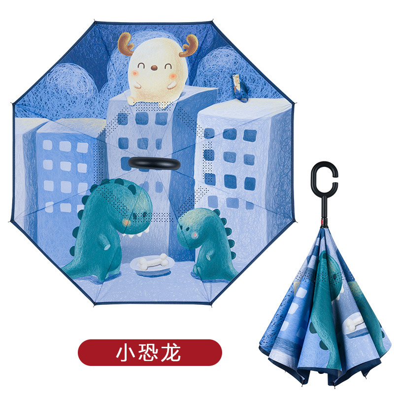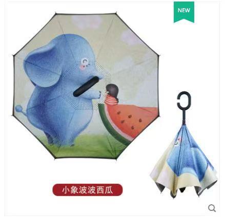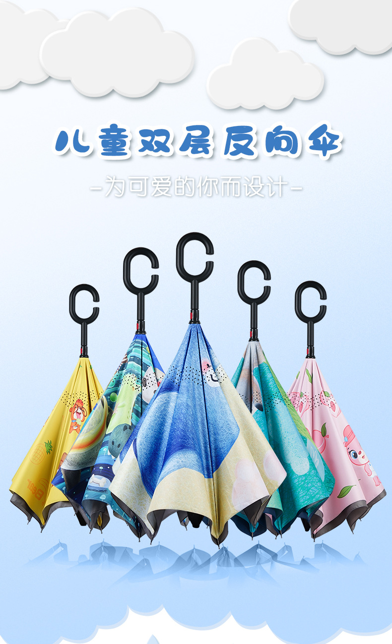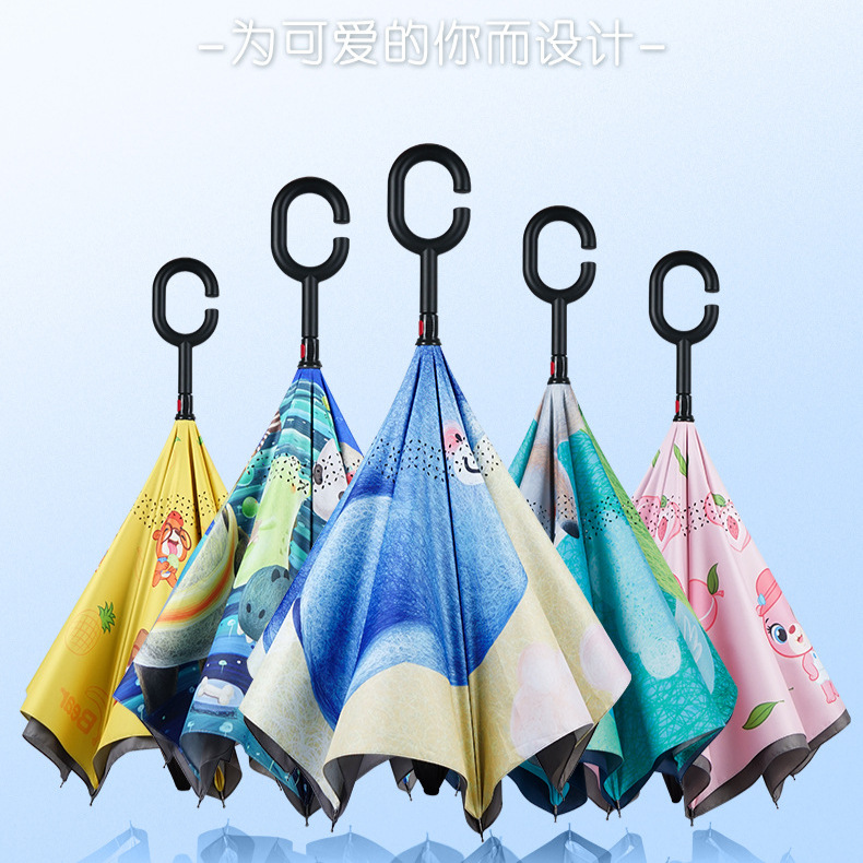 새로운 역방향 재고 도매 자동차 긴 손잡이 우산 어린이 우산 광고 이중층 우산 UV 보호 국경스토어 가기