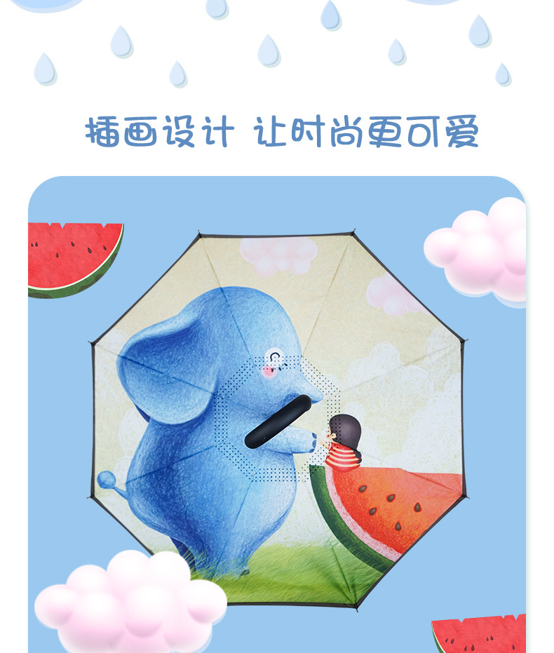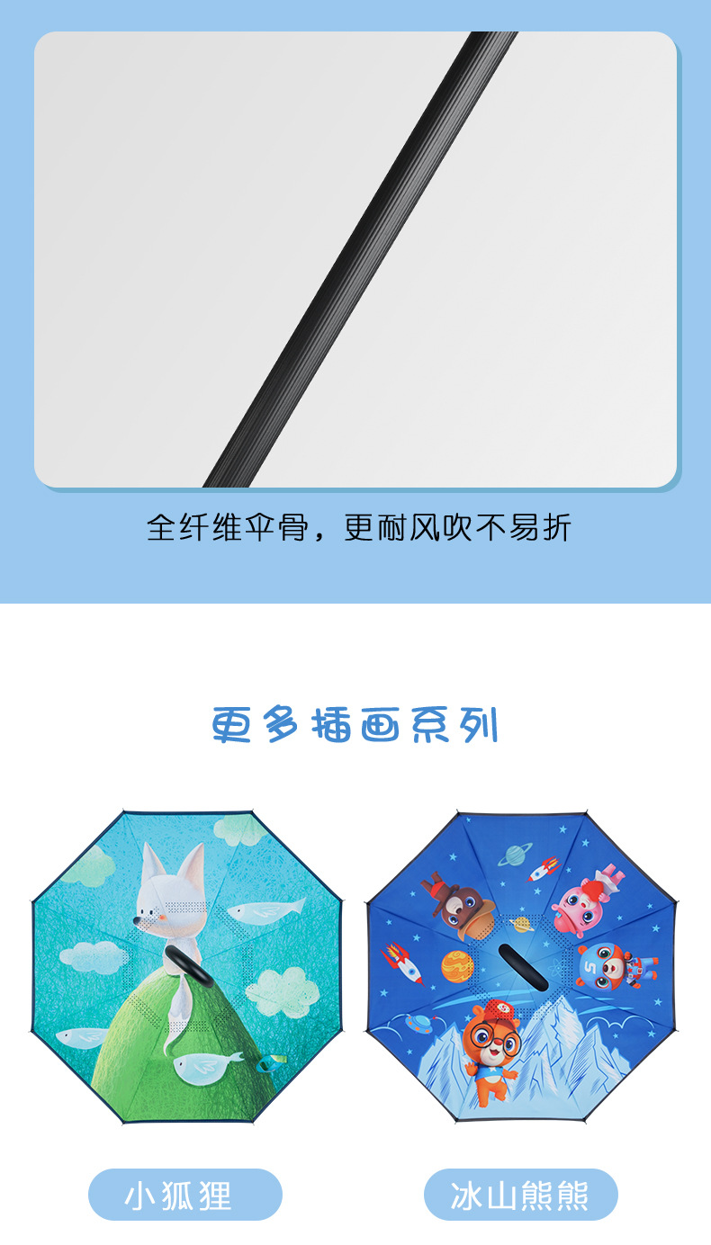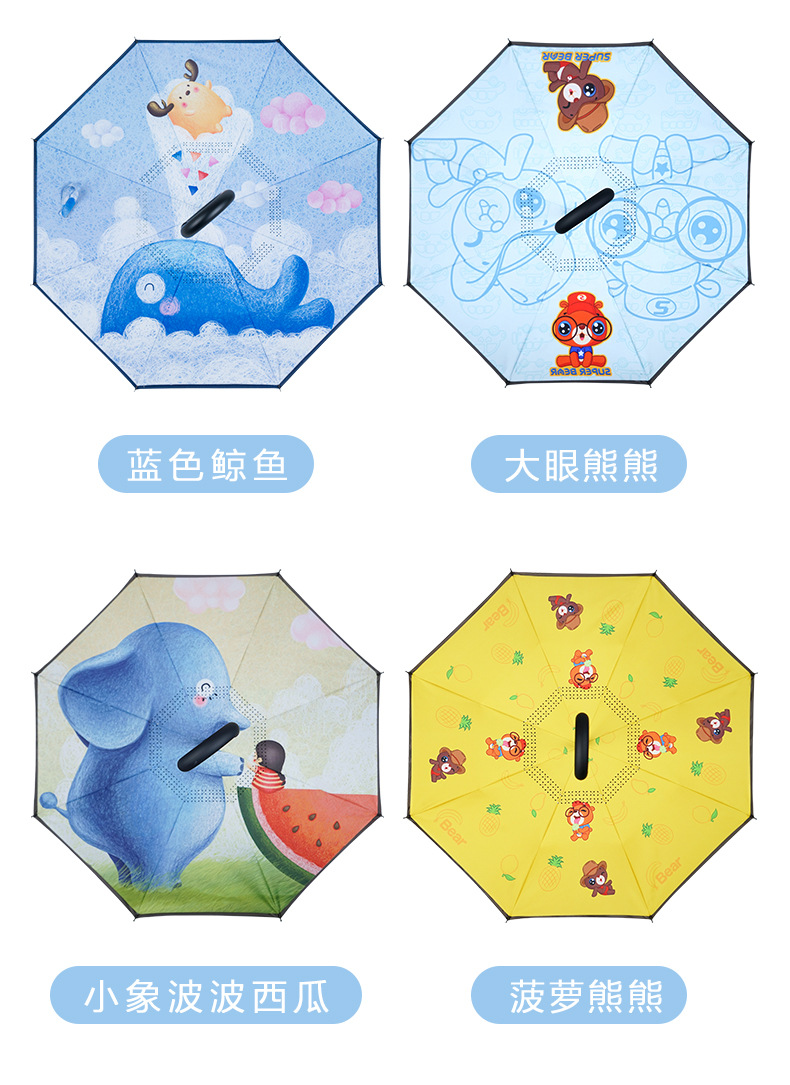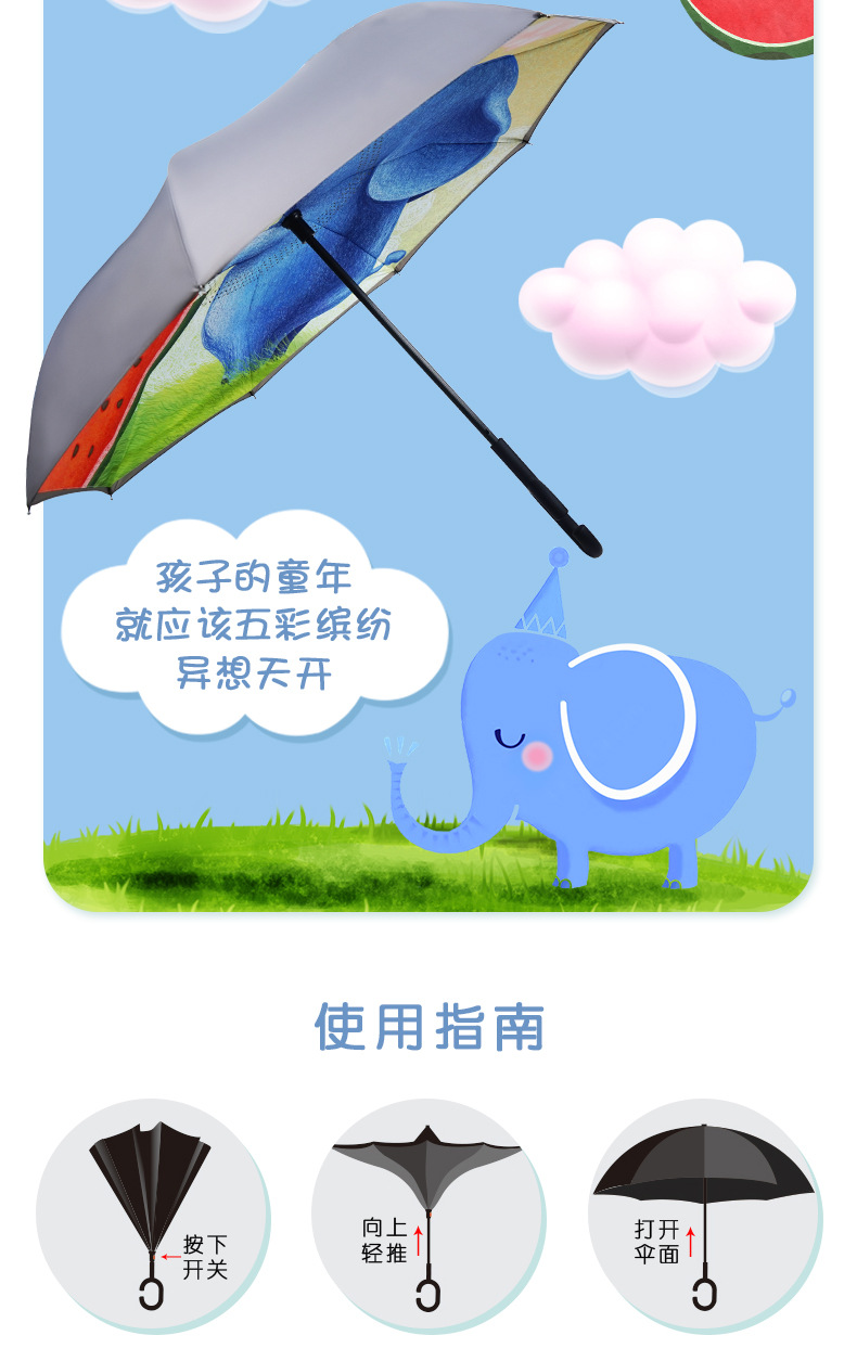새로운 역방향 재고 도매 자동차 긴 손잡이 우산 어린이 우산 광고 이중층 우산 UV 보호 국경스토어 가기
