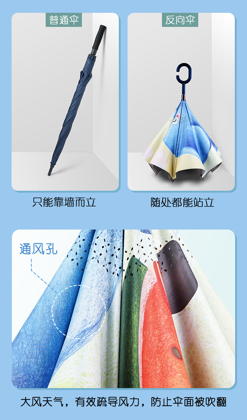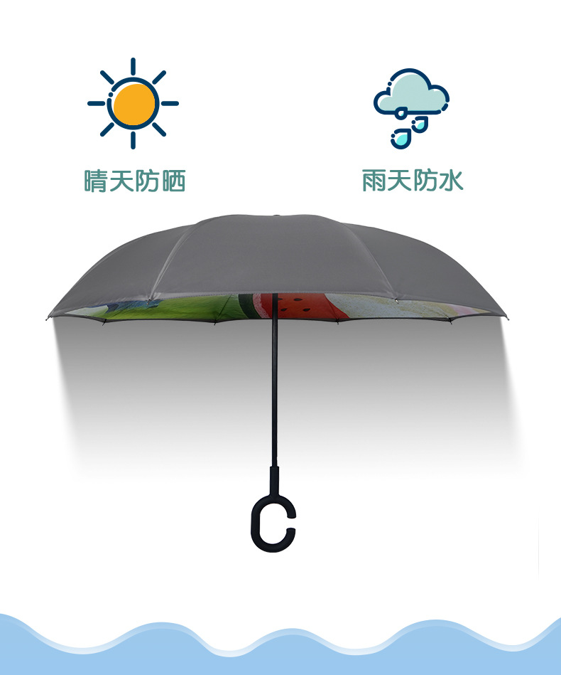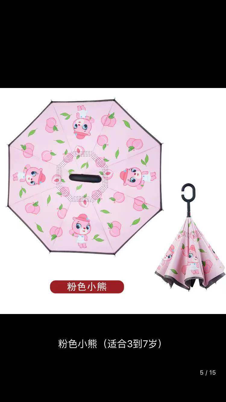 새로운 역방향 재고 도매 자동차 긴 손잡이 우산 어린이 우산 광고 이중층 우산 UV 보호 국경