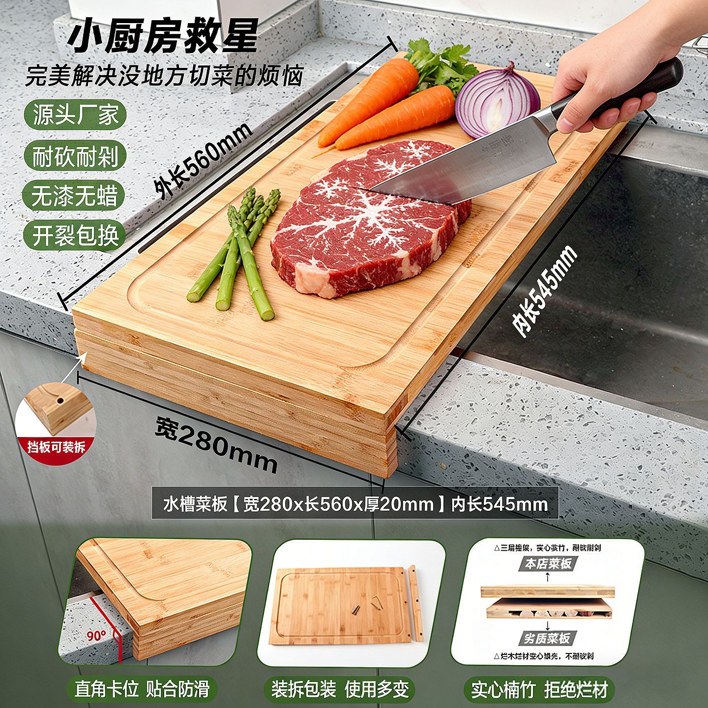 대나무 스토브 뚜껑 도마 싱크대 도마 가정용 주방 식기 세척기 싱크대 도마 슬롯 패널