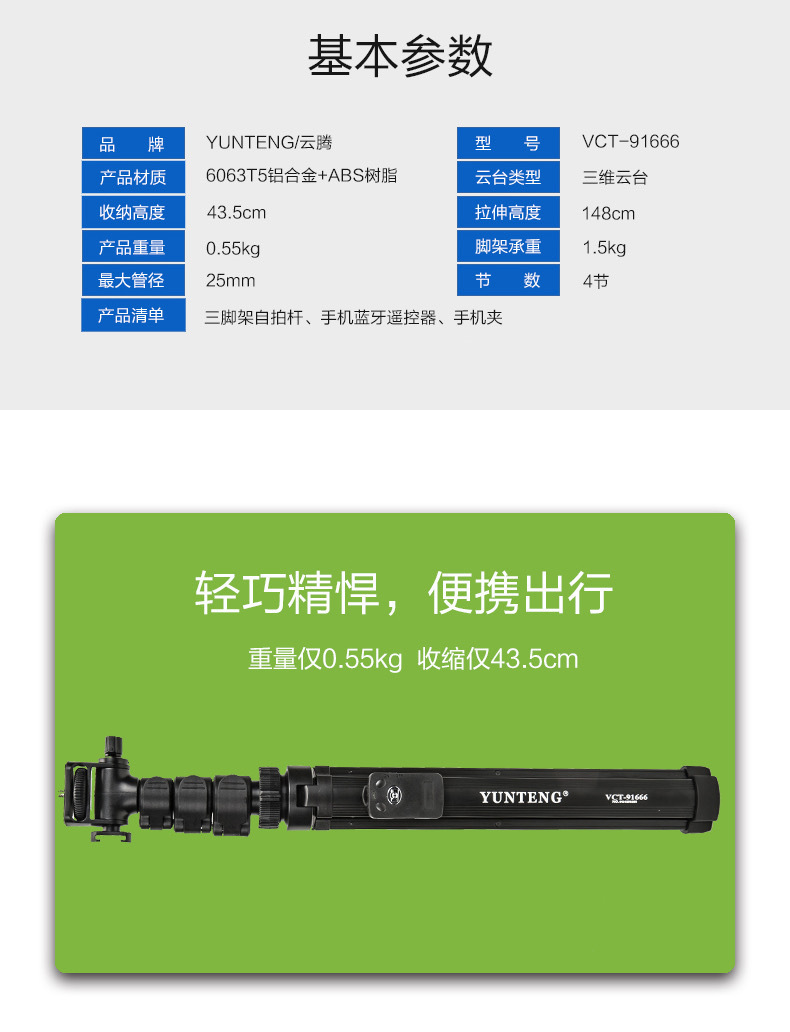 Yunteng 91666 마이크로 단일 카메라 삼각대 휴대용 뜨겁고 차가운 부츠 셀카 스틱 사진 라이브 VLOG 비디오 지원스토어 가기