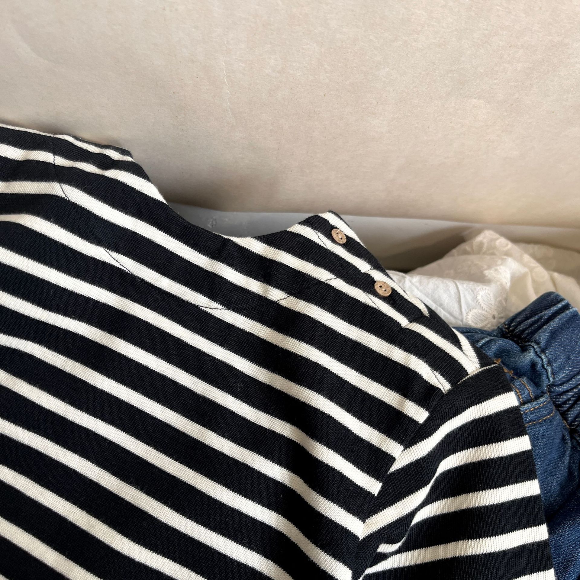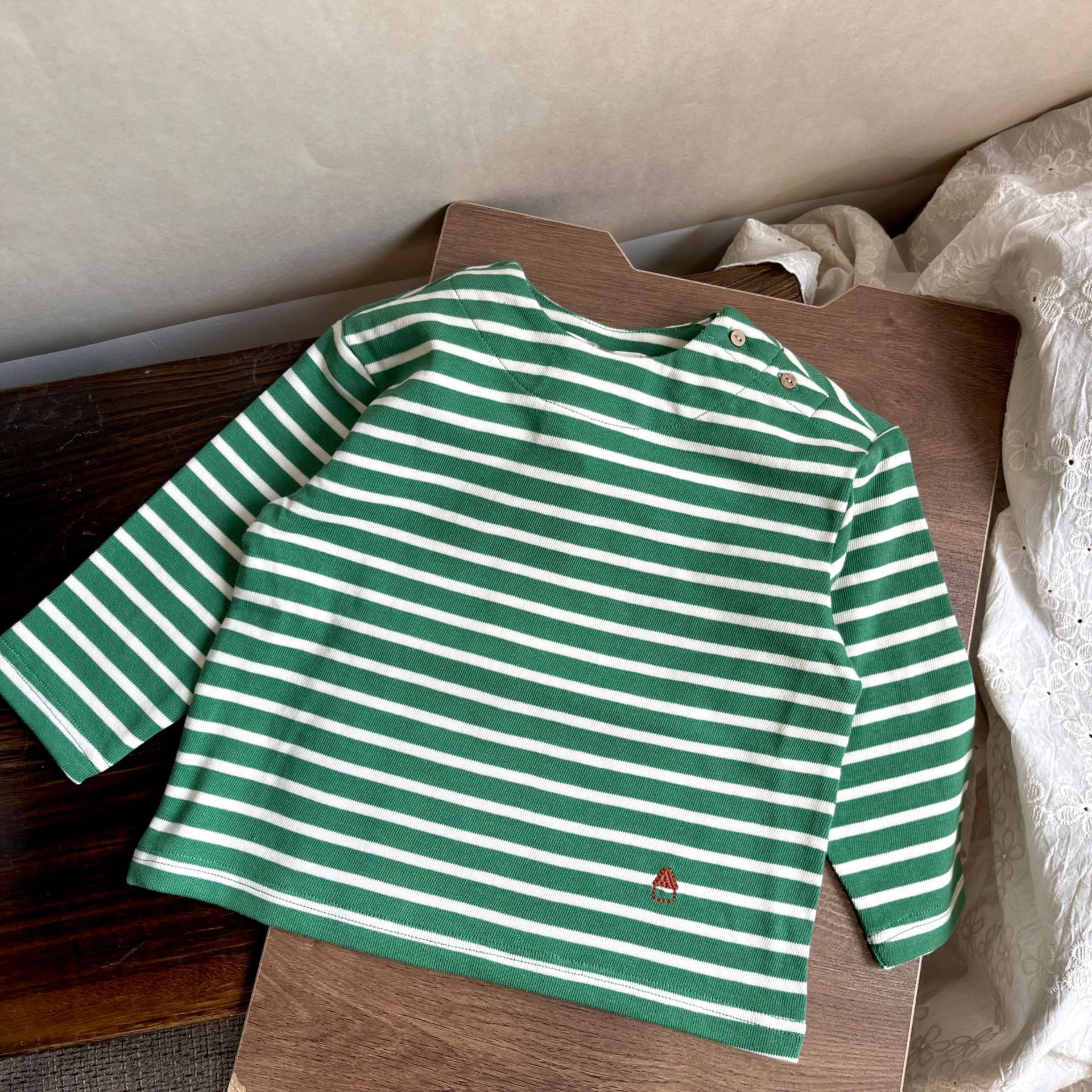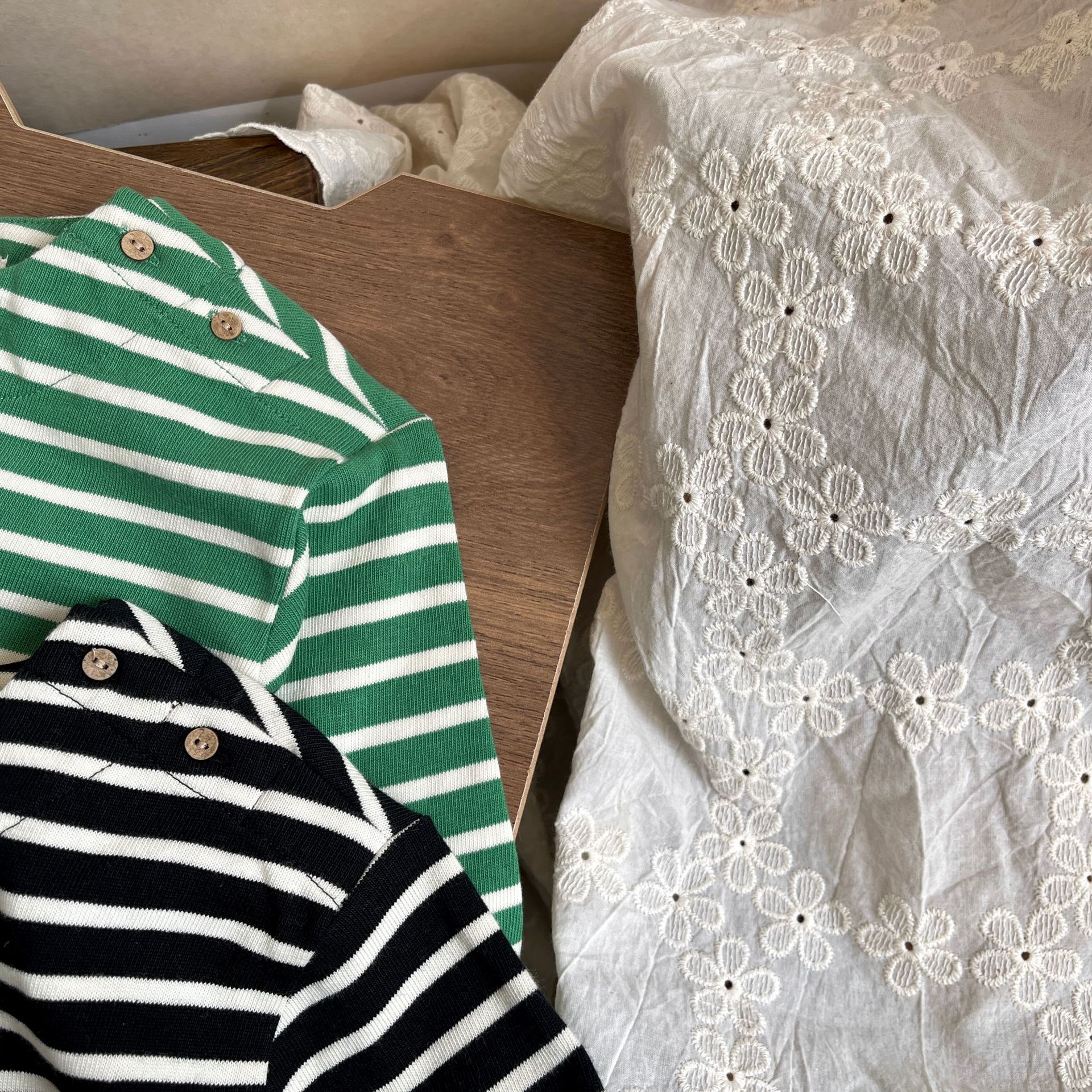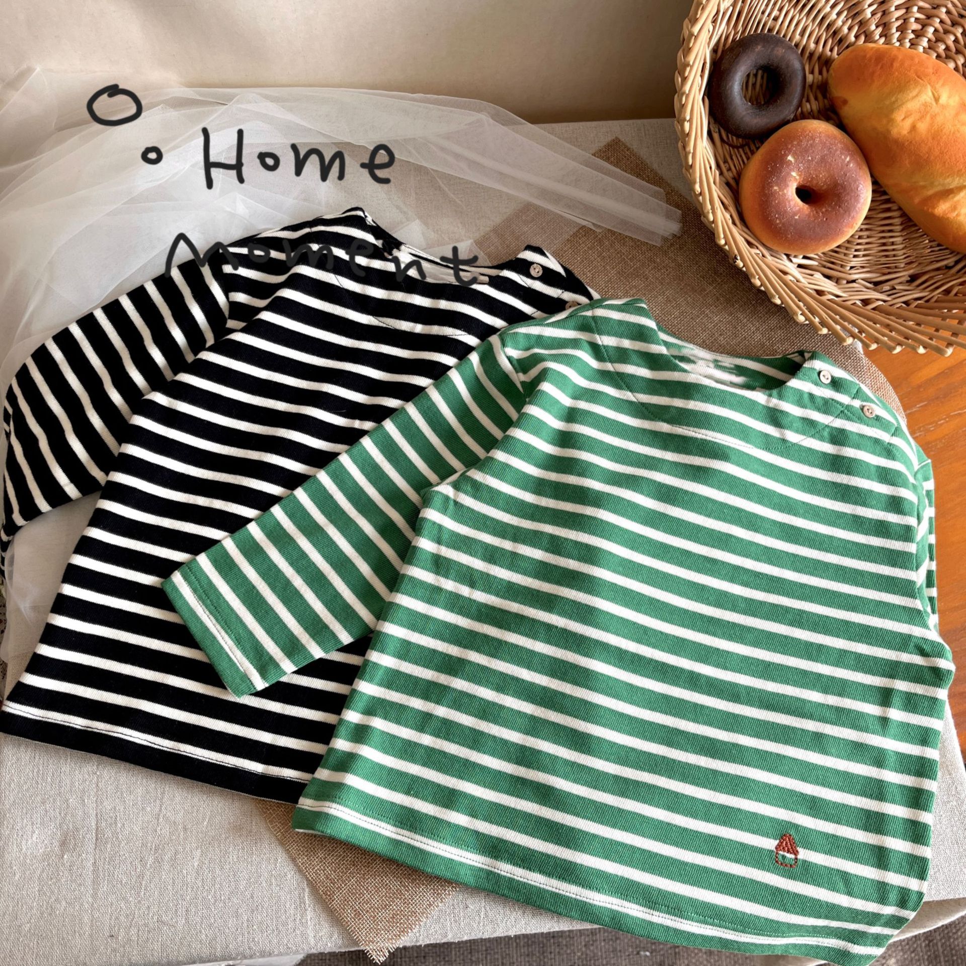 재고 있음 ~ 2025 가을 새로운 한국 스타일 어린이 유치원 클래식 다목적 서양식 자수 스트라이프 긴팔 티셔츠