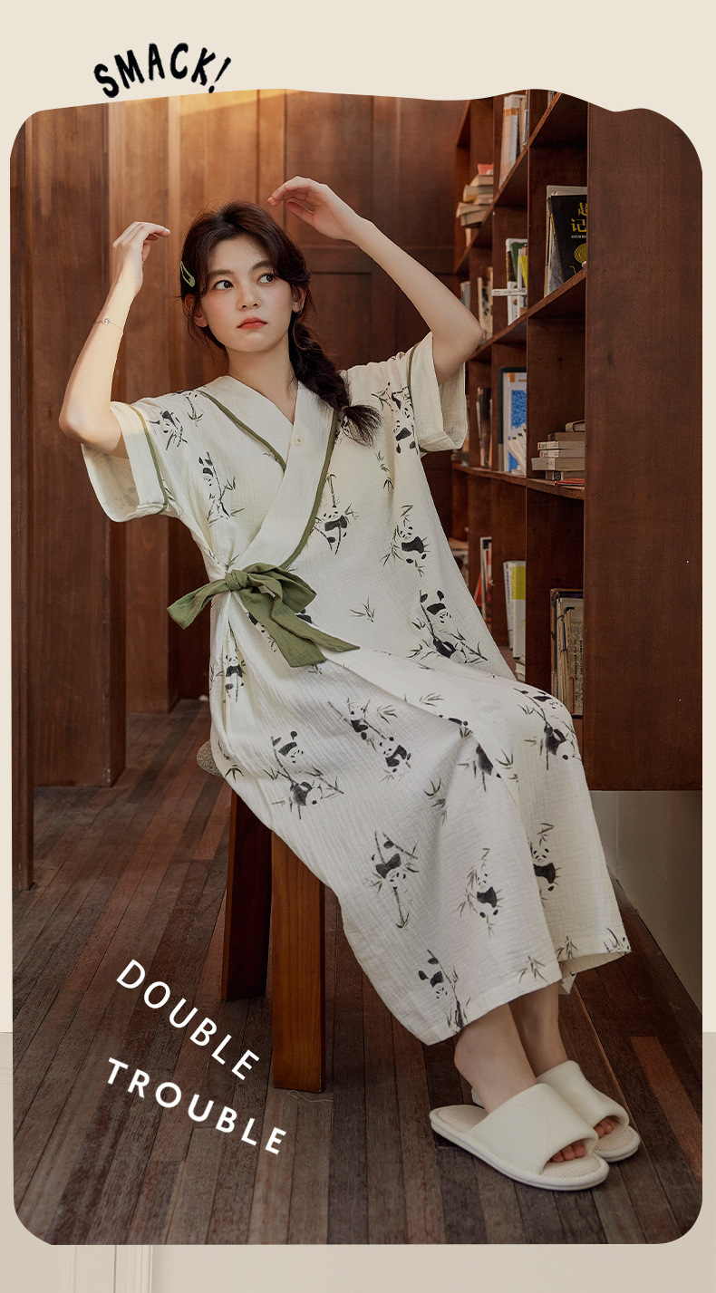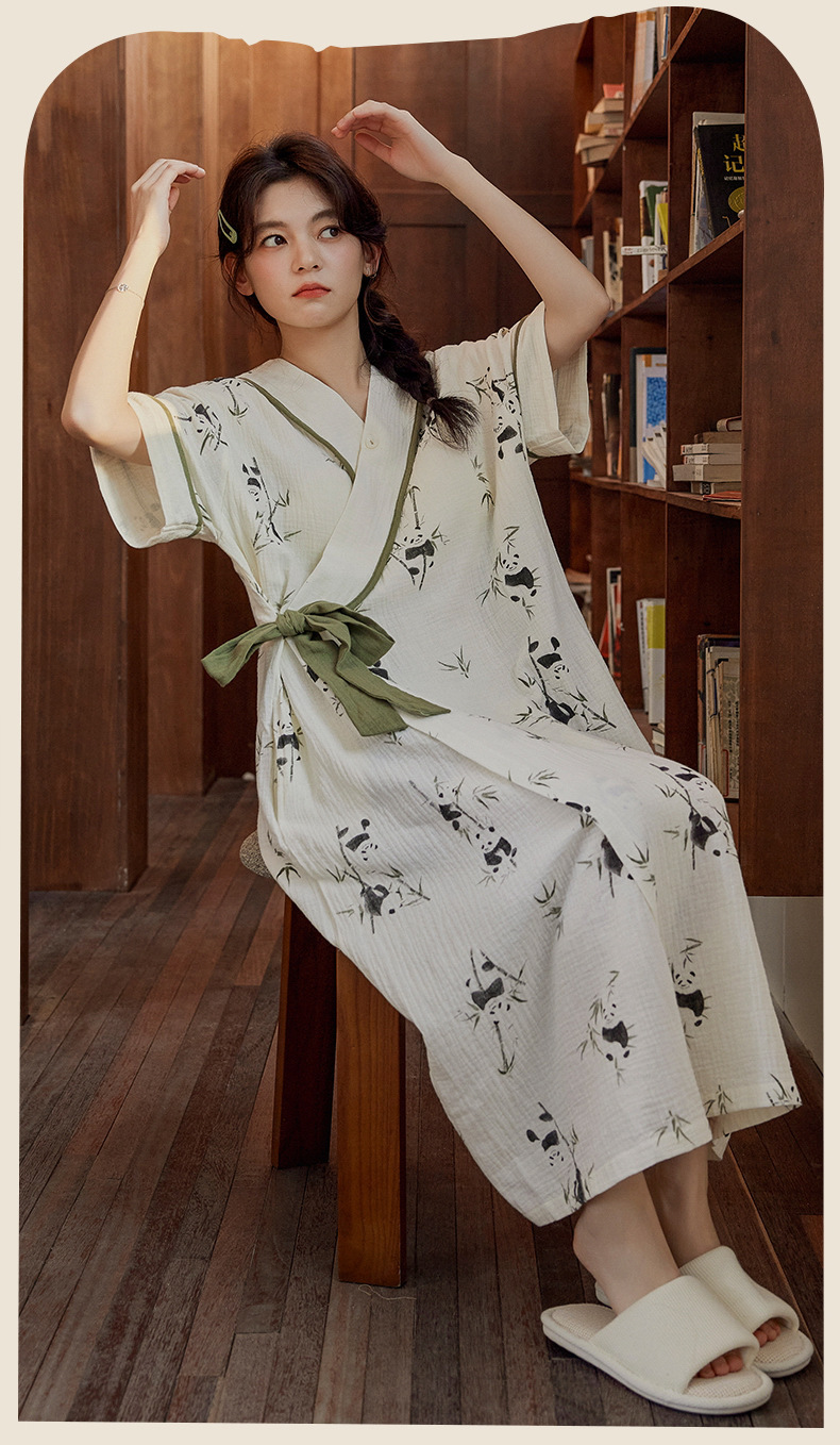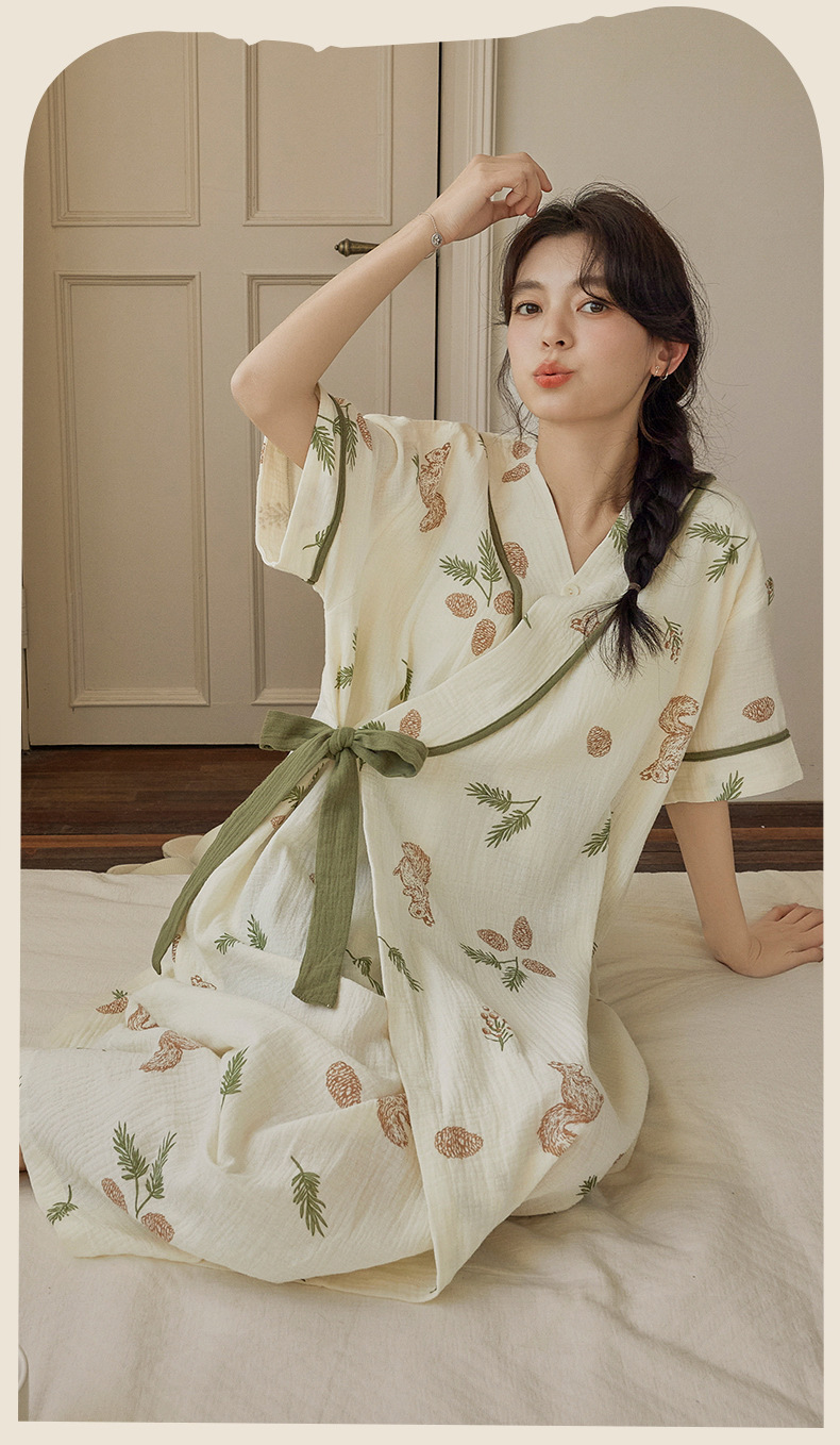 가슴 패드와 짧은 소매 잠옷 여름 잠옷 호텔 여성 여름 성인 면화 목욕 가운 기모노 파자마 홈 의류스토어 가기