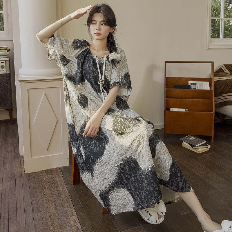 가슴 패드와 짧은 소매 잠옷 여름 잠옷 호텔 여성 여름 성인 면화 목욕 가운 기모노 파자마 홈 의류
