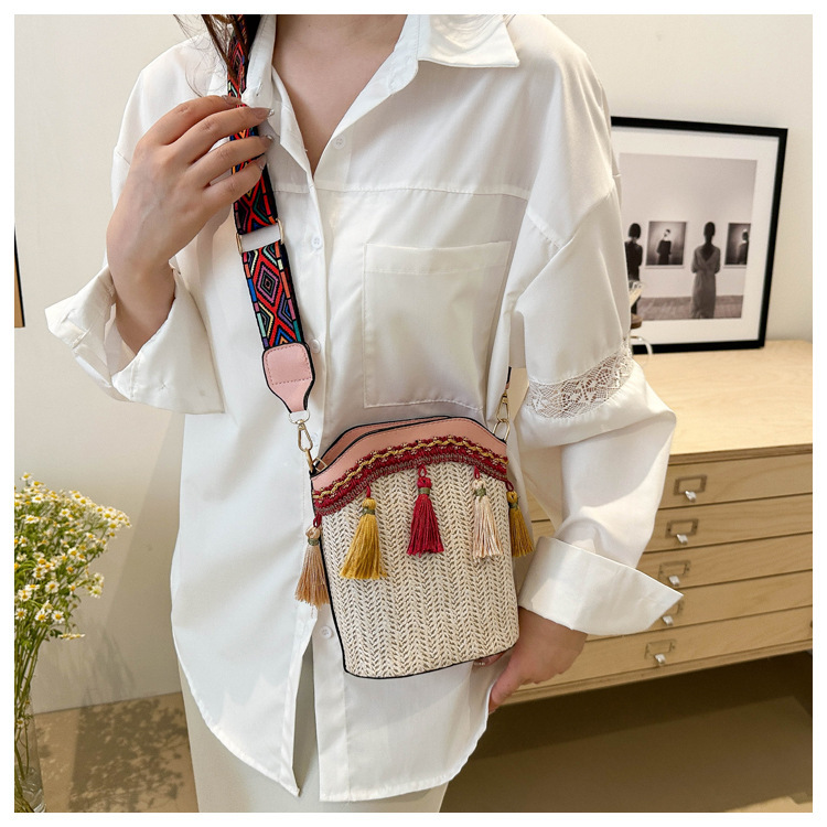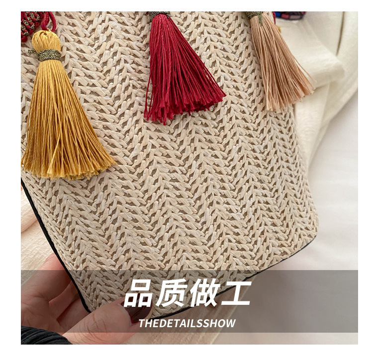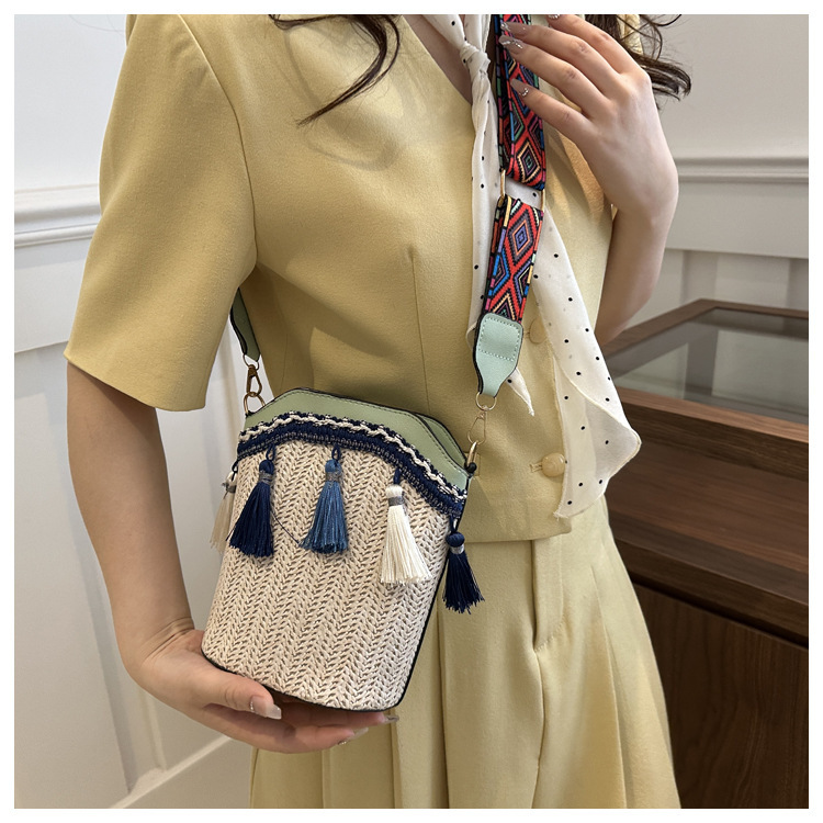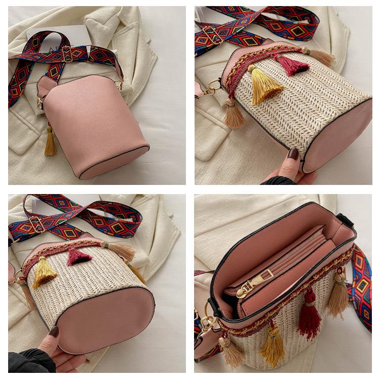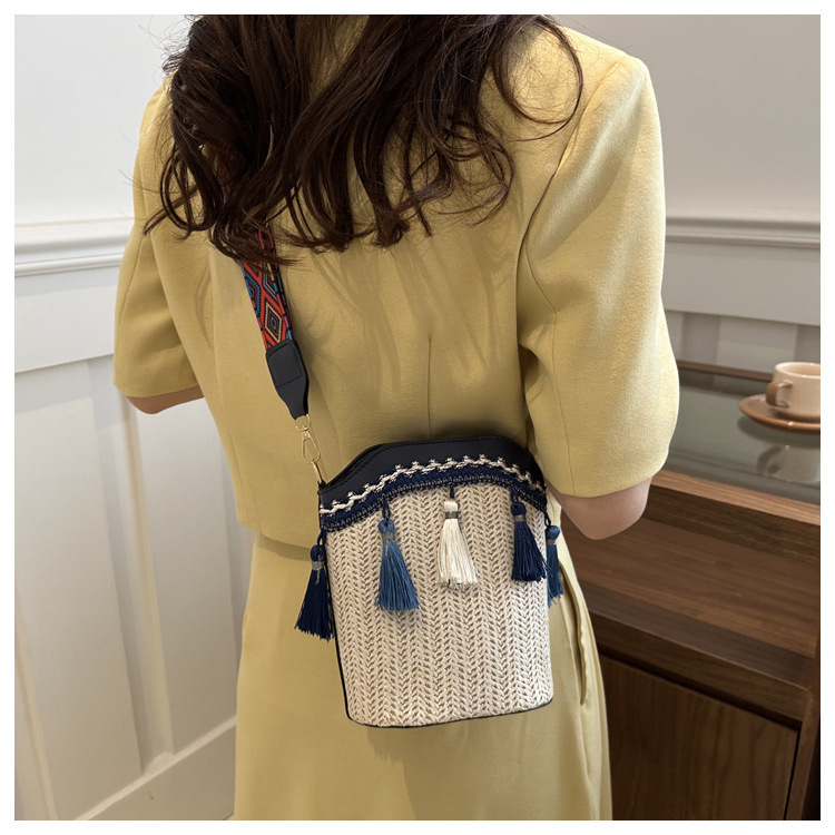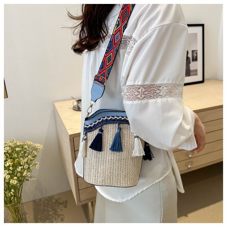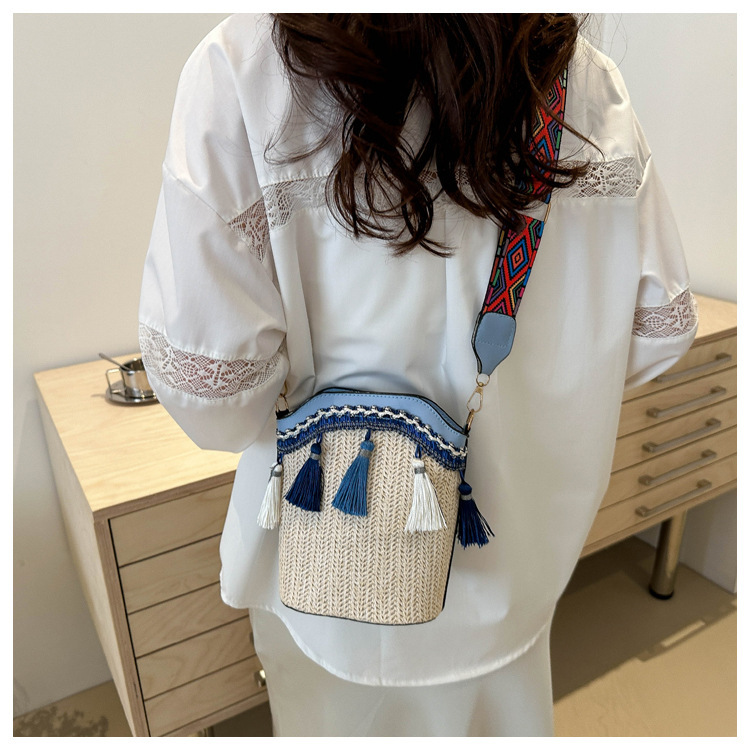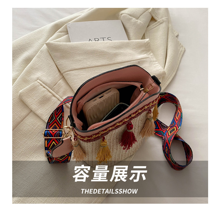2025 인기있는 새로운 패션 민족 스타일 높은 문자 짠 크로스 백 어깨 가방 버킷 가방 술 여성용 가방