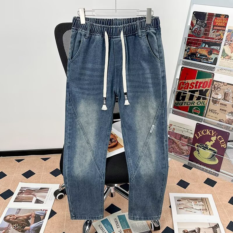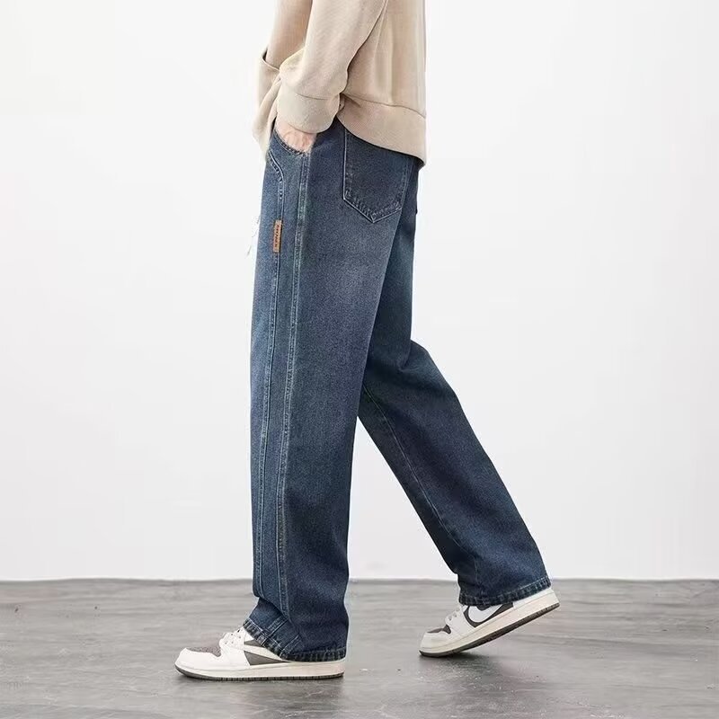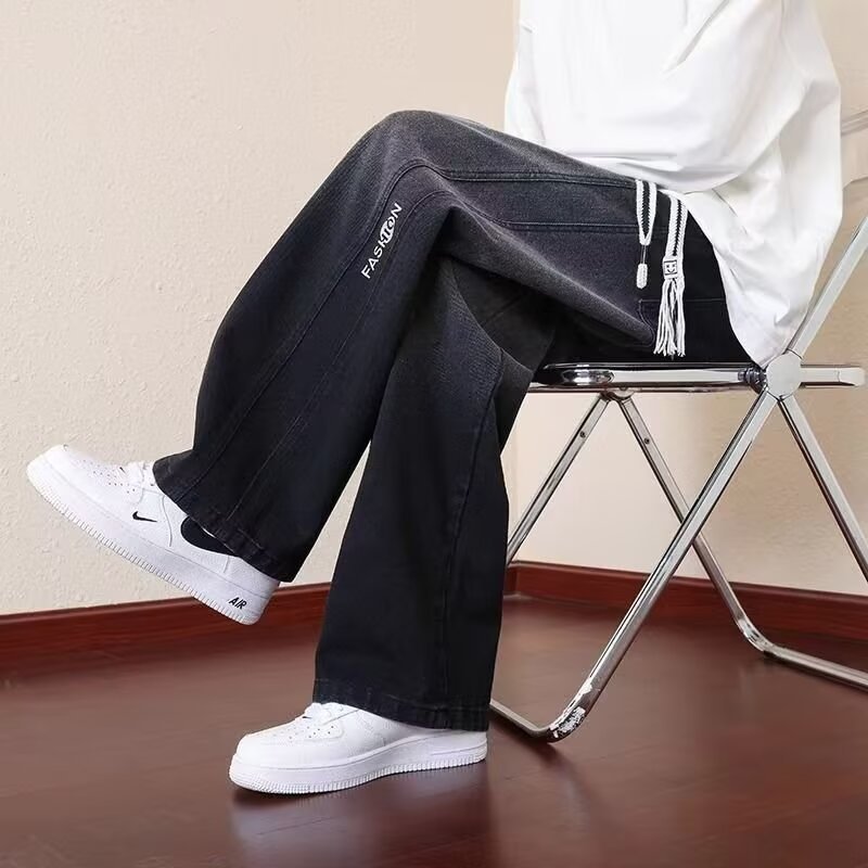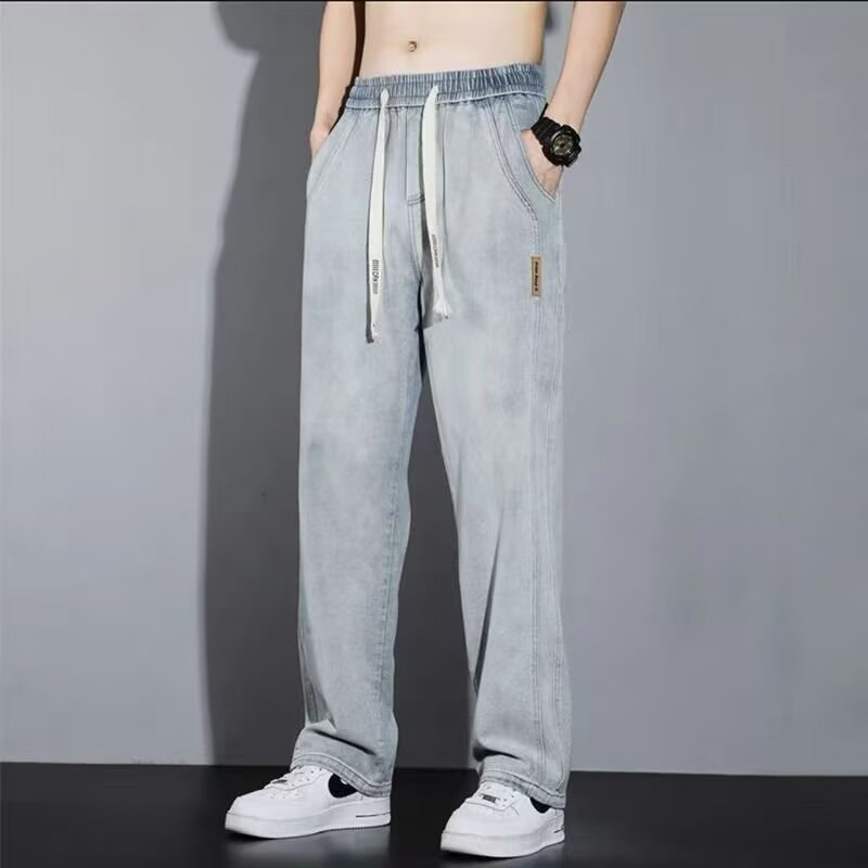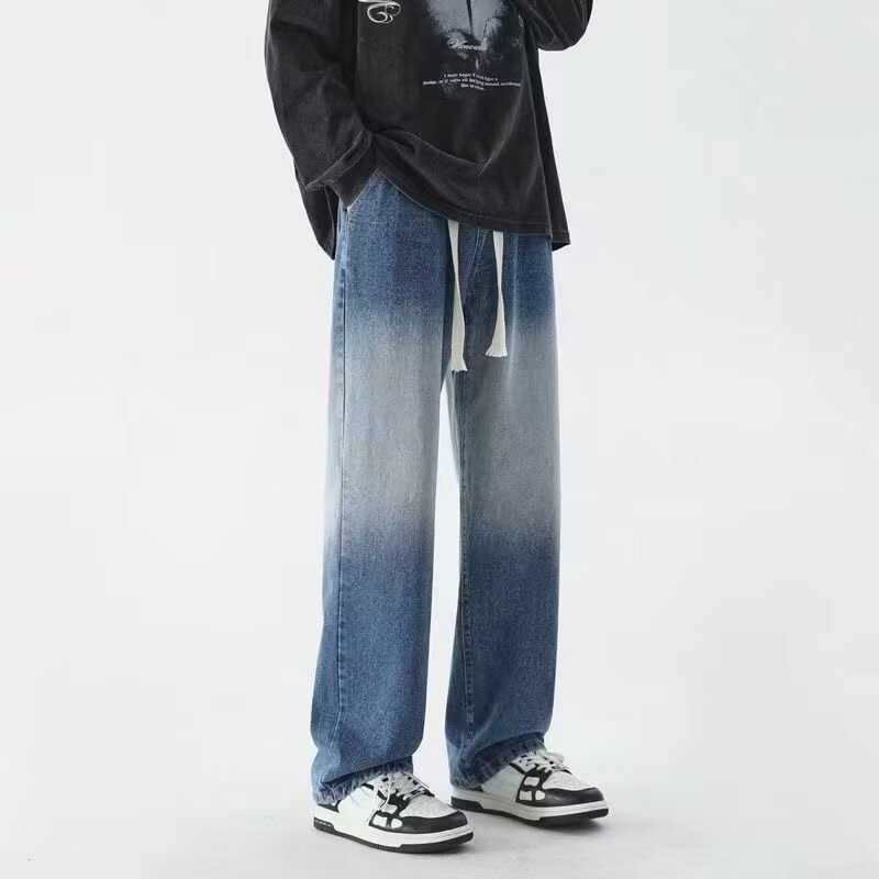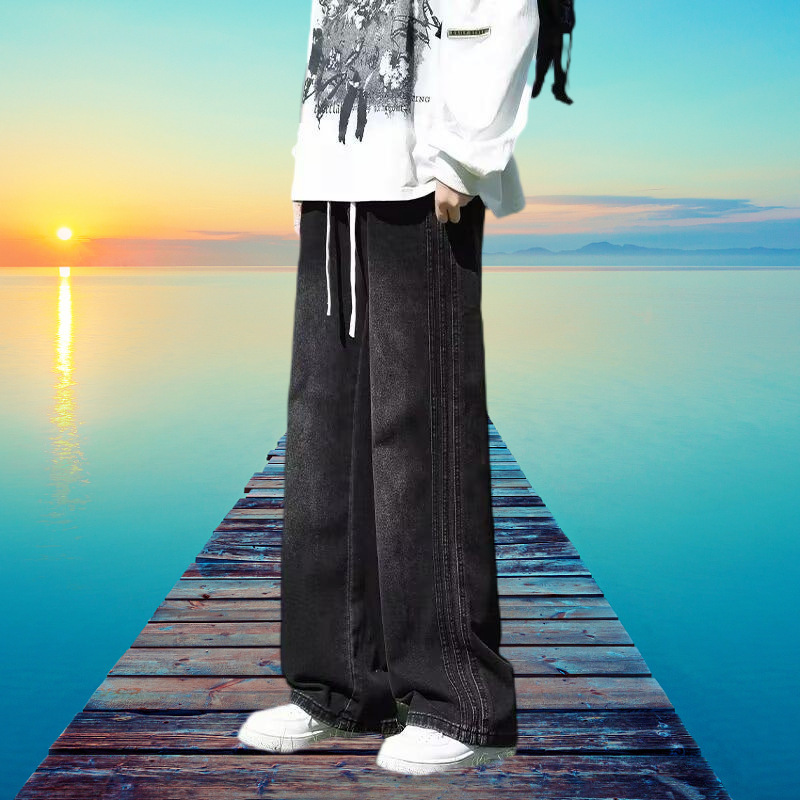 2025 봄과 가을 느슨한 스트레이트 청바지 남성용 아메리칸 스타일 레트로 드로스트링 와이드 레그 캐주얼 롱 팬츠 남성용 트렌디 브랜드스토어 가기