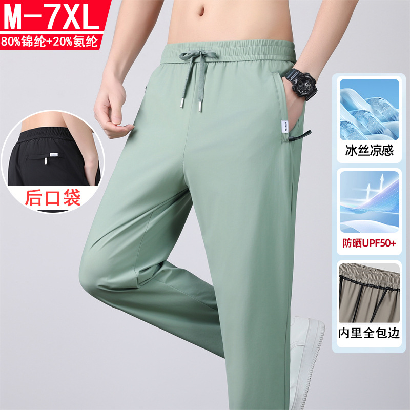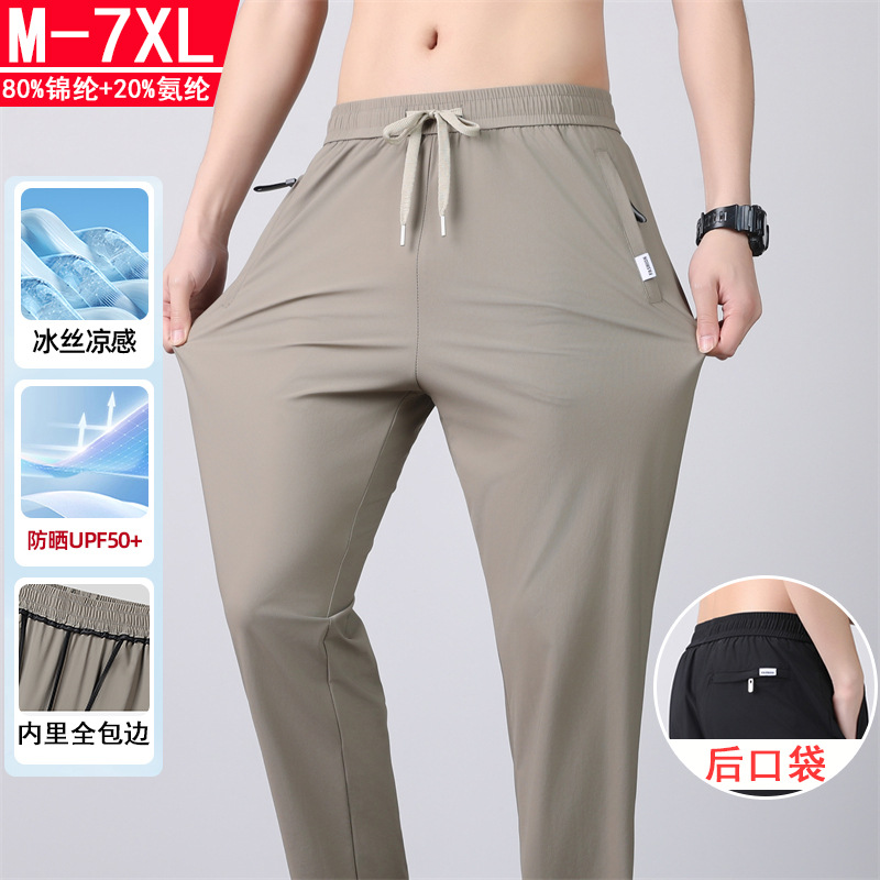 UPF50+ 남성용 스트레이트 아이스 실크 팬츠 2026 여름 속건 팬츠 신축성 아이스 실크 롱 팬츠 루즈핏 대형 스포츠 팬츠