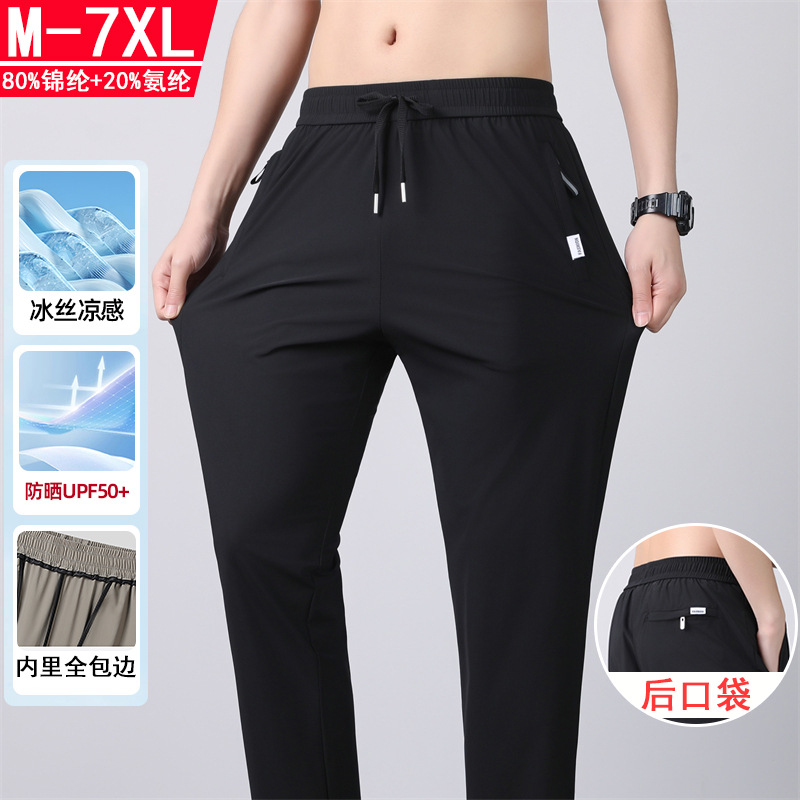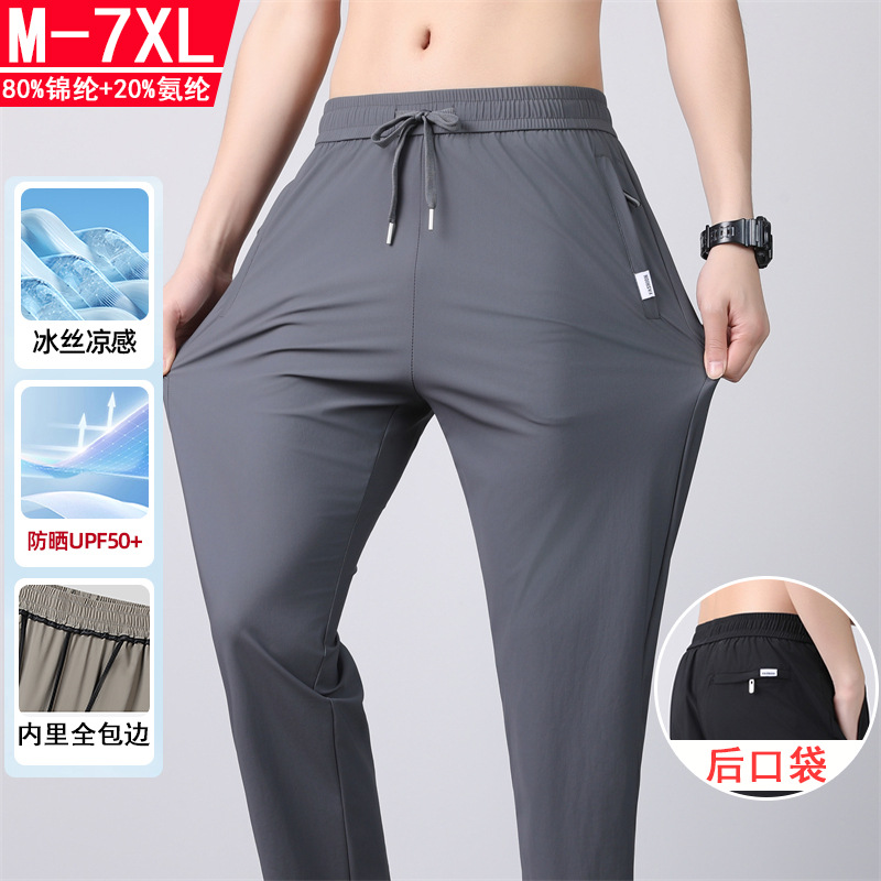 UPF50+ 남성용 스트레이트 아이스 실크 팬츠 2026 여름 속건 팬츠 신축성 아이스 실크 롱 팬츠 루즈핏 대형 스포츠 팬츠스토어 가기