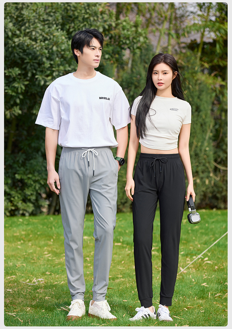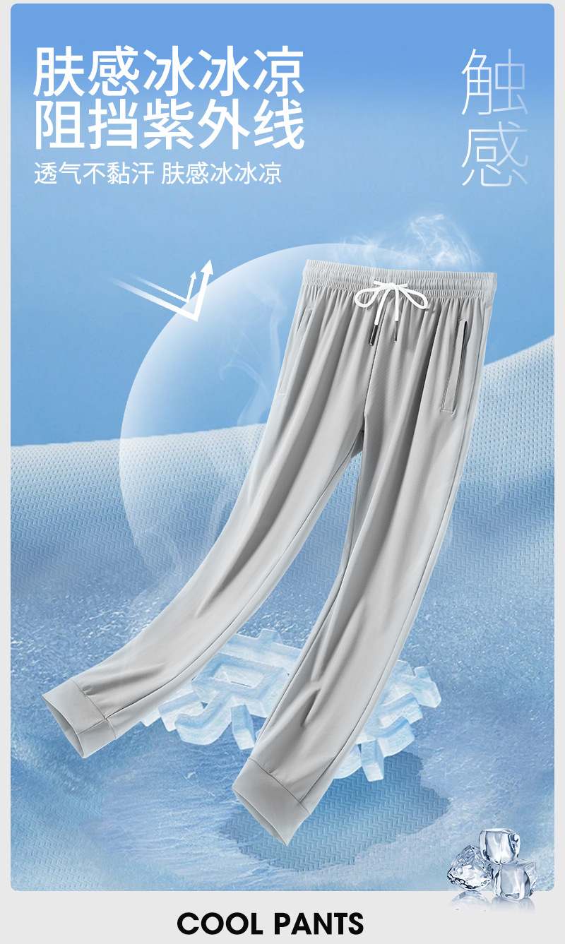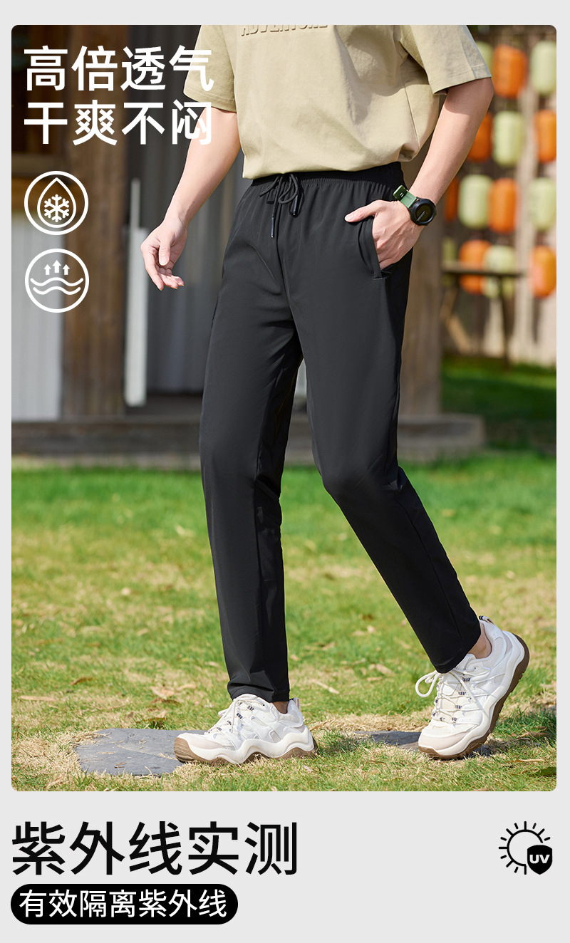 아이스 실크 바지 남자 여름 빠른 건조 얇은 커플 스트레이트 통기성 스트레치 앤타 패브릭 스포츠 캐주얼 바지
