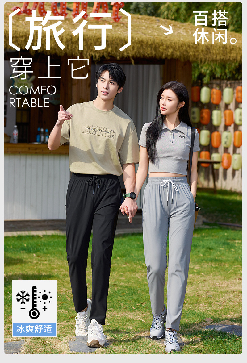 아이스 실크 바지 남자 여름 빠른 건조 얇은 커플 스트레이트 통기성 스트레치 앤타 패브릭 스포츠 캐주얼 바지스토어 가기