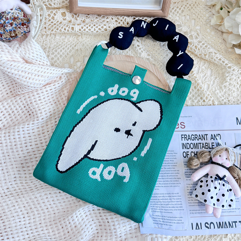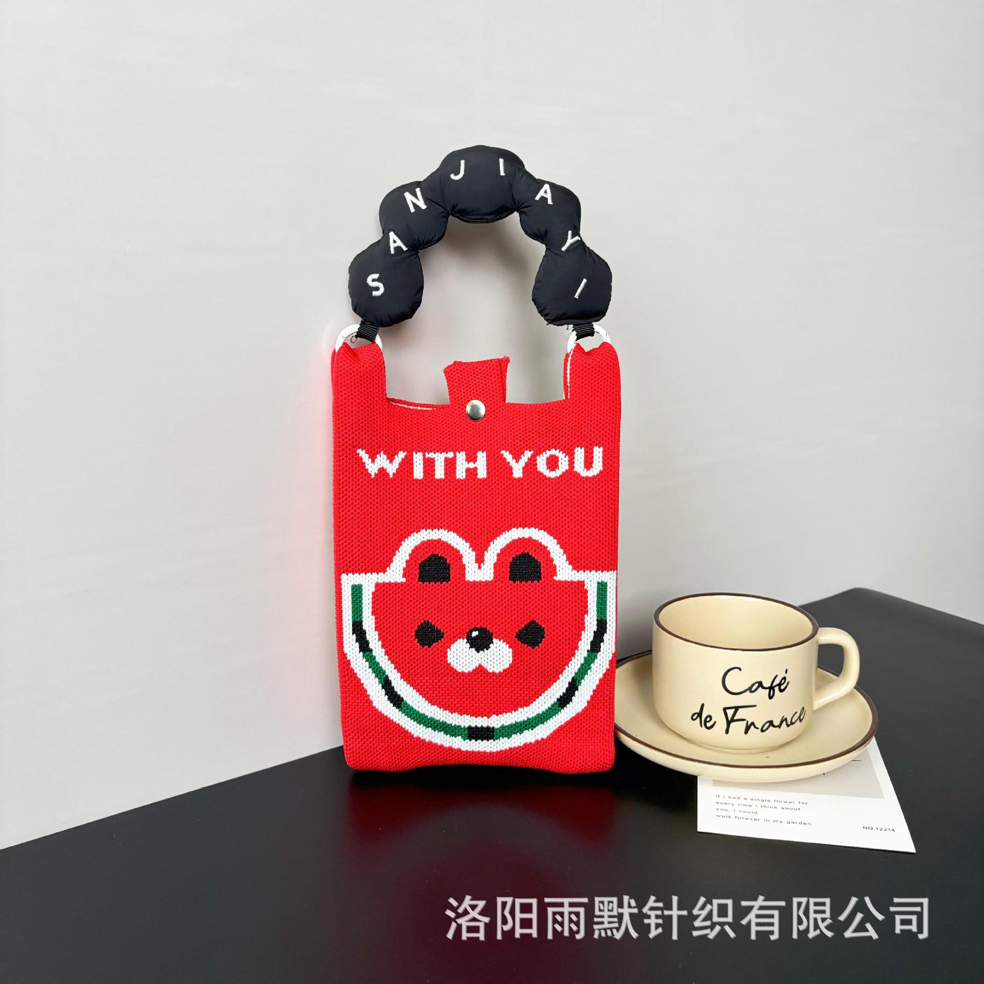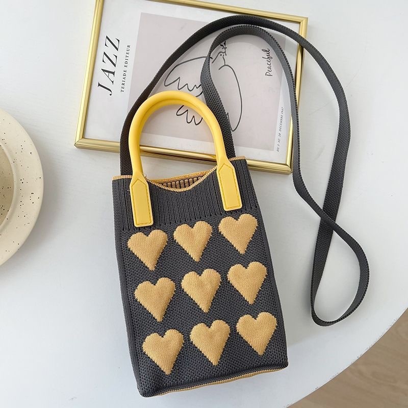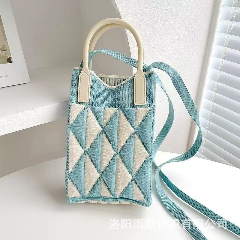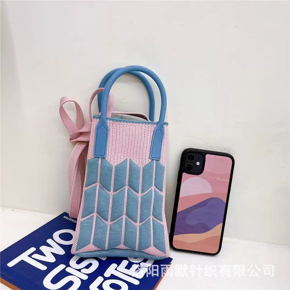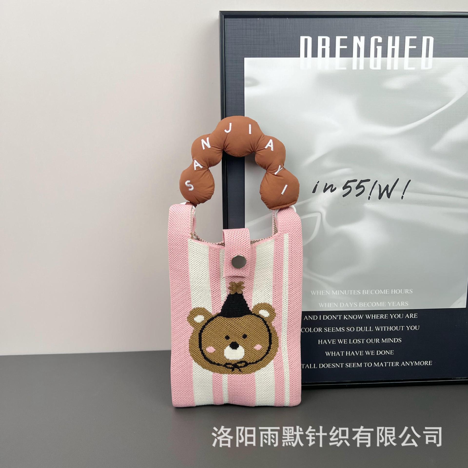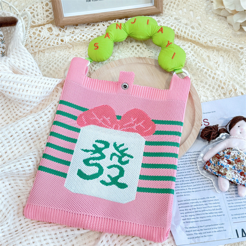 새로운 숙녀 귀여운 미니 가방 올 매치 패션 휴대 전화 가방 만화 니트 핸드백 어깨 가방 크로스 바디 가방